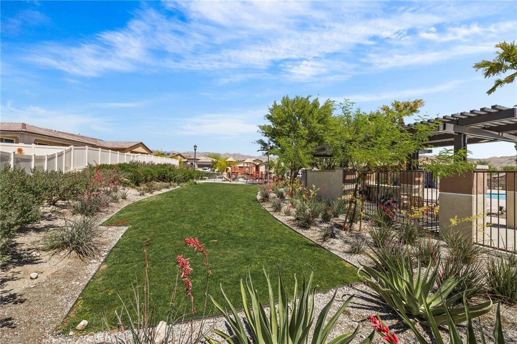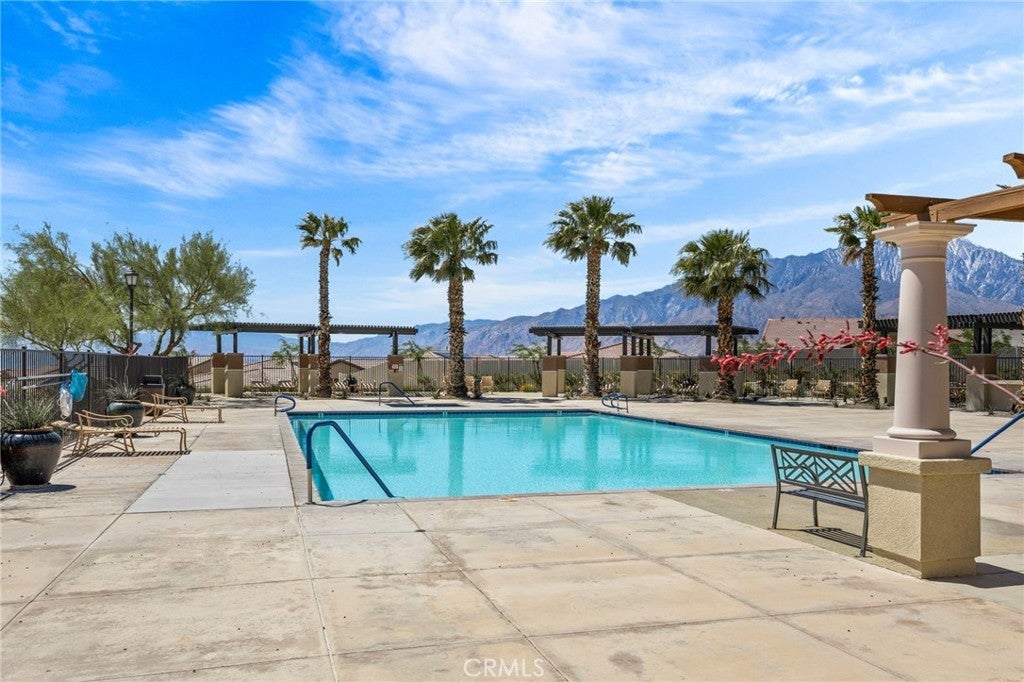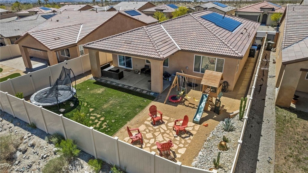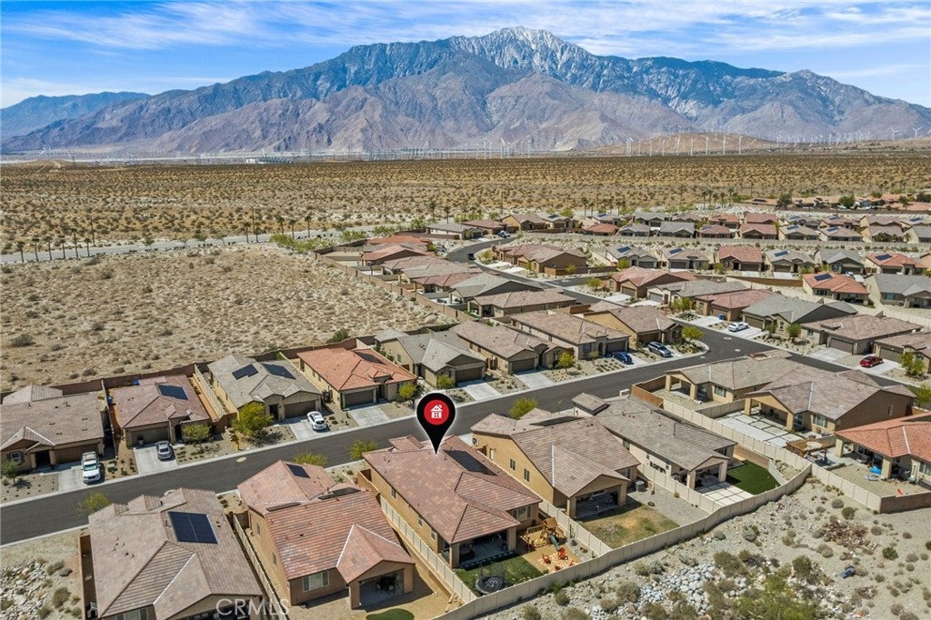 New Single-Story Home in the Skyborne Community – Desert Hot Springs, CA is completely move in ready and on a Cul-de-sac! Welcome to this beautifully designed newly constructed home located in the sought-after Skyborne master-planned community. Featuring a thoughtfully laid-out single-story floor plan, Solar Panels for energy savings, fully landscaped back and front yards, this residence offers the perfect blend of comfort, convenience, and style. Inside, you’ll find three spacious secondary bedrooms located off the entry, ideal for family members, guests, or a home office setup. The heart of the home is an open-concept living area that seamlessly integrates the kitchen, dining, and great room—perfect for both everyday living and entertaining. Sliding doors lead to a private Covered patio, with large backyard, extending your living space outdoors for effortless desert lifestyle enjoyment. The owner’s suite is privately situated in the rear corner of the home, complete with a walk-in closet and an en-suite bathroom for ultimate comfort and privacy. Located in Ara, a new collection of single-family homes, residents will enjoy access to community amenities, including a community park, 2 pools, spas, tennis courts and dog park. low HOA fees, and a prime location just 10 minutes from vibrant Palm Springs. Enjoy nearby shopping, dining, and outdoor recreation—including the iconic mineral springs and easy access to Joshua Tree National Park, just an hour away. This is an excellent opportunity for first-time buyers, families, or anyone looking for a low-maintenance home in a growing community.