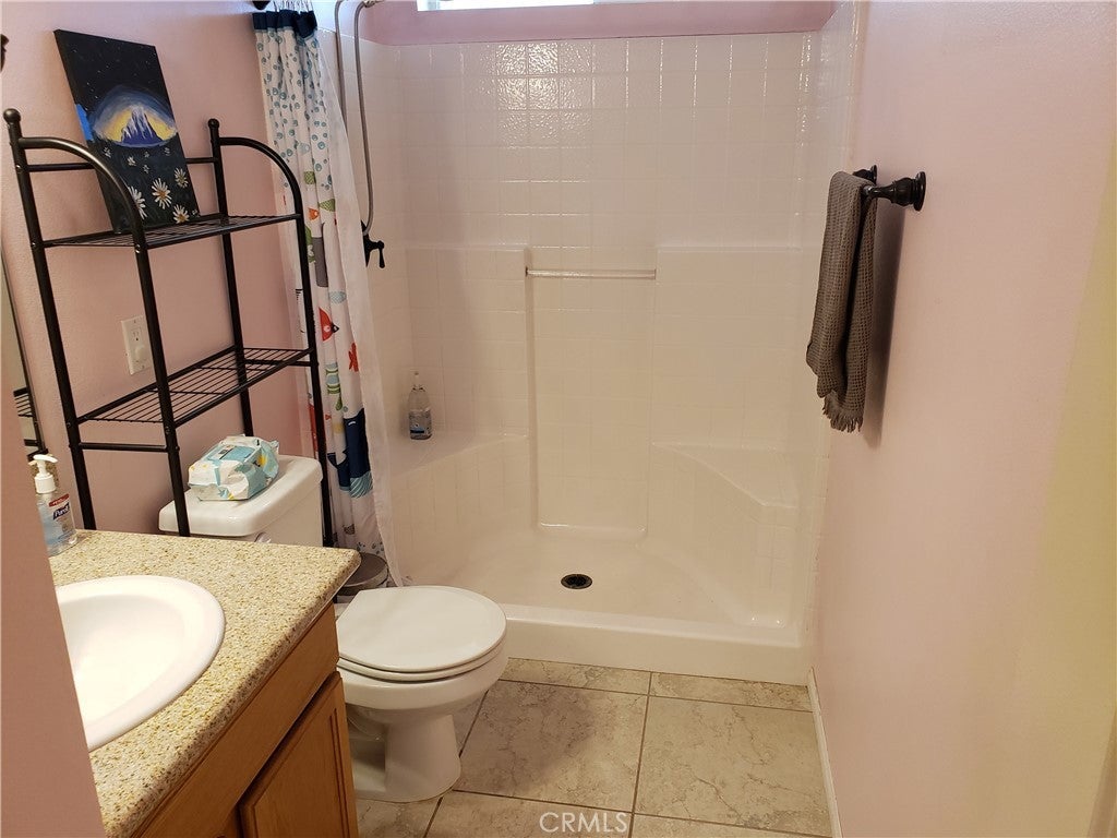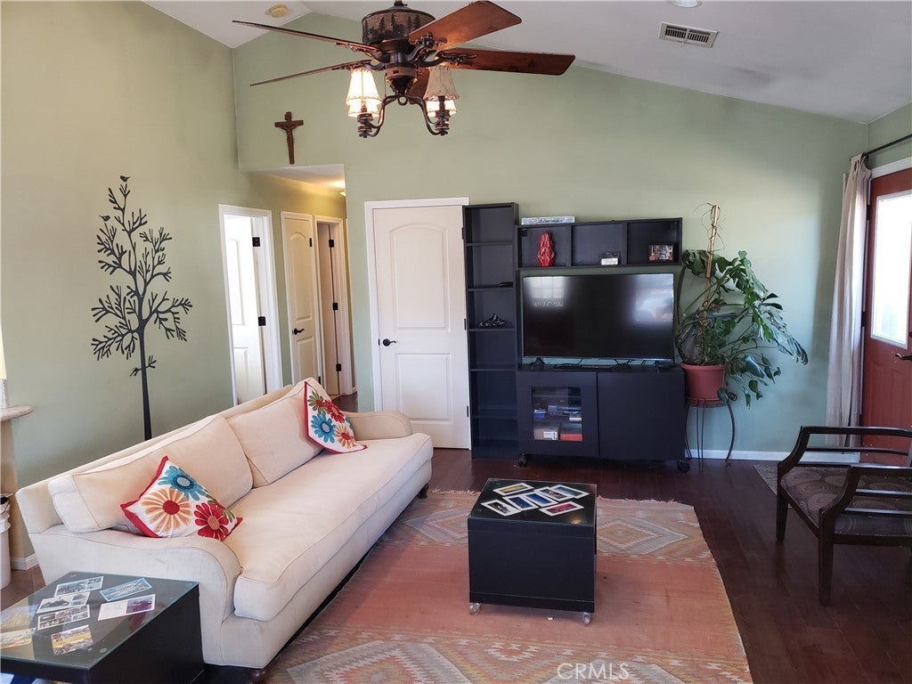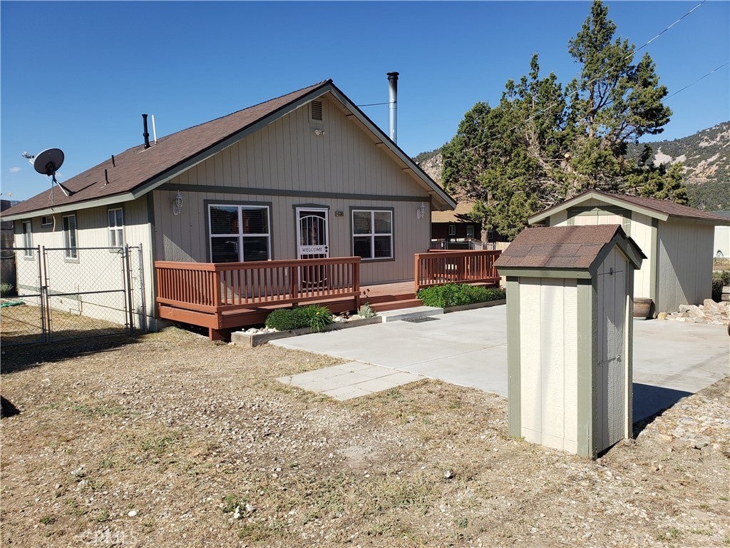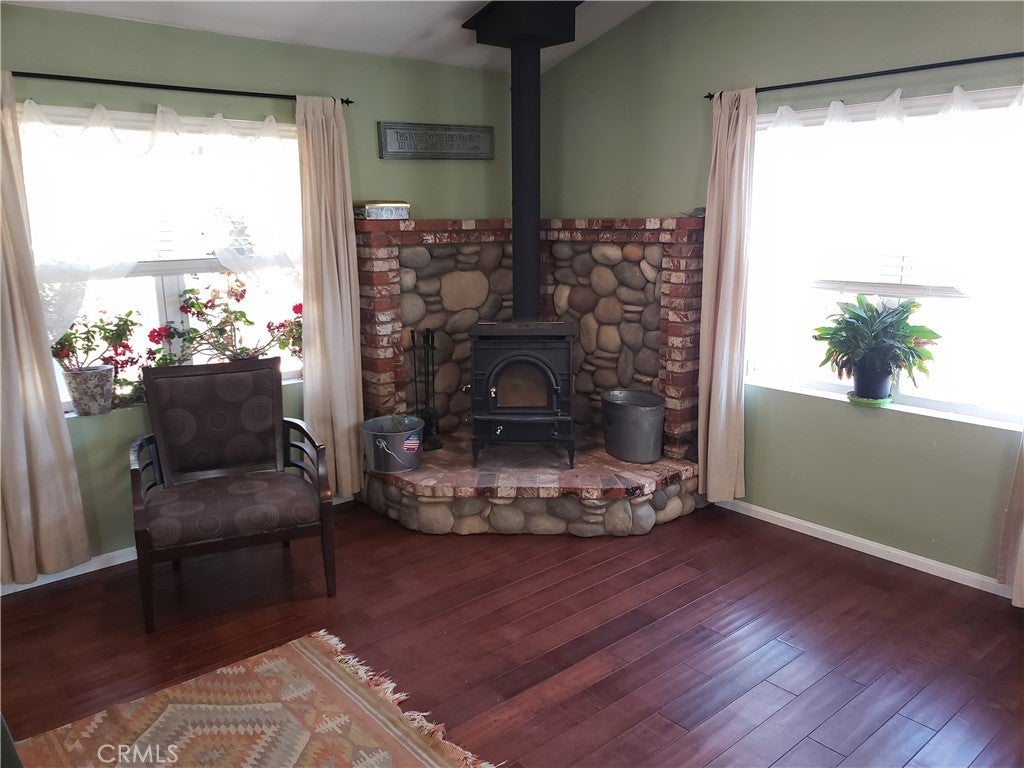 Light and bright with open layout. Vaulted ceiling in living room, with a beautiful free standing wood burning stove surrounded by brick and river rock. Granite counters in Kitchen and Bathroom with ceramic and tile floors in kitchen. Distressed wood flooring throughout with ceiling fans. Larger Front deck and a low maintenance composite back deck. Retractable awning on side of home with concrete pavers leading to a large back yard sitting area. Relax in the back yard spa enjoy our Big Bear stars. Room for an RV or boat on East side of property. Seller has 5 adjacent lots equaling 12,500 s/f for sale, please inquire with listing agent.