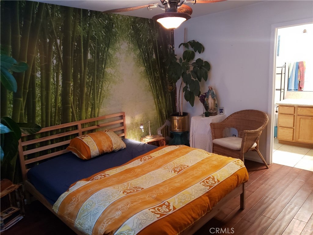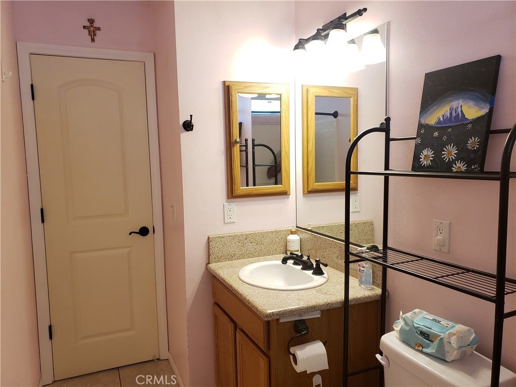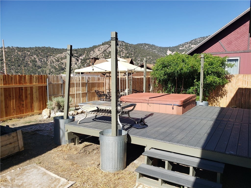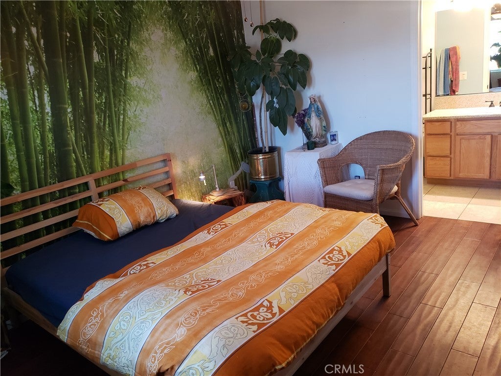 Light and bright with open layout. Vaulted ceiling in living room, with a beautiful free standing wood burning stove surrounded by brick and river rock. Granite counters in Kitchen and Bathroom with ceramic and tile floors in kitchen. Distressed wood flooring throughout with ceiling fans. Larger Front deck and a low maintenance composite back deck. Retractable awning on side of home with concrete pavers leading to a large back yard sitting area. Relax in the back yard spa enjoy our Big Bear stars. Room for an RV or boat on East side of property. Seller has 5 adjacent lots equaling 12,500 s/f for sale, please inquire with listing agent.