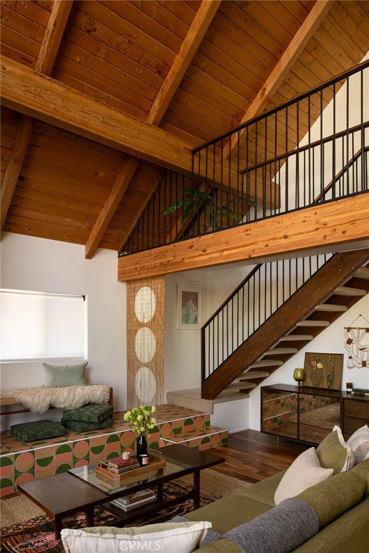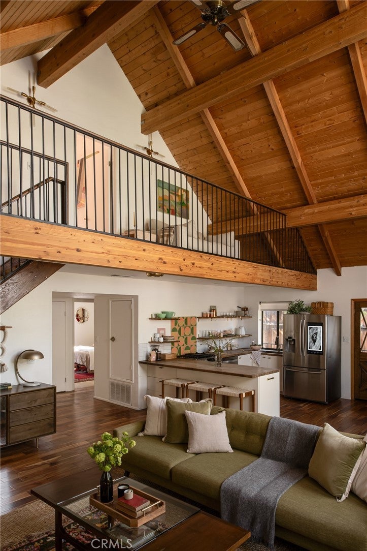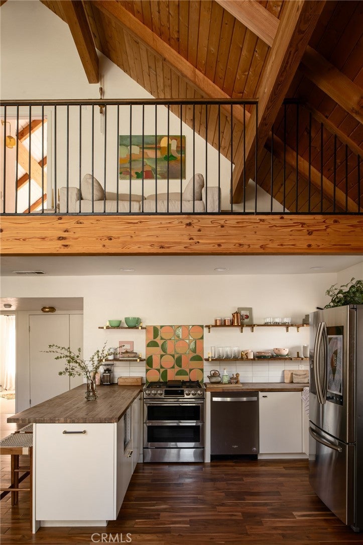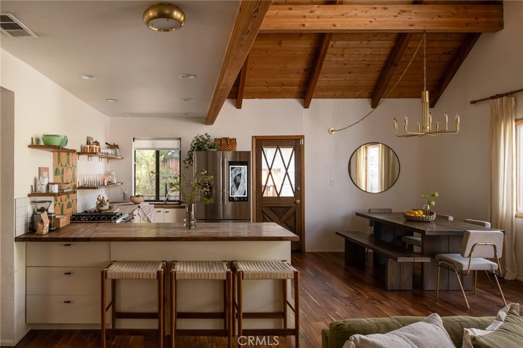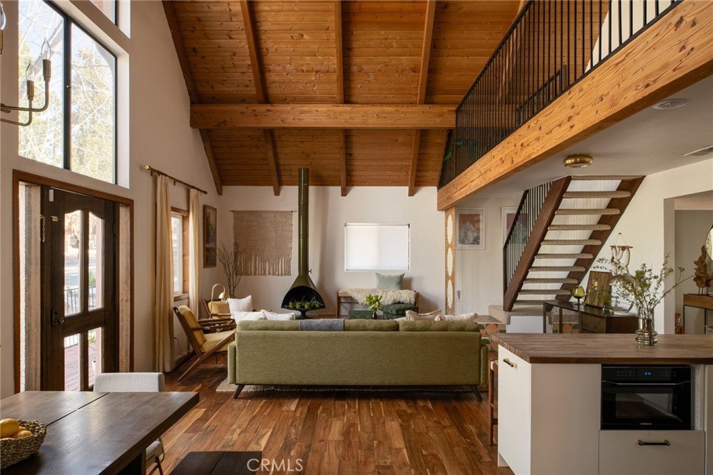 Beamed Ceilings, Breakfast Bar, Separate/Formal Dining Room, High Ceilings, Living Room Deck Attached, Open Floorplan, Bedroom on Main Level, Loft, Primary Suite