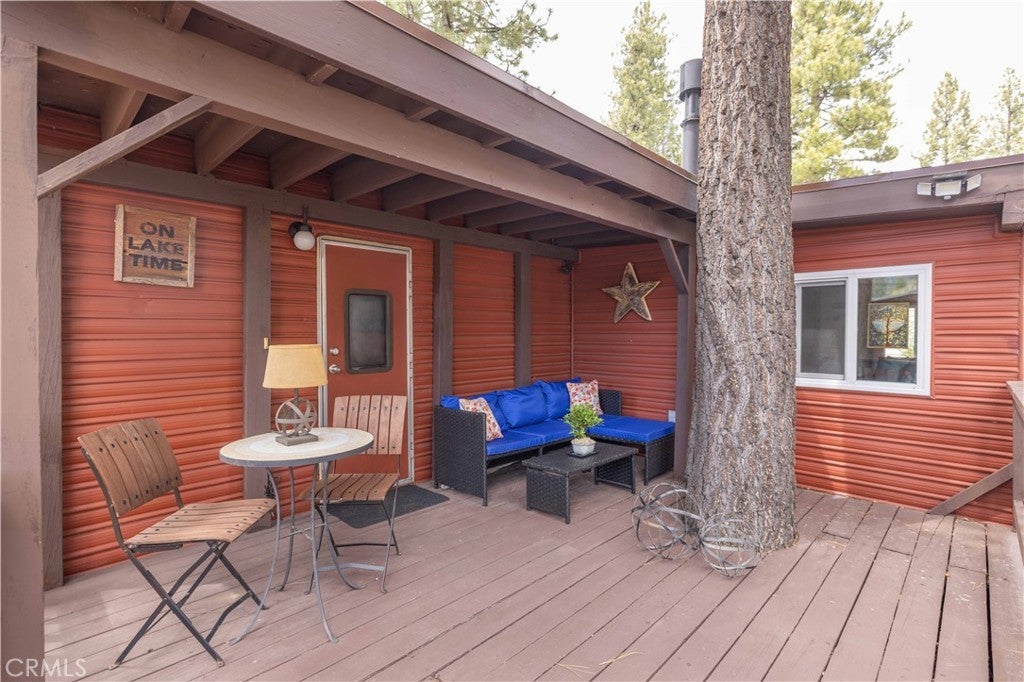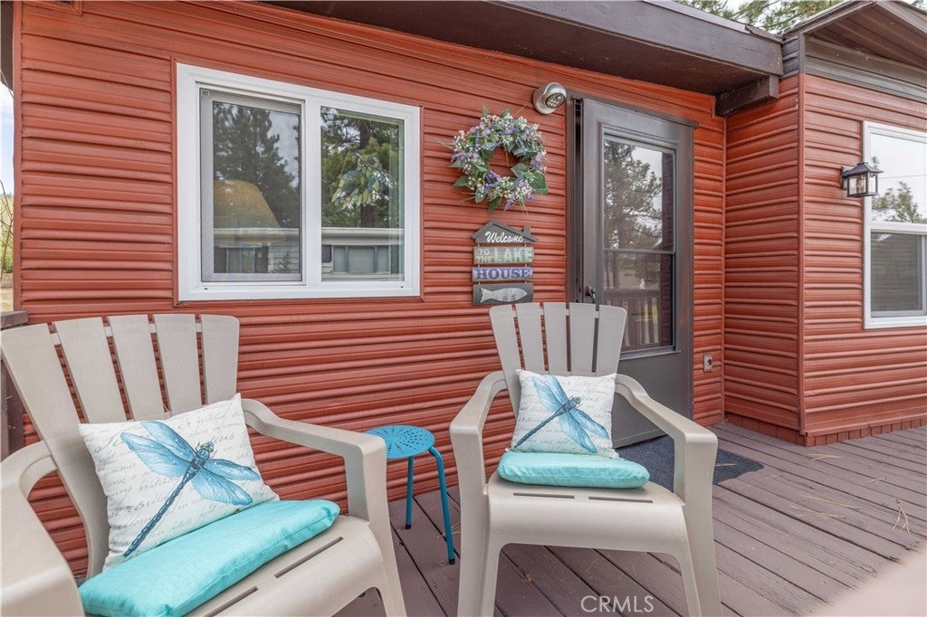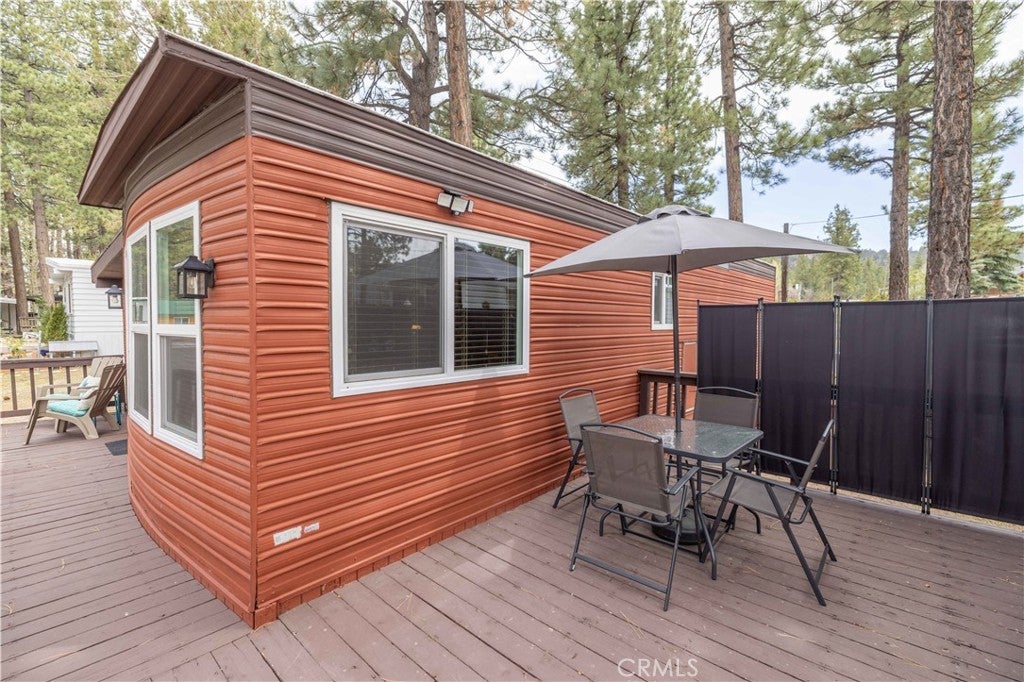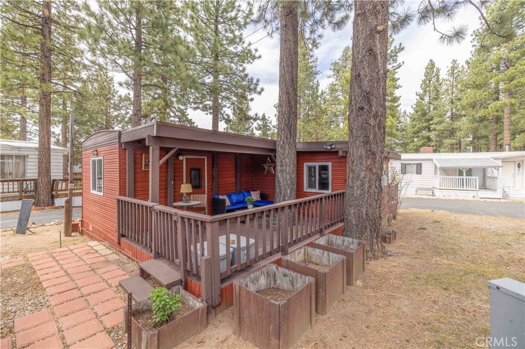 Charming and upgraded manufactured home in Lakeside Village, Big Bear Lake! This home is a park model and fully furnished, offering immediate use for secondary or primary home. Seller has invested extensively in improvements over the past year, including new Milgard windows, Torch Down roof with 3 coats of Henry’s silicone, new water lines, water pressure regulator, hot water heater, and shower drain. Additional upgrades include a refreshed ceiling and ceiling fan in the woodstove room, new trim and sink faucet in the kitchen, reinforced front porch railing, new light switches, and motion sensor lighting outdoors. The Rinnai gas heater has been professionally serviced, and the shower floor pan resealed. Fresh paint and deep cleaning throughout make this home move-in ready. Enjoy partial lake views from the property and a location just moments from the shoreline, village shops, restaurants, and year-round recreation. Whether you're strolling to the lake or enjoying a quiet evening at home, the setting offers the best of Big Bear living.
