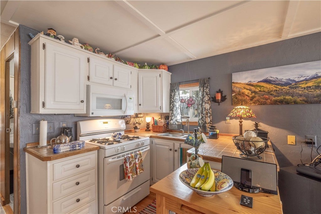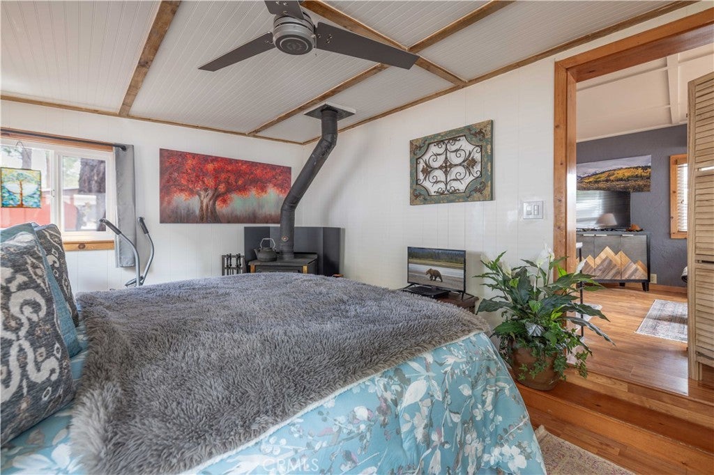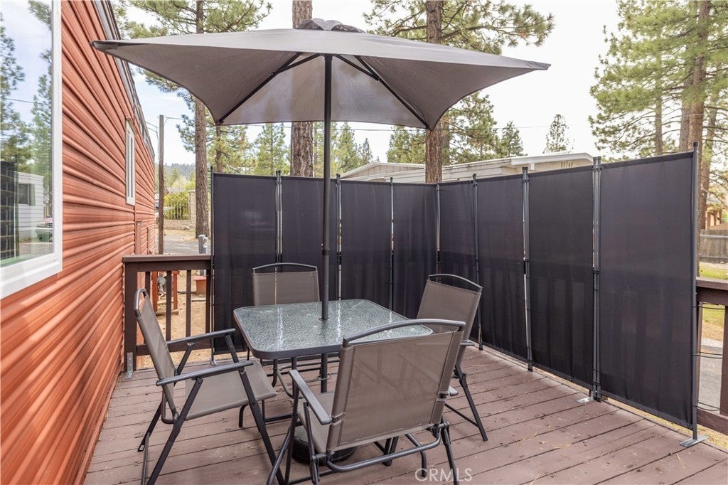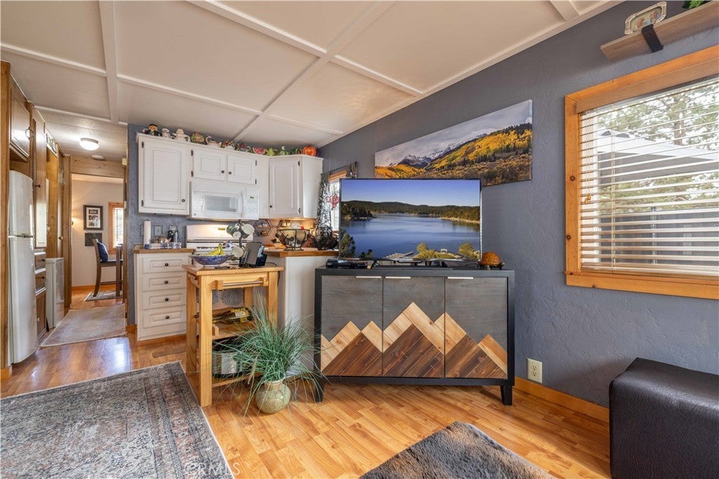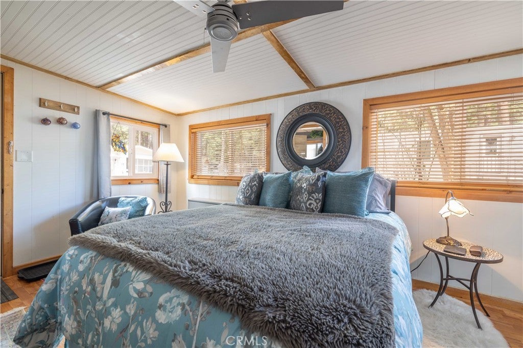 Charming and upgraded manufactured home in Lakeside Village, Big Bear Lake! This home is a park model and fully furnished, offering immediate use for secondary or primary home. Seller has invested extensively in improvements over the past year, including new Milgard windows, Torch Down roof with 3 coats of Henry’s silicone, new water lines, water pressure regulator, hot water heater, and shower drain. Additional upgrades include a refreshed ceiling and ceiling fan in the woodstove room, new trim and sink faucet in the kitchen, reinforced front porch railing, new light switches, and motion sensor lighting outdoors. The Rinnai gas heater has been professionally serviced, and the shower floor pan resealed. Fresh paint and deep cleaning throughout make this home move-in ready. Enjoy partial lake views from the property and a location just moments from the shoreline, village shops, restaurants, and year-round recreation. Whether you're strolling to the lake or enjoying a quiet evening at home, the setting offers the best of Big Bear living.