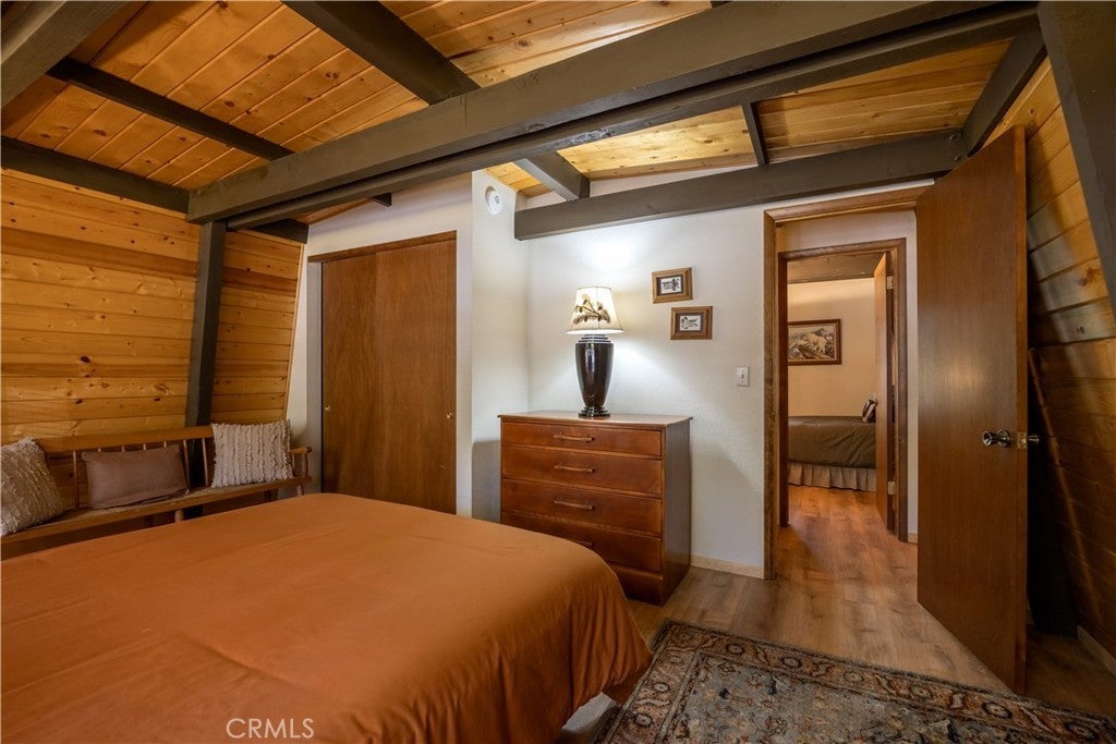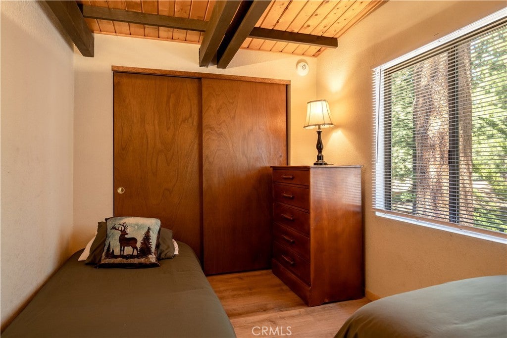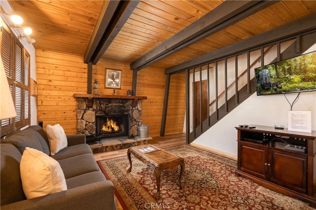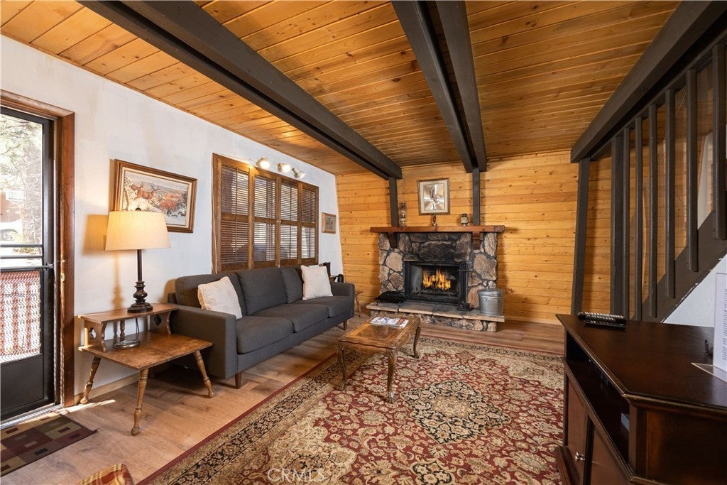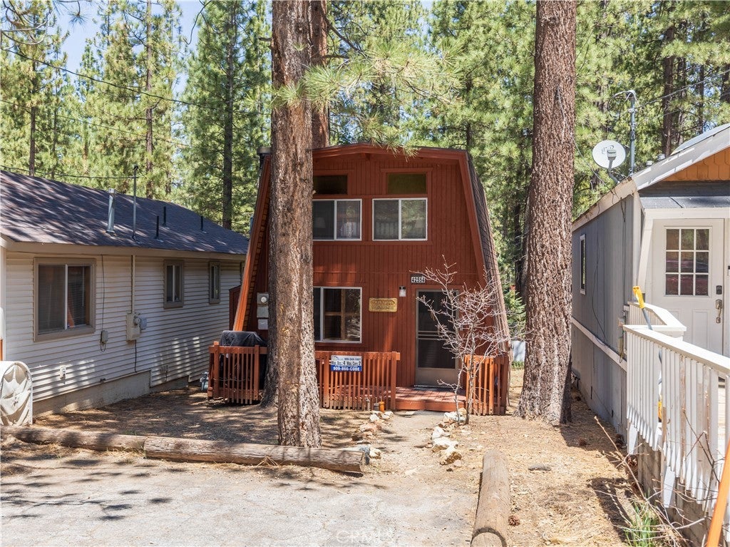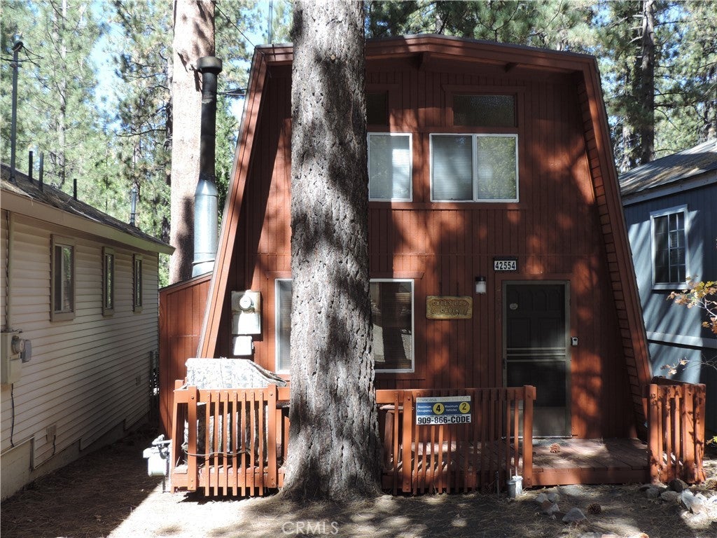 This meticulously maintained modified A-Frame home is certain to impress. It features a freshly painted exterior, new wood plank flooring throughout with a warm and cozy wood-burning fireplace. Situated in the sought-after Lower Moonridge area, which offers an array of year-round activities and enjoyment. Conveniently located just one block from the national forest, where hiking, mountain biking and snow play can be enjoyed! Also conveniently located approximately one mile from the ski resorts, less than a mile from the zoo and golf course. The prime location is positioned in Big Bear Valley, providing easy year-round access to, dining, and other amenities. This property is turn-key and move ready."