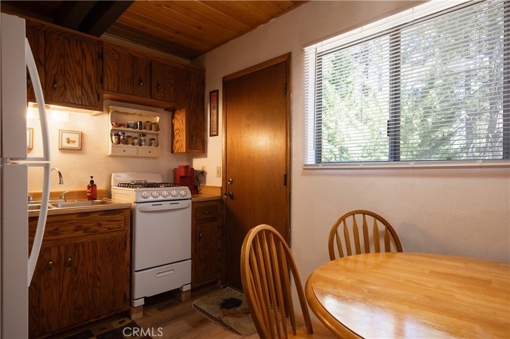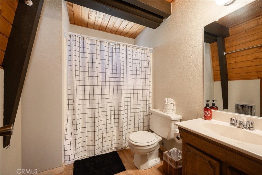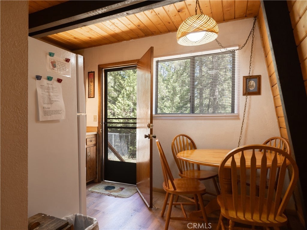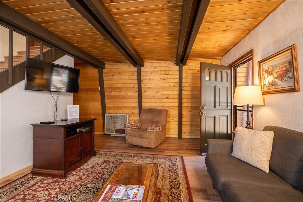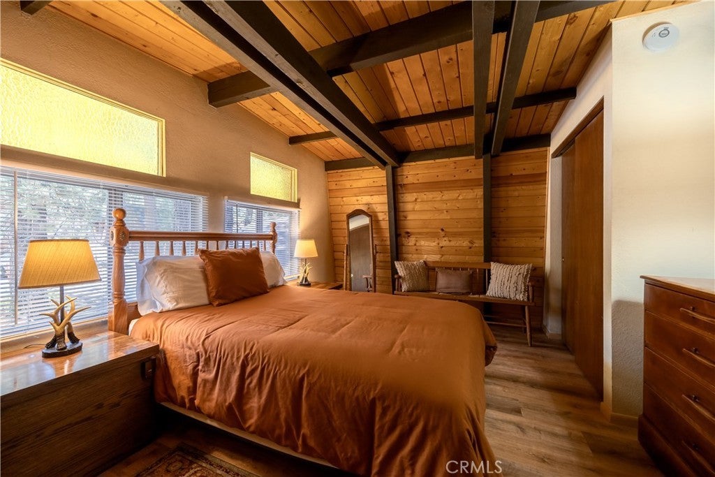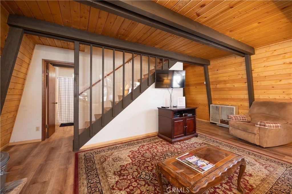 This meticulously maintained modified A-Frame home is certain to impress. It features a freshly painted exterior, new wood plank flooring throughout with a warm and cozy wood-burning fireplace. Situated in the sought-after Lower Moonridge area, which offers an array of year-round activities and enjoyment. Conveniently located just one block from the national forest, where hiking, mountain biking and snow play can be enjoyed! Also conveniently located approximately one mile from the ski resorts, less than a mile from the zoo and golf course. The prime location is positioned in Big Bear Valley, providing easy year-round access to, dining, and other amenities. This property is turn-key and move ready."