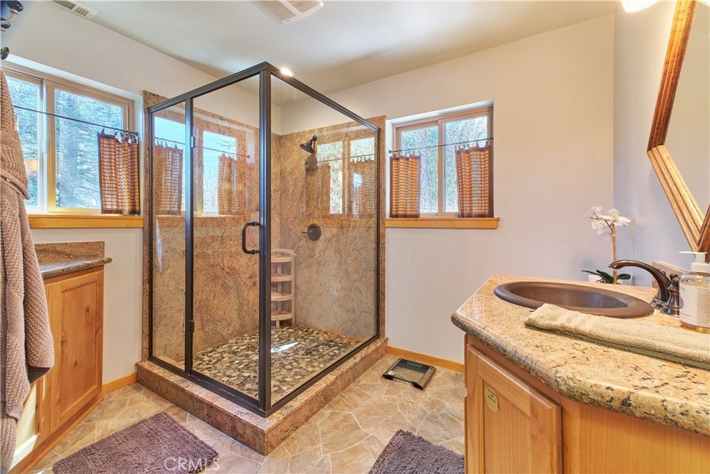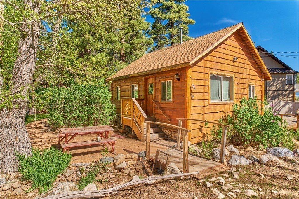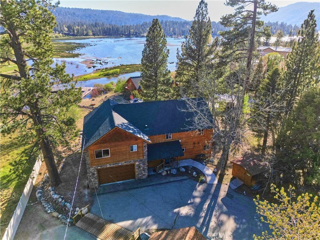 Tucked along the tranquil shores of Big Bear Lake's Metcalf Bay, this rare multi-unit lakefront property is rich in history, nature, and opportunity. Purchased by the family in 1975, it became Harbor Cove Resort, once home to ten charming cabins. Many of the home’s distinctive features were reclaimed from those cabins and thoughtfully incorporated into the current residence, which was completely rebuilt and expanded in 2016. The main home offers a spacious kitchen/dining/family area upstairs with additional play and game areas, 5 bedrooms—including two master suites, one with a stone fireplace—3.5 bathrooms, and an elevator for full accessibility. A detached 1890’s cabin, updated in 2009, adds 2 bedrooms and 1 bath, perfect for guests, personal use, or long-term rental potential. Set on more than half an acre of prime lakefront land, the property features a unique channel trench dug with neighboring owners to allow boat access even during low-water years. Surrounded by soaring pines and panoramic lake views, the grounds include a whimsical wheelchair-accessible miniature golf course, wandering creek, and expansive decks and pavilion to enjoy eagle and heron sightings. As a plus, the adjacent neighbor has been open to sharing dock space. Whether you’re seeking a legacy estate or a versatile mountain retreat, this is a one-of-a-kind offering with unmatched land and water access in Metcalf Bay. Seller is motivated and open to all offers.