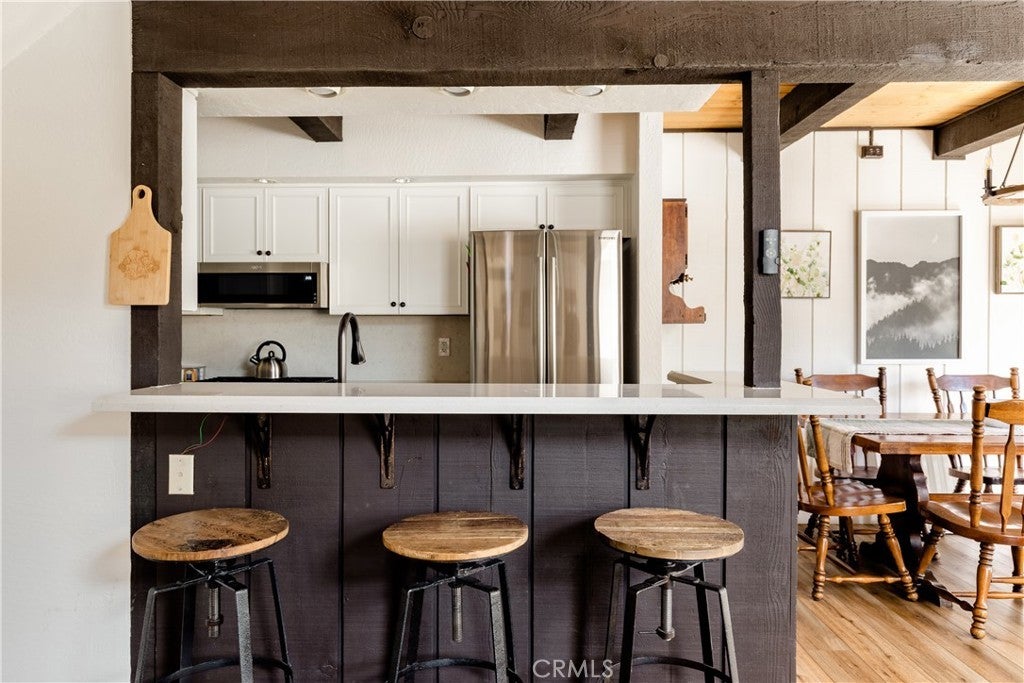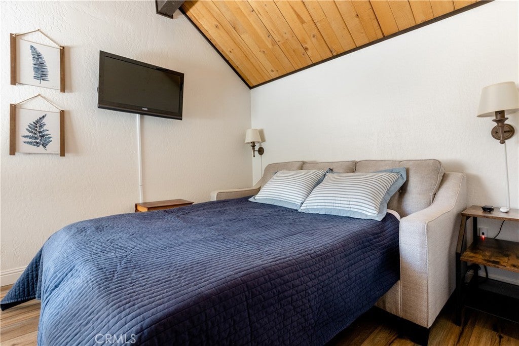 Ski-In/Ski-Out Corner Unit at Snow Summit – Premier Income-Producing Opportunity! Welcome to your perfect mountain getaway and investment! Located in the desirable Escape For All Seasons condo complex, this beautifully furnished, income-generating unit sits just steps from Chair Lift #4 at Snow Summit Ski Resort—true ski-in/ski-out access with a dedicated trail leading right to the slopes. This corner unit boasts unobstructed slope views, a private porch with BBQ area, and upscale mountain décor throughout. Enjoy warm wood accents, high ceilings, durable laminate flooring, and a stunning native rock fireplace that anchors the cozy living space. The galley kitchen features updated appliances, a charming farmhouse sink, and everything you need for entertaining or those impromptu family retreats. Loads of windows offer natural lighting and panoramic views of ski slopes and forest. The spacious loft-style primary bedroom includes a closet, and attached full bathroom. The second bedroom is outfitted with bunk beds and futon for additional sleeping arrangements. Overall, the layout is perfect for both personal use and guest stays. Additional features include in-unit washer/dryer, ample storage, and stylish, move-in-ready furnishings. In summer, you’re just a short stroll to the Snow Summit Sky Chair for hiking, mountain biking, concerts, and events like Spartan Races and rock climbing. Other activities include Downhill Bike Park, Cross-Country Bike Trails, and Basecamp Activities (zip line, etc.) Centrally located near Big Bear Lake, the Village, Golf Course, Zoo, Observatory, and Alpine Pedal Path—this is four-season living at its finest! HOA includes: cable, snow removal, water and trash, secured parking, exterior maintenance, and on-site property management. Each unit comes with 2 parking passes and parking is first-come, first-served. STR Income details are available upon request.
