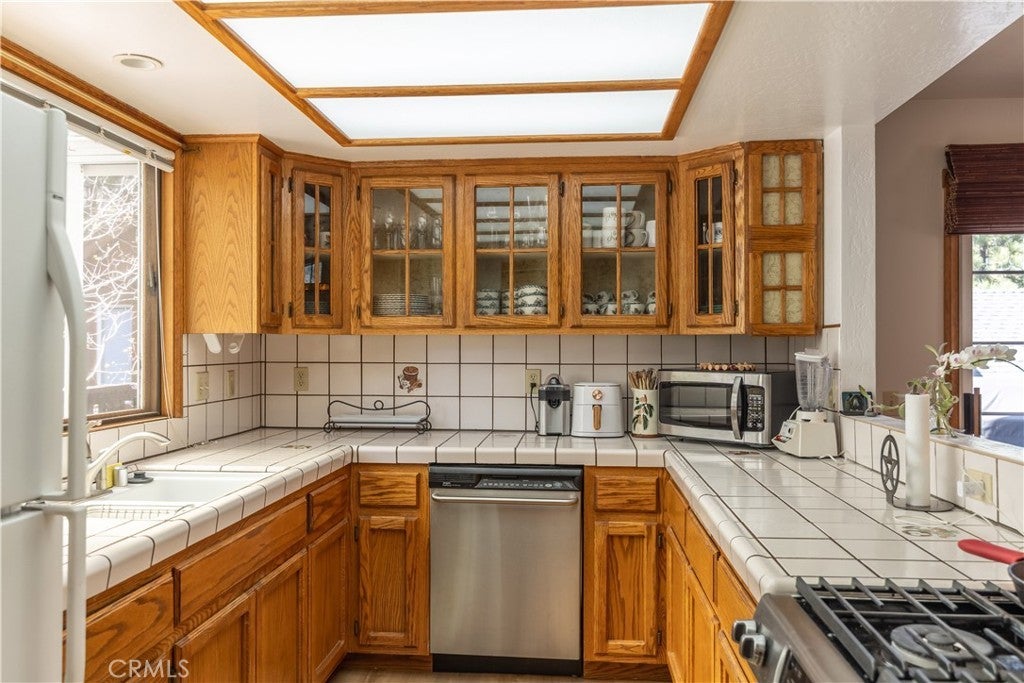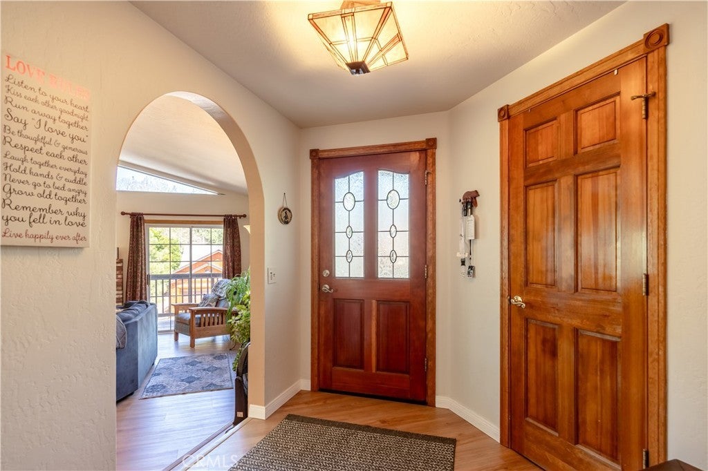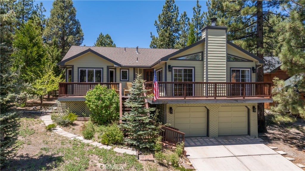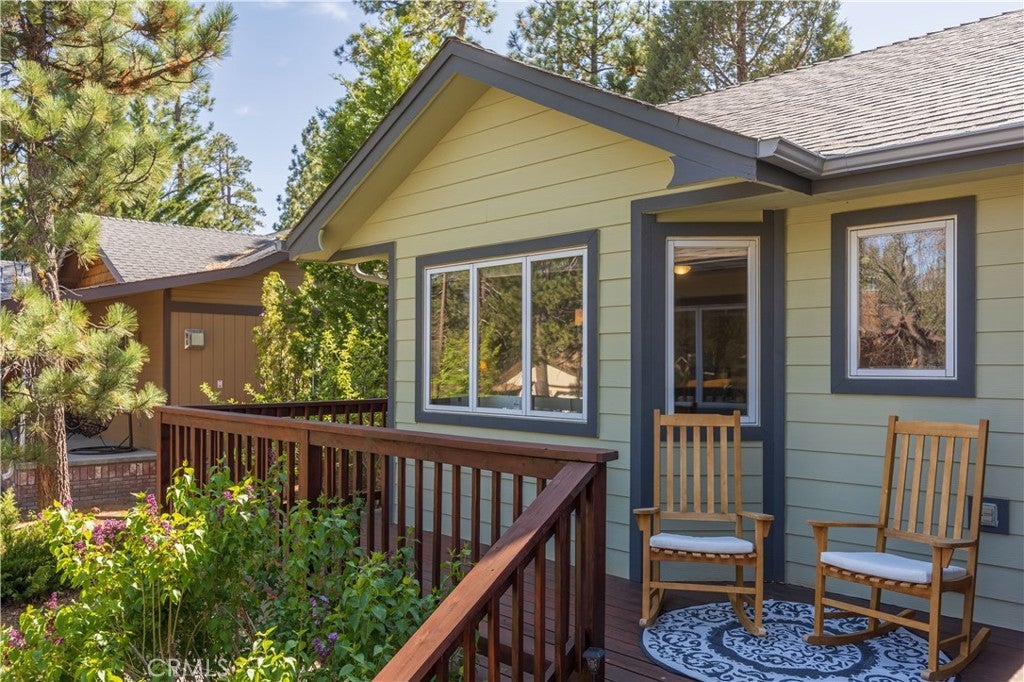 Discover this beautifully updated mountain retreat in the sought-after Fox Farm/Alpine Woods neighborhood of Big Bear. This well maintained home boasts a a new roof and durable cement Hardie Plank siding, ensuring both longevity and low maintenance. The spacious interior features a large living area that is great for entertaining. The kitchen offers ample cabinetry, a full pantry, and an adjacent laundry closet with washer and dryer included. Enjoy the serene surroundings from the expansive front deck or relax in the warm sunroom overlooking the open backyard and patio area. An attached two-car garage provides convenient parking and storage. Situated in a central location, you're just minutes away from Big Bear Lake, ski resorts, shopping, and dining. Key Features: -3 bedrooms, 2 full bathrooms -1,627 sq ft of living space on a 7,048 sq ft lot -New roof and cement Hardie Plank siding -Large living area -Spacious kitchen with full pantry -Sunroom and expansive front deck -Attached two-car garage Don't miss this opportunity to own a meticulously maintained home in the heart of Big Bear. Whether you're seeking a full-time residence, vacation home, or investment property, 919 Waldstrasse Way is ready to welcome you.