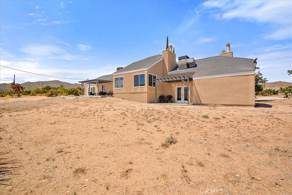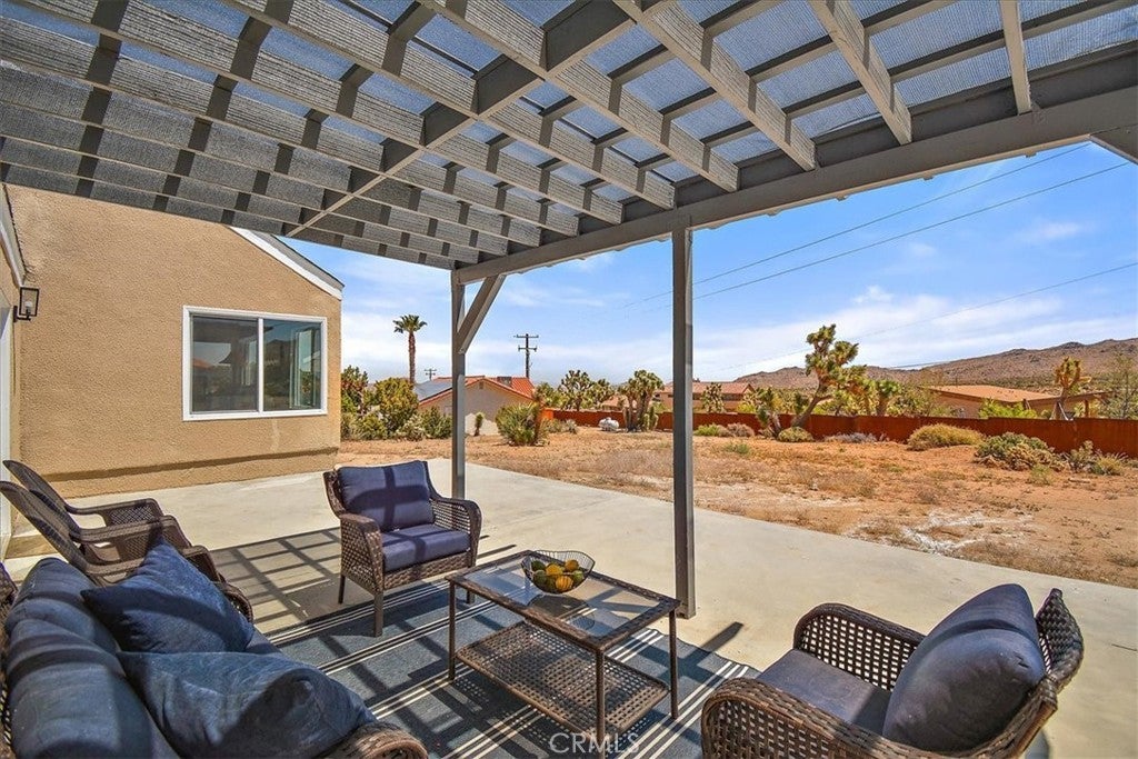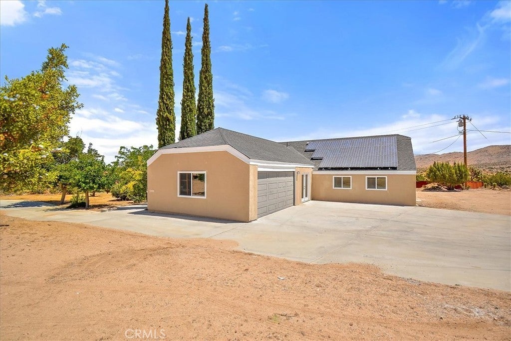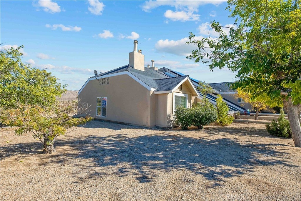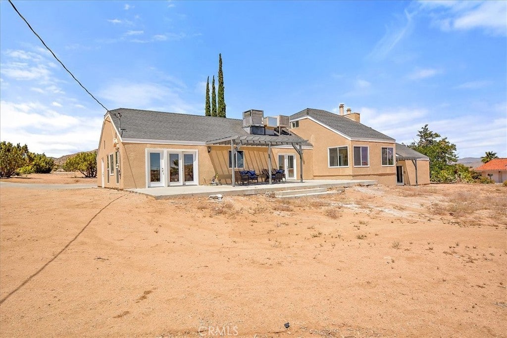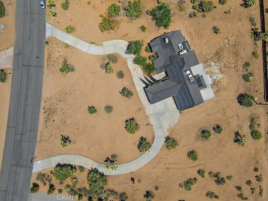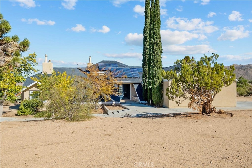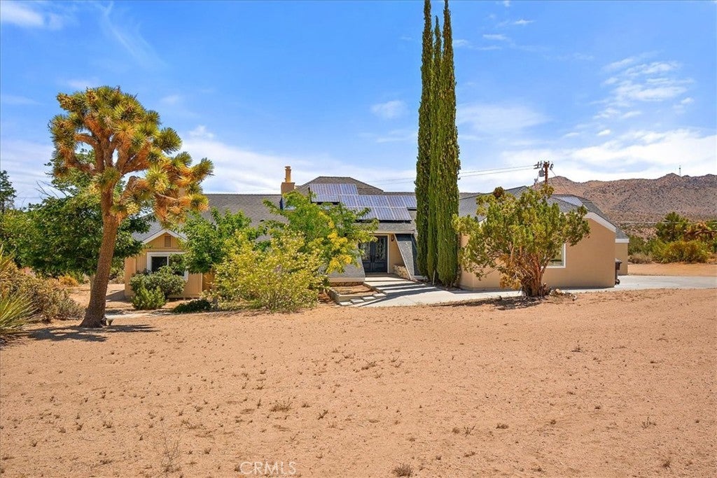 This Spacious, Absolutely Beautiful, and Fully Remodeled Chateau-Style Home in Upper Sky Harbor with leased solar is seated on 1.55 acres and surrounded by gorgeous views of the desert and surrounding landscape. This house has an extremely open floor plan, allowing for entertainment on a grand scale. This home boasts 3 bedrooms, 3 bathrooms, vaulted ceilings, an absolutely stunning and fully remodeled massive Kitchen with stainless steel appliances, Breakfast nook area, dining room, den/office, game room, Gigantic Living Room, Family Room, 2 outdoor patios with coverings, a huge horseshoe driveway, various tree/plants/vegetation, a SPA and so much more!!! Nearby to Parks, Trails, and the famous Joshua Tree National Park. This is perfect investment as a STR and/or a beautiful desert retreat. This home has been permitted with the city and is listed on all major STR sites including AirBNB/VRBO. COME SEE THIS BEAUTIFUL HOME TODAY!!!!