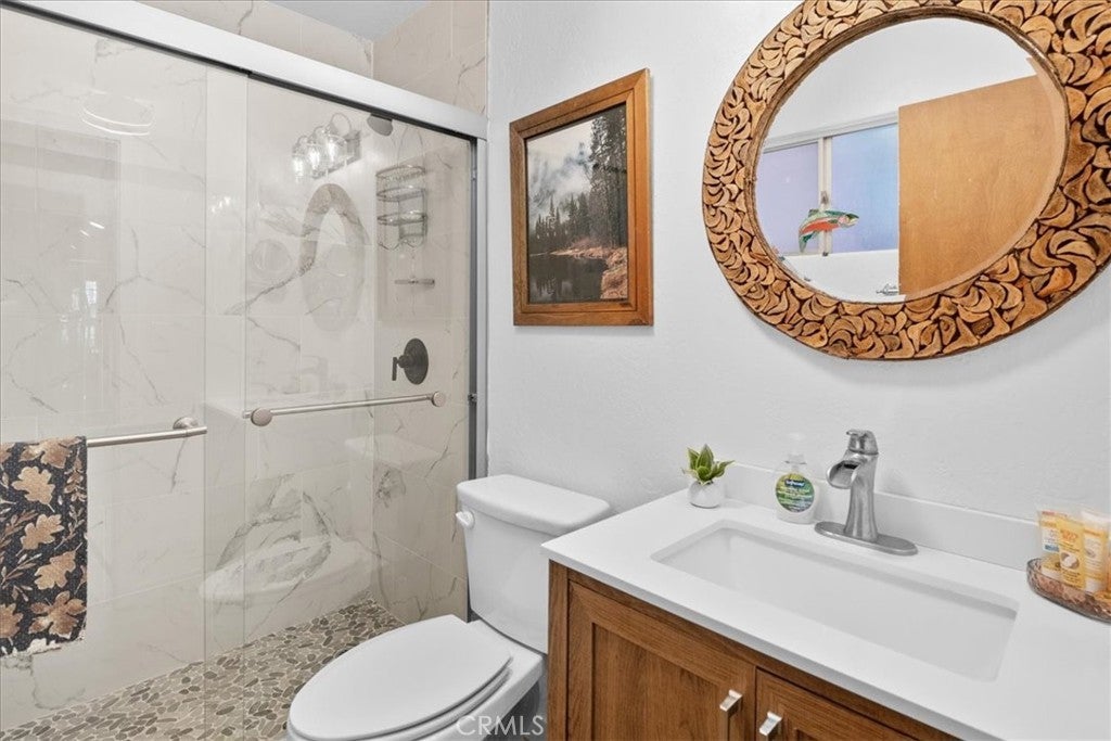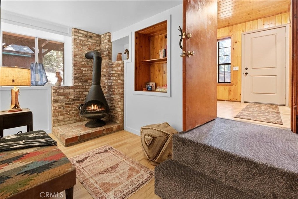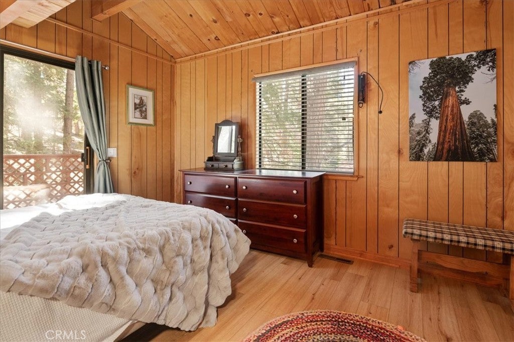 Fully Renovated Moonridge Cabin – Stylish, Turnkey & Backing to National Forest. Location, location, location! This beautifully remodeled 3-bedroom, 2-bathroom Moonridge cabin offers modern upgrades while keeping its mountain charm. Backing directly to the National Forest with no rear neighbors, you’ll enjoy unmatched privacy, serene forest views, and direct access to hiking trails and a practice snowboard run—all just 2 minutes from Big Bear Mountain ski lifts, golf, and the zoo. Property Highlights- 1,158 sq ft of living space on a 2,500 sq ft lot. Fully renovated in the past year: electrical, ducting, roof (home & shed), drywall, bathrooms, flooring, front door, stamped concrete, and exterior updates. Open-concept floor plan with natural light, skylights, and forest views. Upgraded kitchen: oak shelving, quartz countertops, designer marble backsplash, new cabinetry, vent hood, and modern fixtures. Two inviting living spaces: upstairs features a brick fireplace; downstairs boasts a freestanding wood-burning stove. Fully remodeled bathrooms with custom tile showers & contemporary finishes. Indoor laundry area + outdoor storage shed for gear. Lifestyle & Location- Quiet street in sought-after Moonridge neighborhood. Backs directly to National Forest – step right out to trails. Upper-level balcony with peaceful tree views. Turnkey & Move-In Ready- No deferred maintenance—just bring your bags! Perfect as a full-time home, vacation getaway, or short-term rental investment. Don’t miss this rare chance to own a modern, move-in ready cabin in Big Bear’s most desirable location!