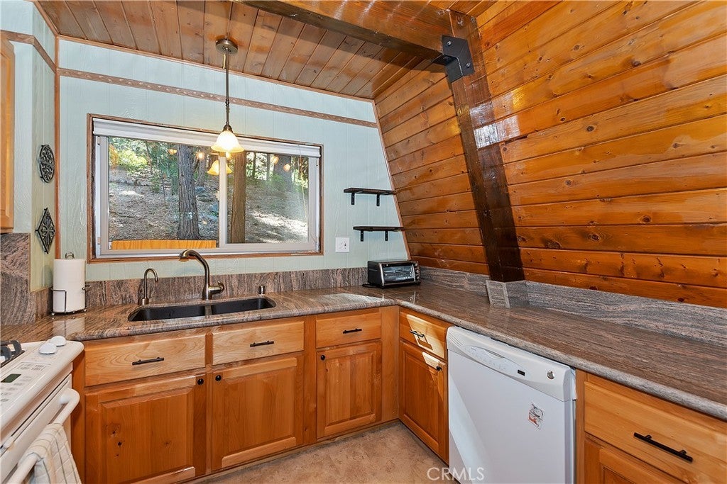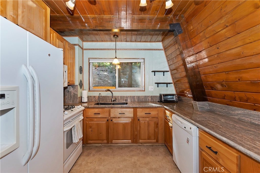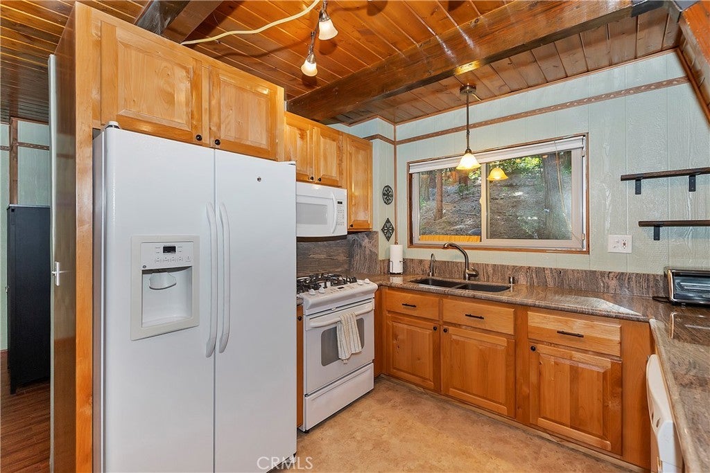 Nestled on a private road, this charming 3-bedroom, 2-bathroom home offers a perfect blend of comfort and functionality. Step inside to discover a beautifully upgraded galley kitchen featuring granite countertops and sleek new cabinetry, ideal for both everyday cooking and entertaining. The open floor plan flows seamlessly into the living room, where rich hardwood flooring and a cozy faux fireplace create a warm and inviting atmosphere. Just beyond the living space, you'll find a spacious Trex deck—perfect for relaxing or hosting guests outdoors. Dual-pane windows throughout the home provide energy efficiency and a tranquil interior environment. Also comes partially furnished per the seller's inventory.One of the standout features of this property is the expansive 2-car garage, which offers ample room for vehicles or can easily be transformed into a fantastic workshop. Situated on a generous 19,000+ sq ft lot, this home provides plenty of space and privacy, making it a rare find with endless possibilities. Great value here !