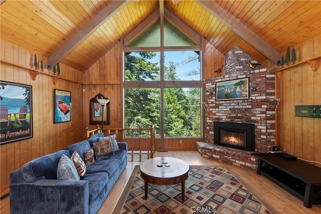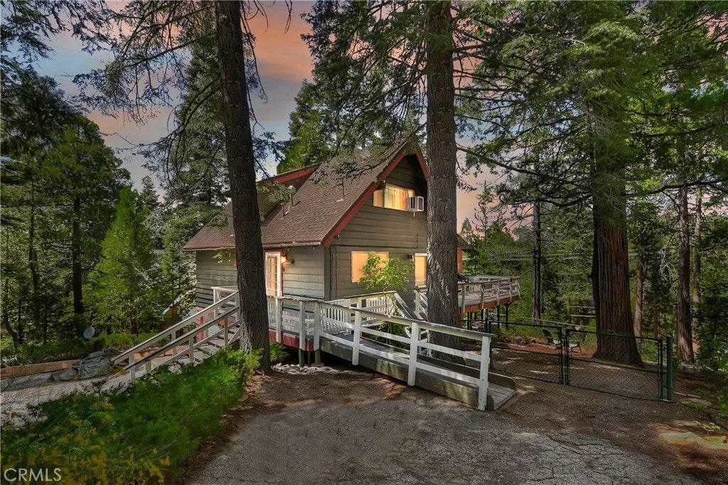 Great Value on this Lake Arrowhead Home with Lake Rights & Peaceful Setting Welcome to your mountain retreat in beautiful Lake Arrowhead! This 3-bedroom, 2-bathroom home offers approximately 1,700 sq ft of living space on a spacious 9,000 sq ft lot. Enjoy level entry into a light-filled great room featuring vaulted ceilings & large picture window framing serene forest views. Also enjoy the cozy wood burning brick fireplace The functional layout includes one bedroom on the main level, two additional bedrooms upstairs, and a generous family room on the lower level — perfect for entertaining or relaxing. While the home is ready for your cosmetic touches, some upgrades have already been completed including a new electrical panel, a whole-house Generac generator, and a fully fenced yard with chain-link fencing. A large one-car garage adds convenience and storage. Nestled on a private road in Arrowhead Woods, this property includes full Lake Arrowhead lake rights — an ideal getaway or full-time residence offering both tranquility and potential. A very good value here .