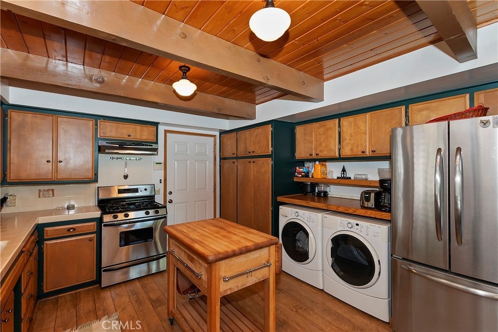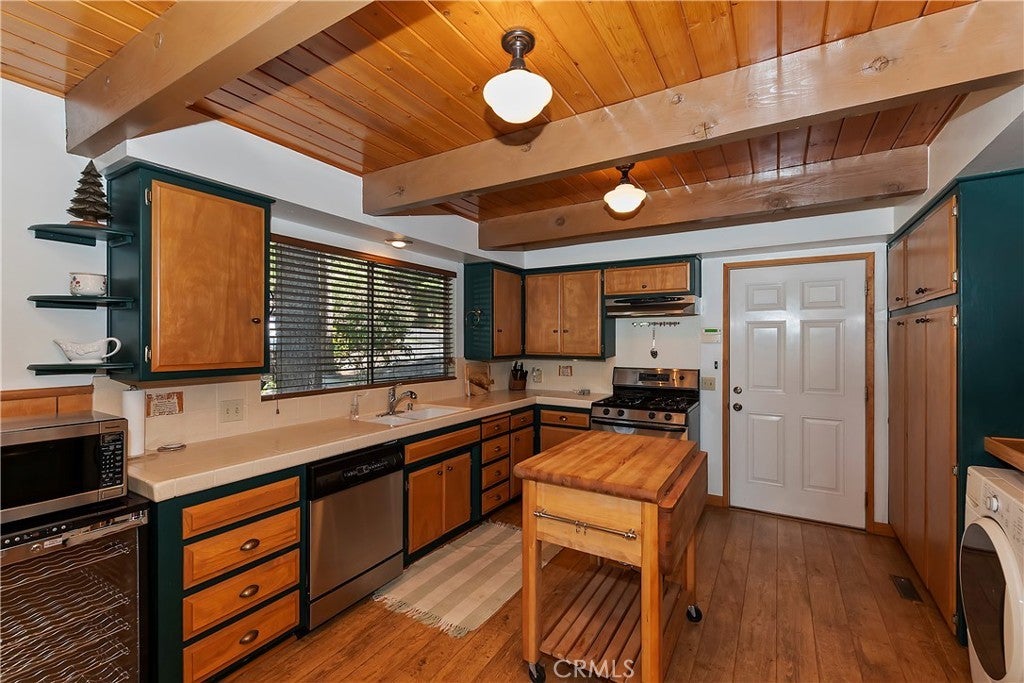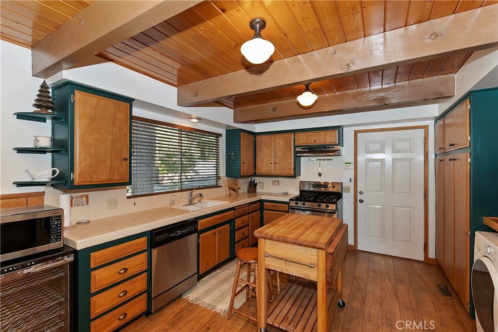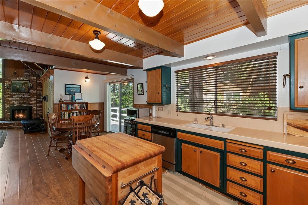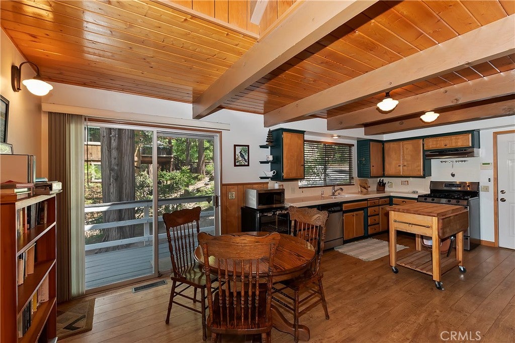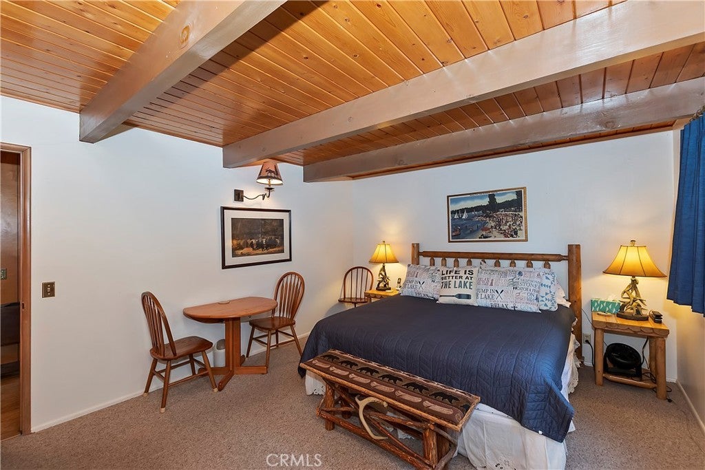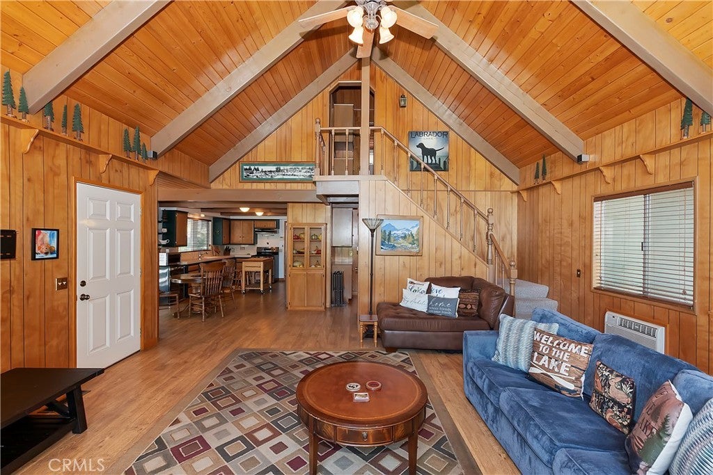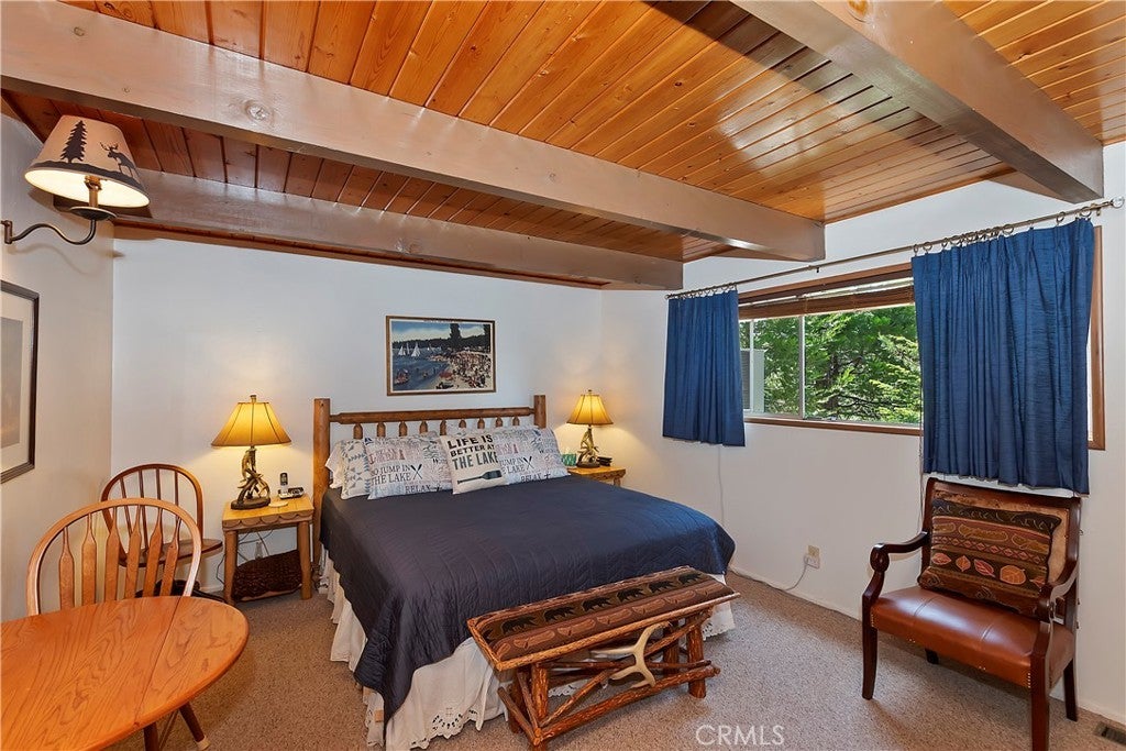 Beamed Ceilings, Eat-in Kitchen, Furnished, High Ceilings, Living Room Deck Attached, Open Floorplan, Bedroom on Main Level, Main Level Primary, Cathedral Ceiling(s), Galley Kitchen