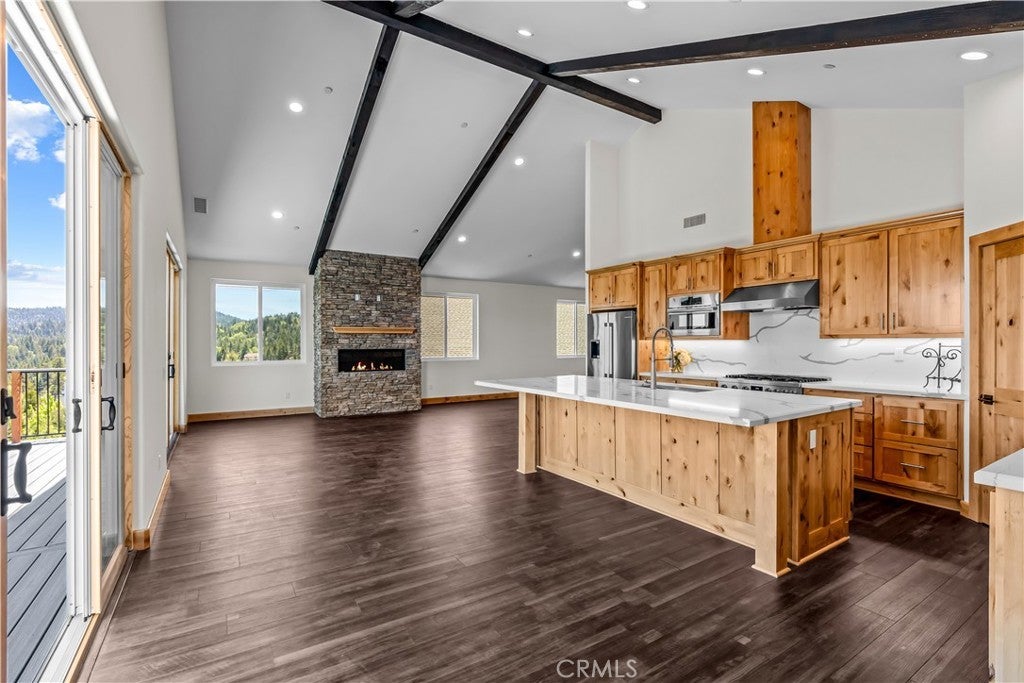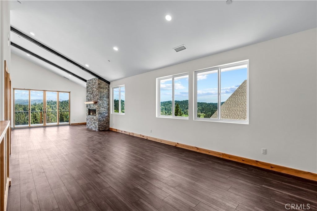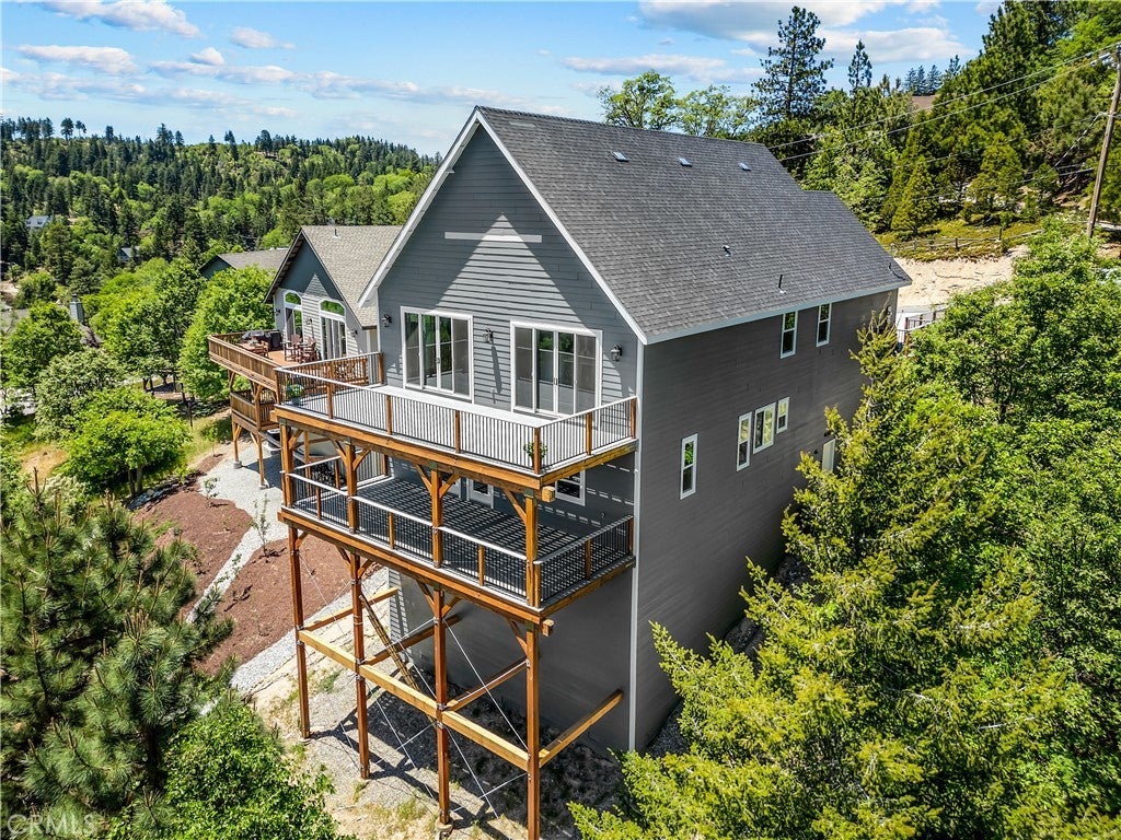 Welcome to your mountain sanctuary! Step inside this newly constructed home and feel all of your troubles melt away. A true escape situated above the golf course with the most breathtaking panoramic views! Amazingly easy access on a maintained road, with lots of level parking & straight into the garage. Once inside you are greeted with vaulted, beamed ceilings & tons of natural light, beautiful LVP flooring & loads of Milgard windows to soak in all of the outdoor beauty. The main level features a spacious living area which adjoins the dining area & open concept kitchen. Huge kitchen island with quartz countertops & stainless appliances, 6 burner Bosch range, built in microwave & walk in pantry! Room for huge dining table along with seating for 6 along the island bar. This is the perfect house for entertaining! Enjoy the floor to ceiling fireplace while gazing out the window & slider surround. The sliding glass doors are Milgard vinyl clad wood which are not only beautiful but functional, offering and extra wide opening out onto the oversized deck. The views are nothing but spectacular all the way from the high desert to Heaps Peak and over to the golf course & country club. Just imagine yourself enjoying those warm summer evenings soaking in the surrounding lights & starlit sky views! The main level also features a bedroom & full bath along with a powder room. Downstairs you will find your very spacious primary suite complete with it's own deck. There is also a spacious bath featuring a soaking tub and walk in shower. There are two other good sized bedrooms on the lower level & a large full bath not to mention a nice laundry room complete with a utility sink. Below this level is a huge amount of unfinished space that could be developed into more living space. Just use your imagination on what you could create with this space! This home has never been lived in and is yours to make your very own. Quality construction from top to bottom which gives you peace of mind for years to come. You'll enjoy those warm summers in your air conditioned space & cozy winters with the new forced air furnace. This home as a tankless water heater & your garage floors have been epoxied for ease of care. So much to take in and enjoy. Owner is willing to carry paper or consider a lease option too!! So don't hesitate in making this dream home your very own. Start living the mountain dream today!