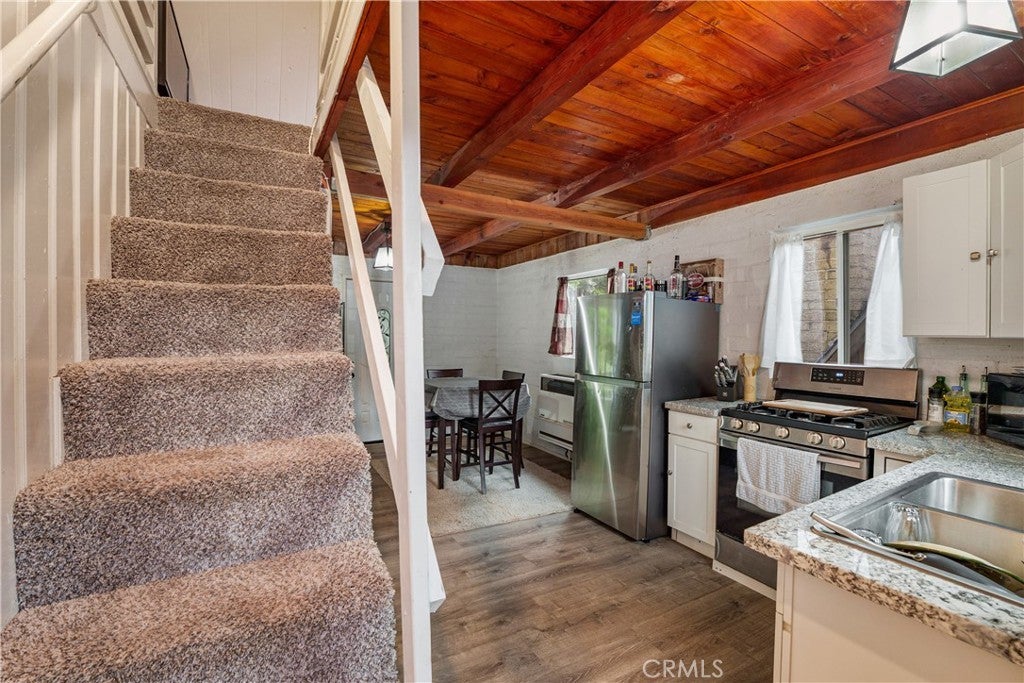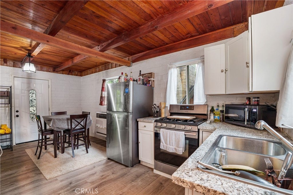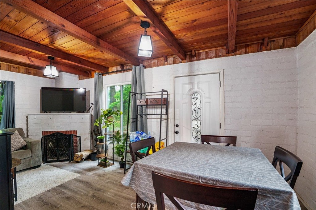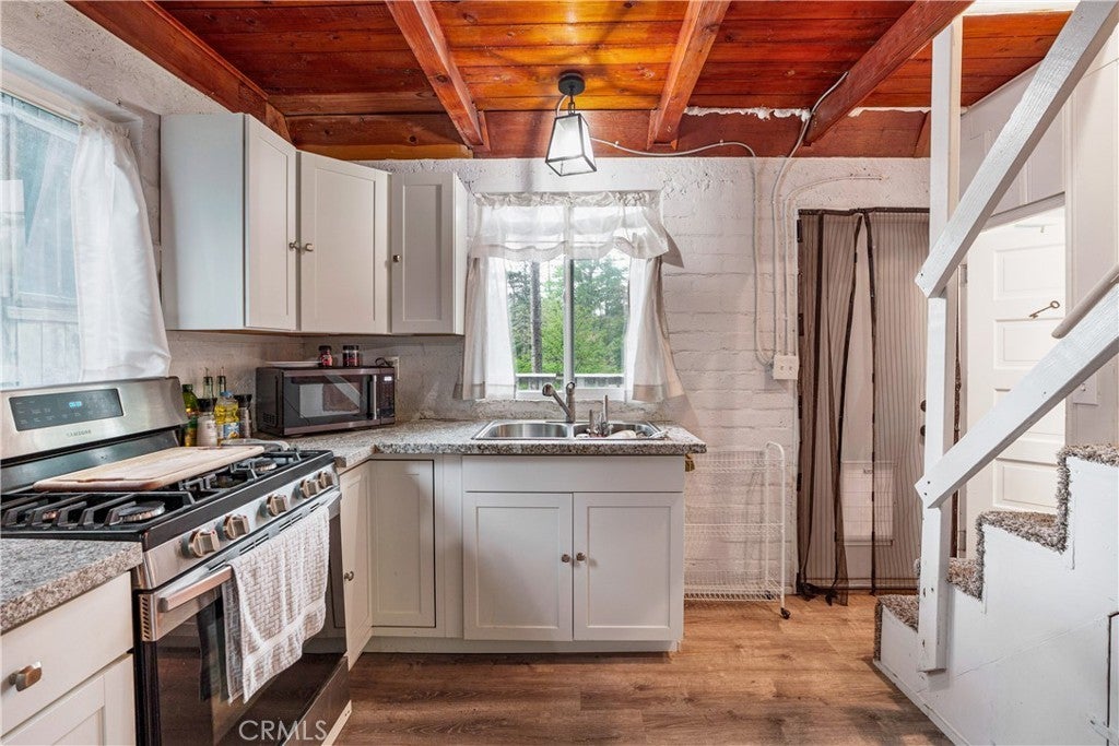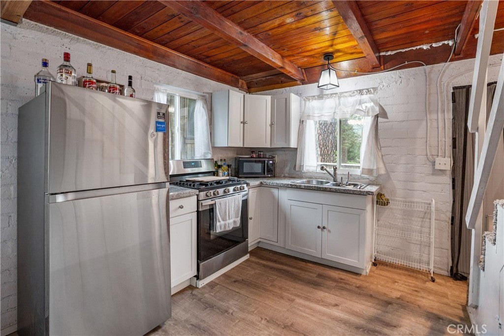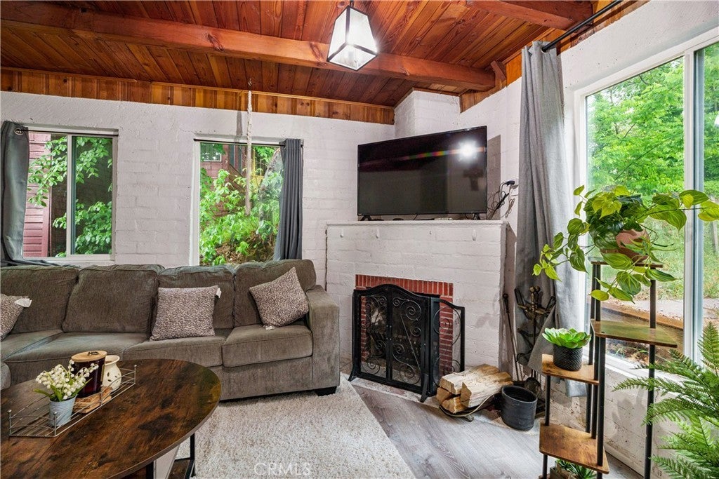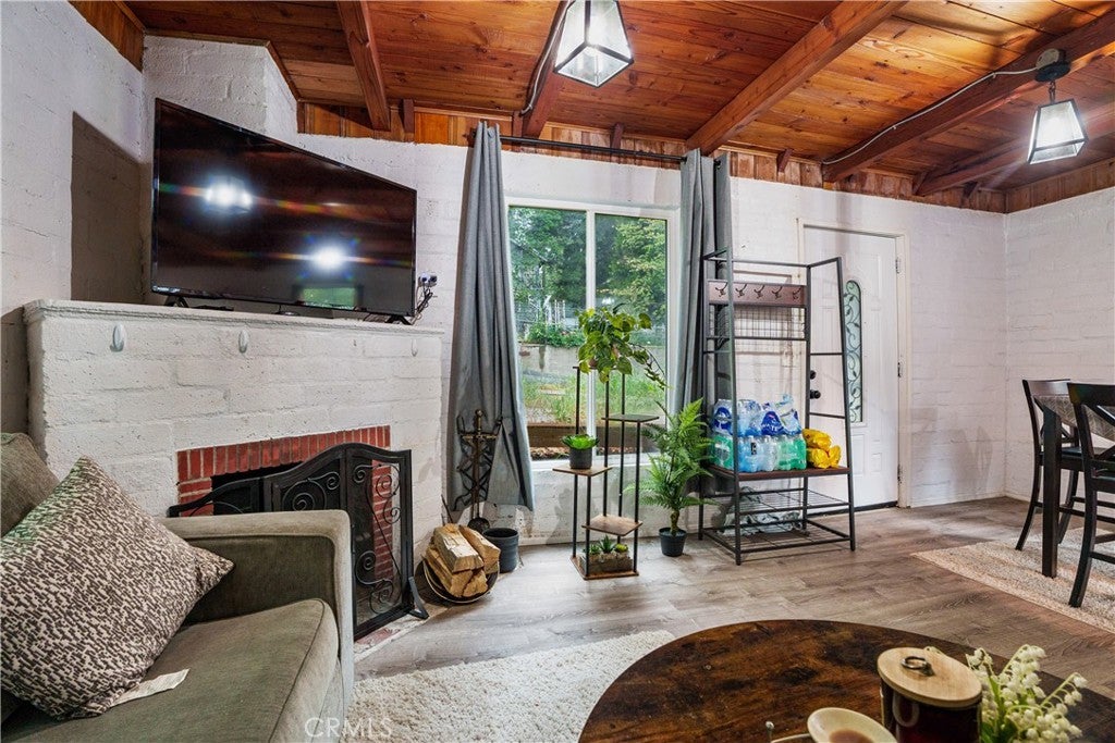 Charming Mountain Cabin Retreat – Fully Furnished & Move-In Ready! Escape to your own private mountain retreat with this cozy 1-bedroom, 1-bathroom cabin, offering 640 square feet of peaceful living space. Perfectly nestled in a beautiful tree-lined neighborhood, this home is the ideal place to unwind and enjoy nature’s beauty. Inside, the cabin features stunning wood laminate flooring and exposed wood beam ceilings, adding character and warmth to every room. The granite countertops and stainless steel appliances in the kitchen bring a touch of modern luxury to this rustic haven, while the upgraded subway tile in the bathroom enhances the home’s elegant, cabin-like charm. Stay warm and cozy by the wood-burning fireplace on cool mountain evenings, and enjoy the recently painted exterior and interior that give this home a fresh, modern feel. Recent upgrades include a 2-year-old roof and a 3-year-old water heater, ensuring peace of mind for years to come. The basement features laundry hookups and a storage room for storing snow gear and patio furniture when not in use. With a low tax rate and no HOA, this home offers the perfect blend of affordability and privacy. Don’t miss out—this gem won’t last long! Schedule a showing today!