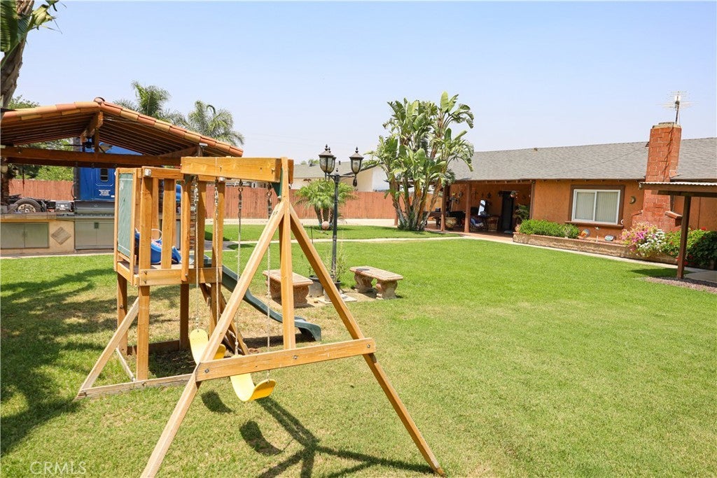 Charming Horse Property with Modern Upgrades on almost Half an Acre on the Desirable Sky Country Community. Welcome to your dream home! This beautifully renovated property offers the perfect blend of rural charm and modern convenience. Situated on just almost half an acre, this horse-friendly estate features 4 bedrooms and 2 updated bathrooms, ideal for comfortable family living. Step inside to discover a fully remodeled kitchen and bathrooms, bonus living area easy to be converted to a 5fth bedroom. Outside, enjoy the meticulously landscaped yard with mature trees, vibrant garden beds, and plenty of space for outdoor enjoyment. Entertain guests in the covered patio area complete with a built-in barbecue, perfect for summer cookouts and evening gatherings. With ample space for animals, hobbies, or simply enjoying the peaceful surroundings, this property offers the best of country living just minutes from town amenities. Conveniently close to shopping centers 15 fwy and 60 fwy. Don't miss your chance to own this turn-key gem — schedule a private showing today!