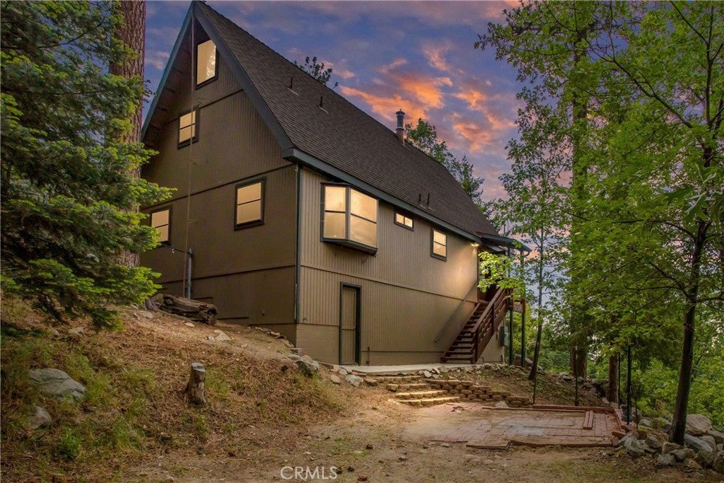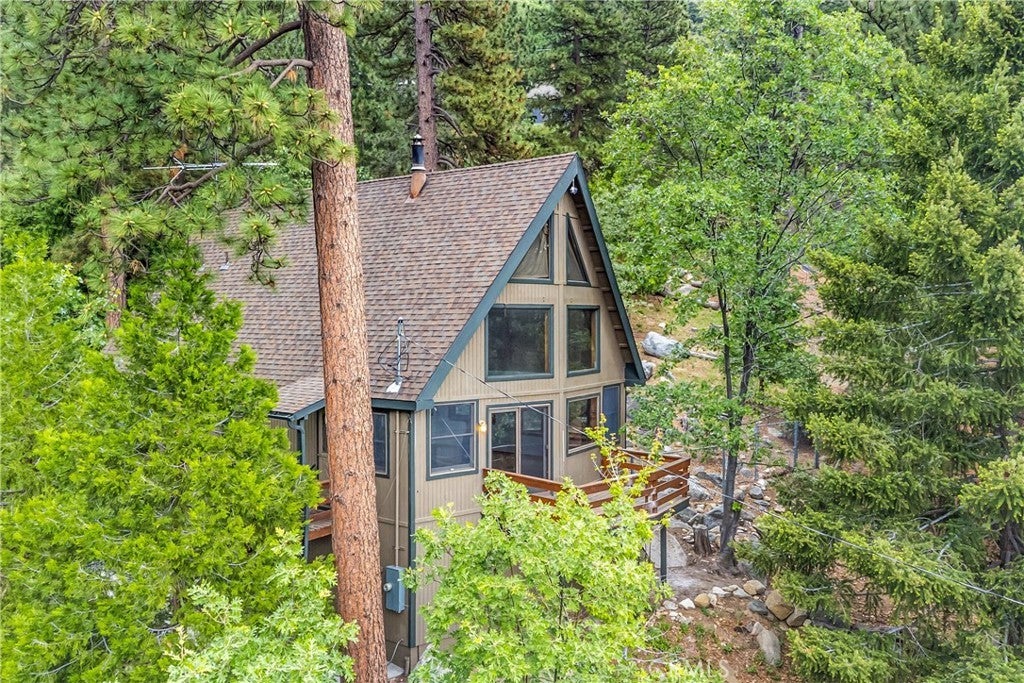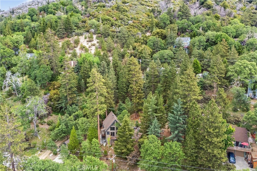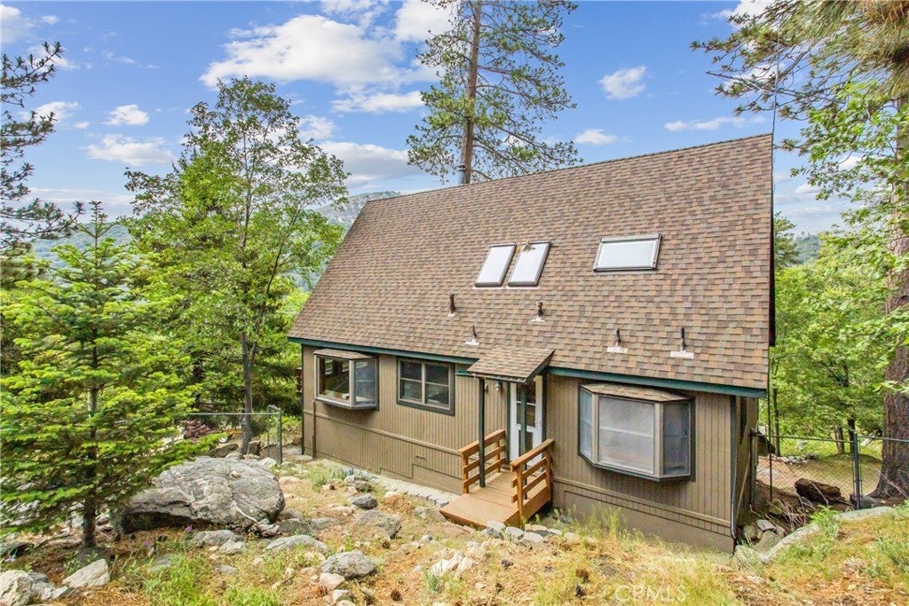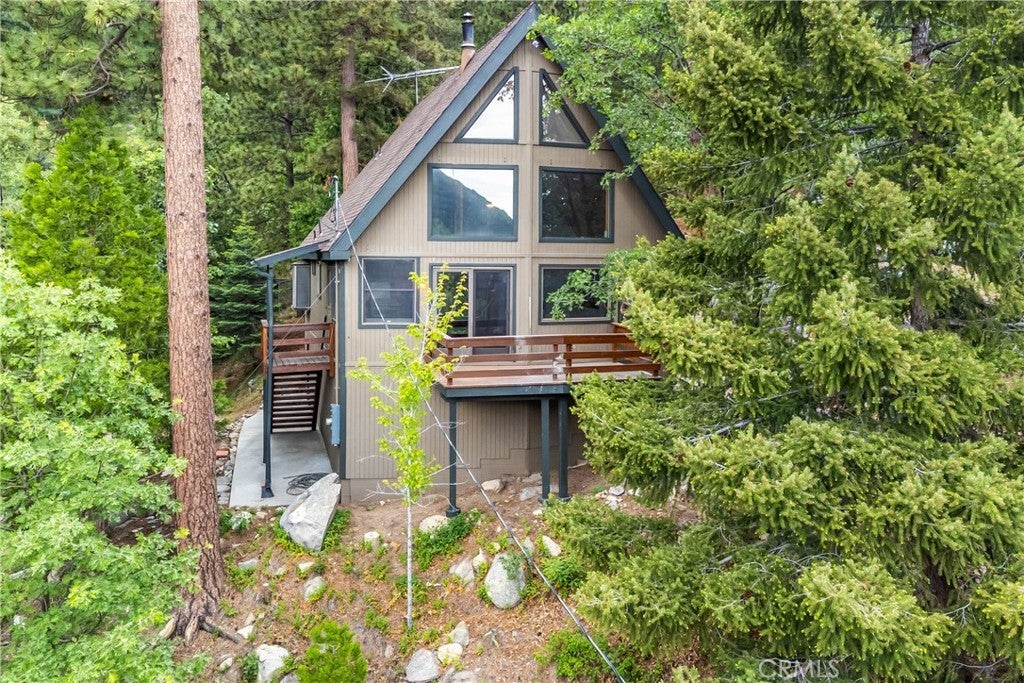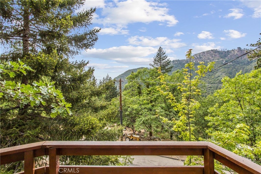 Welcome to your mountain retreat in Angelus Oaks! This beautiful home offers 3bed, 2bath, an open concept kitchen to a spacious living area, with a cozy wood burning stove & a window seat within the bay window in the living room, a newer wall heater unit, a balcony off the living area with stunning scenic views, lots of windows all around that offer natural light, 360 views through the guest bedroom bay windows, indoor laundry room, a stunning spiral staircase that leads up to the primary bedroom/bathroom offers a jetted tub, separate shower & a sky light with MAGNIFICENT views, a spacious/finished attic area above the primary bedroom walk-in closet for extra storage. Detached 2 car garage, with an additional finished storage area above the garage, plus an unfinished build-up area with ample space for you to use however you'd like. This property spans two expansive lots with a large fenced in area. This is a unique opportunity for either a peaceful primary residence, a vacation home, or potential investment property nestled in a serene Angelus Oaks community on a cul-de-sac road. This property is within minutes of the country store, gas station & restaurant & within 20 minutes of Jenks lake! Come check out this great opportunity & check out the 3D Tour ;)
