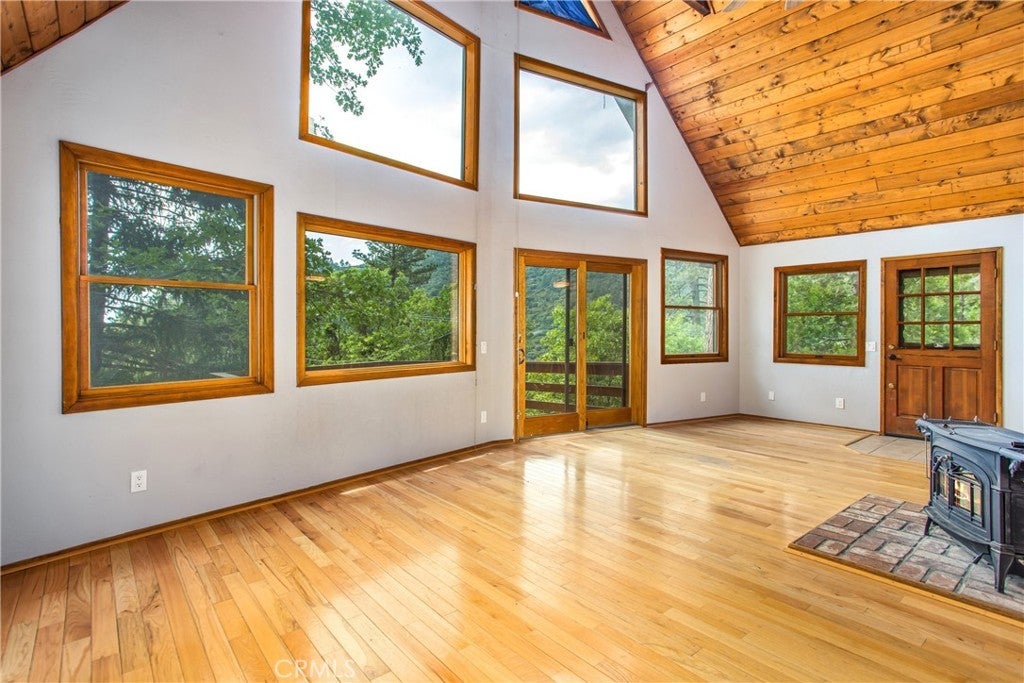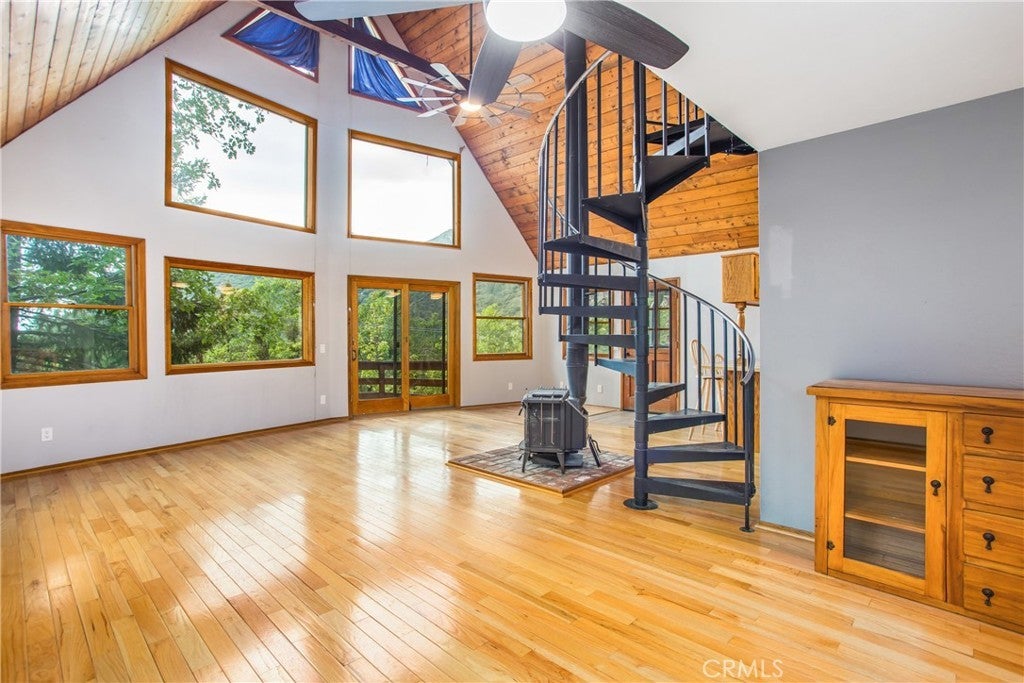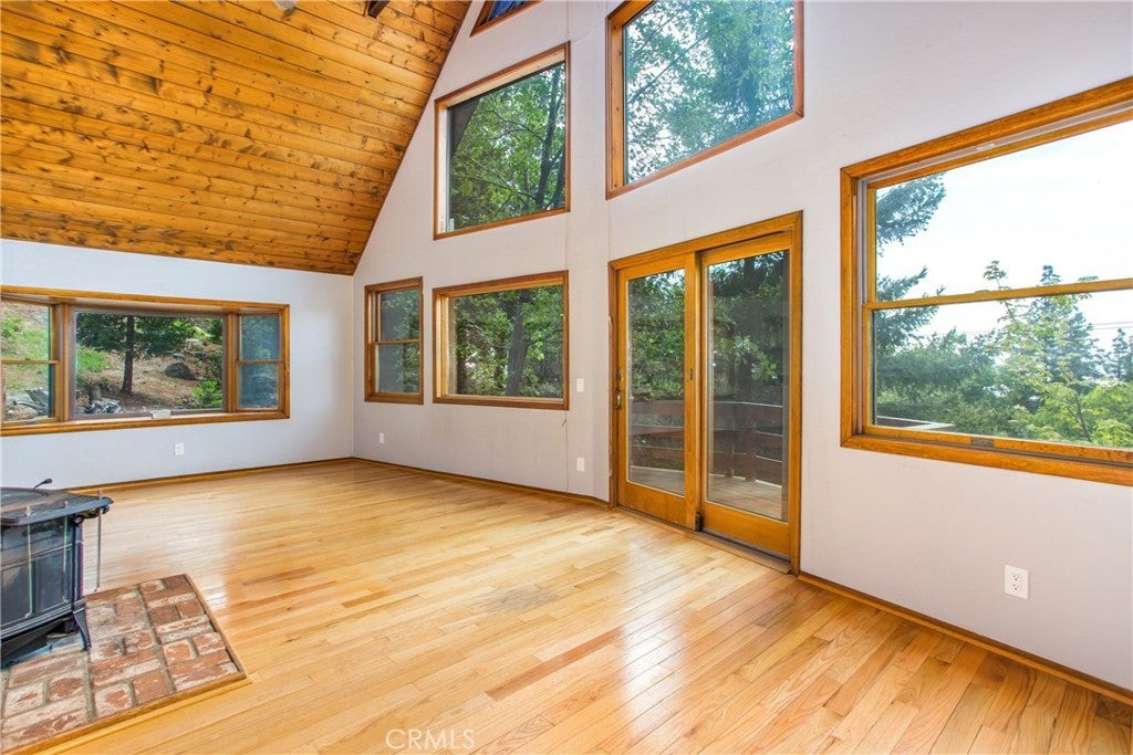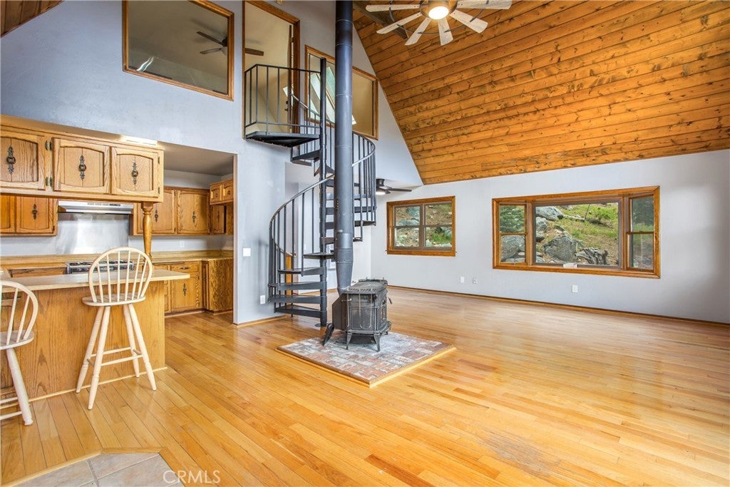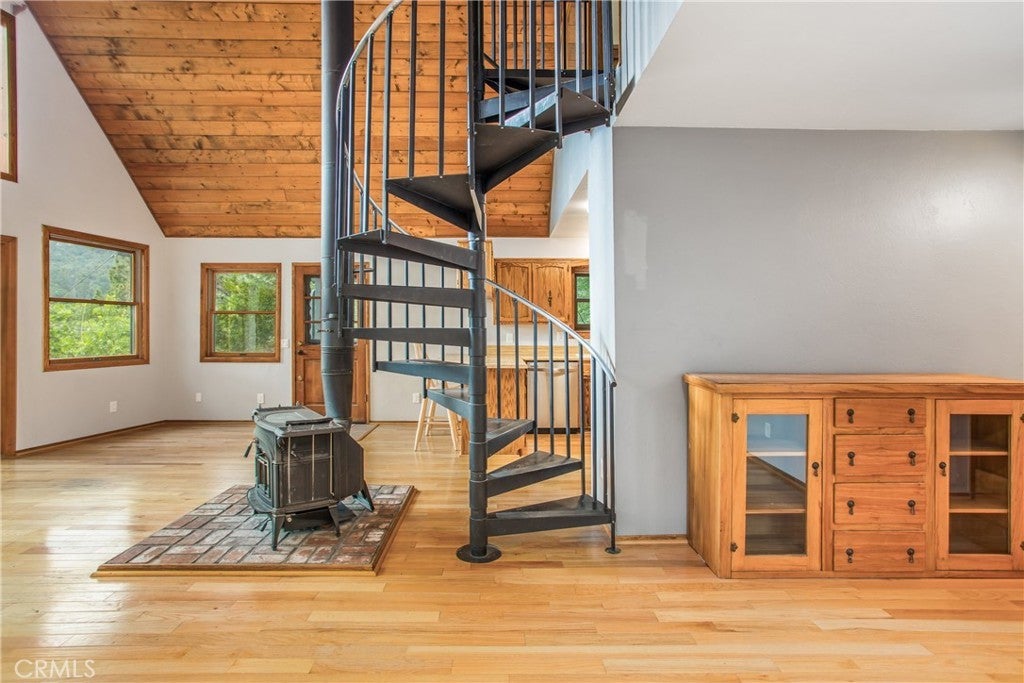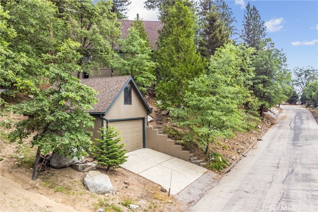 Welcome to your mountain retreat in Angelus Oaks! This beautiful home offers 3bed, 2bath, an open concept kitchen to a spacious living area, with a cozy wood burning stove & a window seat within the bay window in the living room, a newer wall heater unit, a balcony off the living area with stunning scenic views, lots of windows all around that offer natural light, 360 views through the guest bedroom bay windows, indoor laundry room, a stunning spiral staircase that leads up to the primary bedroom/bathroom offers a jetted tub, separate shower & a sky light with MAGNIFICENT views, a spacious/finished attic area above the primary bedroom walk-in closet for extra storage. Detached 2 car garage, with an additional finished storage area above the garage, plus an unfinished build-up area with ample space for you to use however you'd like. This property spans two expansive lots with a large fenced in area. This is a unique opportunity for either a peaceful primary residence, a vacation home, or potential investment property nestled in a serene Angelus Oaks community on a cul-de-sac road. This property is within minutes of the country store, gas station & restaurant & within 20 minutes of Jenks lake! Come check out this great opportunity & check out the 3D Tour ;)