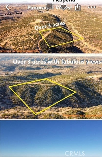 Priced to sell! 3.12 acres of raw land. Seller is motivated. Offers serene rural surroundings, scenic mountain and valley views, and direct road access. With panoramic mountain views near Summit Valley Road. Perfect for remote build, investment and possible equestrian use. Hesperia is just a few miles away and Silverwood Lake with boating and water activities is also nearby.