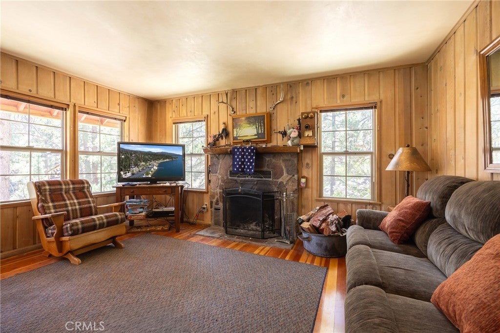 Enchanting Government Lease Cabin filled with great Memories and ready to be passed on to new owners. 180 degrees of lake and forest views. Located very close to Jackie and Shadow's infamous nest. This home boasts a collection of stonework which accents the walls of the patio, walkways and decking. Interior floors are all original wood. Interior walls are newer fresh drywall/ earthy colors and wainscoting with special ceiling fan soffits like no others that highlight the artistic workmanship of the property's contractor/caretaker of nearly 15 years. Entry level leads to 2 bedrooms and 3/4 bath, easy to drop off the luggage before going downstairs to living room and kitchen, 1/2 bath and storage room. A separate shed can hold all of the firewood for the winter season. Note the tankless water heater. Roof is approximately 5 years old, per the seller. If you are into rereational cabins, do not miss seeing this one. Furniture is negotiable except for the family heirlooms. Big Bear Trail is also known as PINE KONE LANE which is located across from the West Ramp Parking lot. Follow the road north to the fallen tree and veer to the right over the slight dip in the road. Continue to the security sign and make a right,You will see the for sale sign. Road is mostly paved.