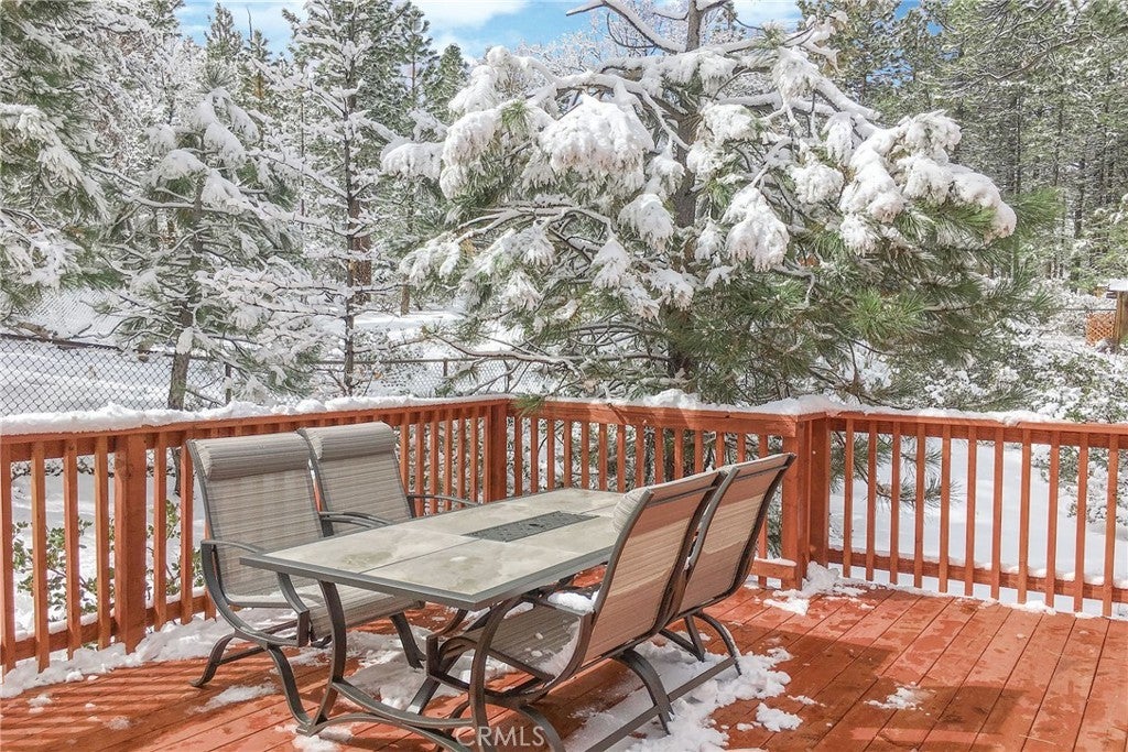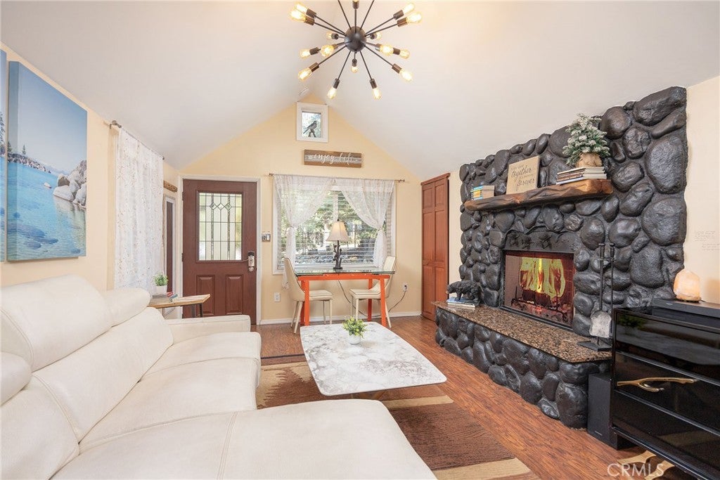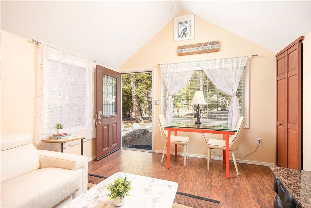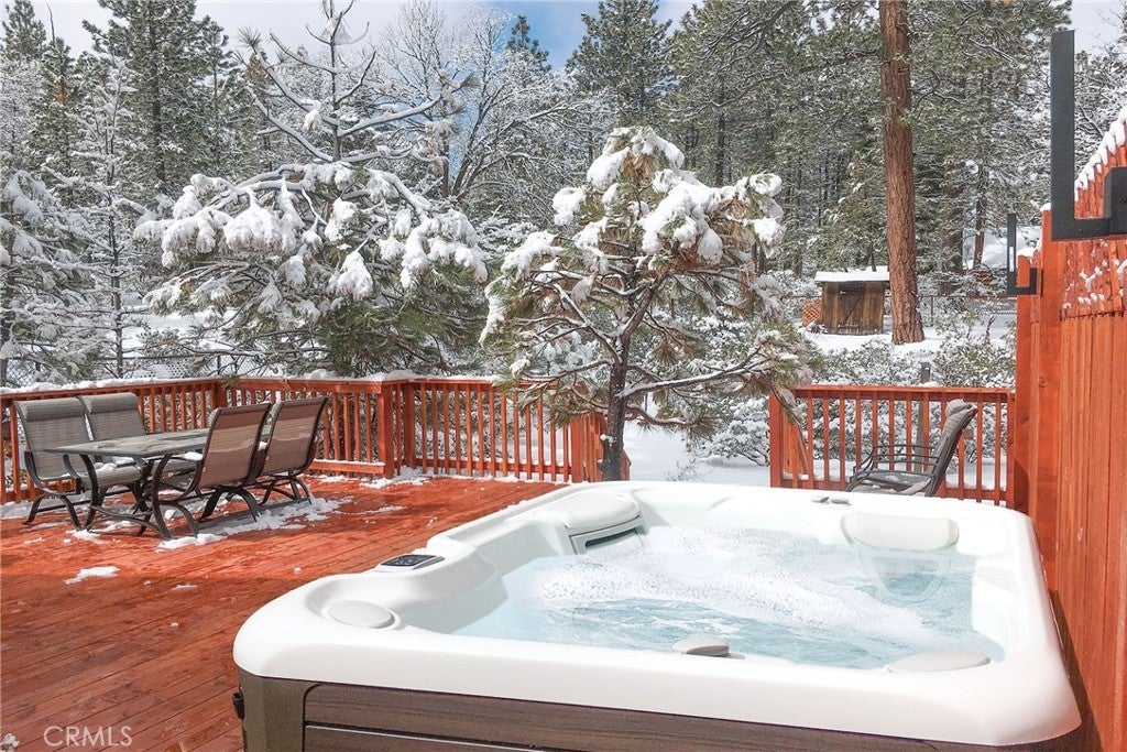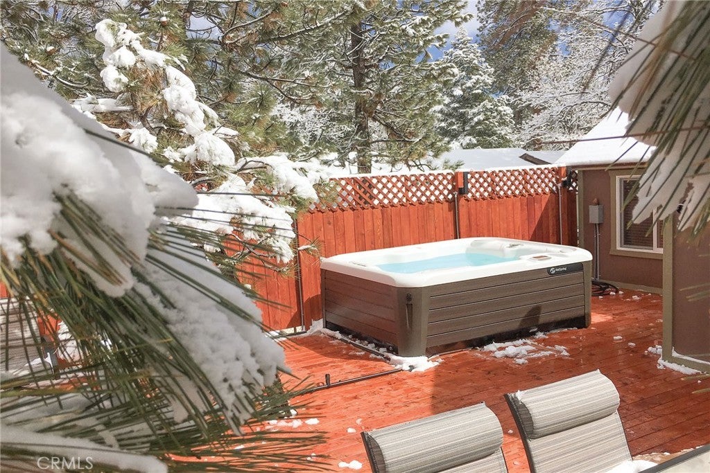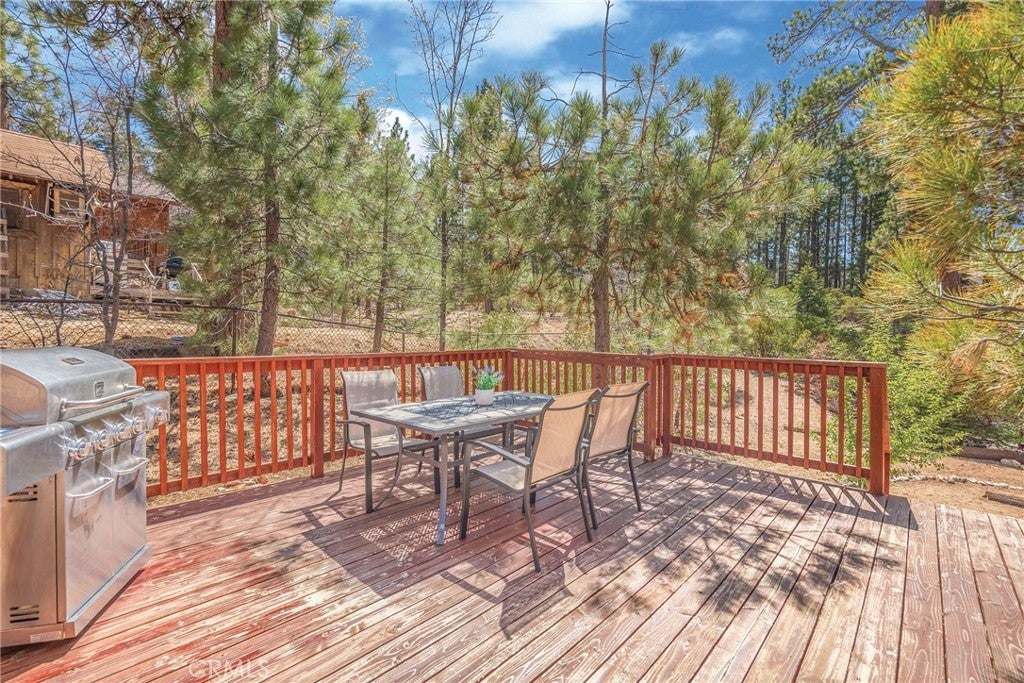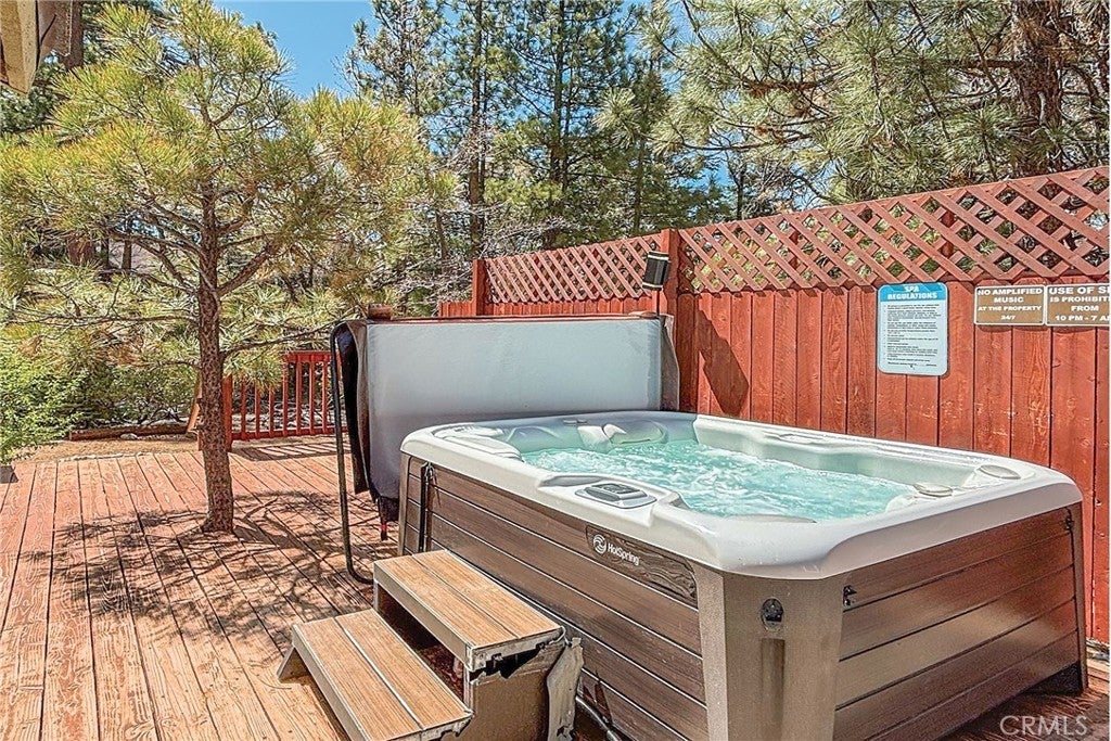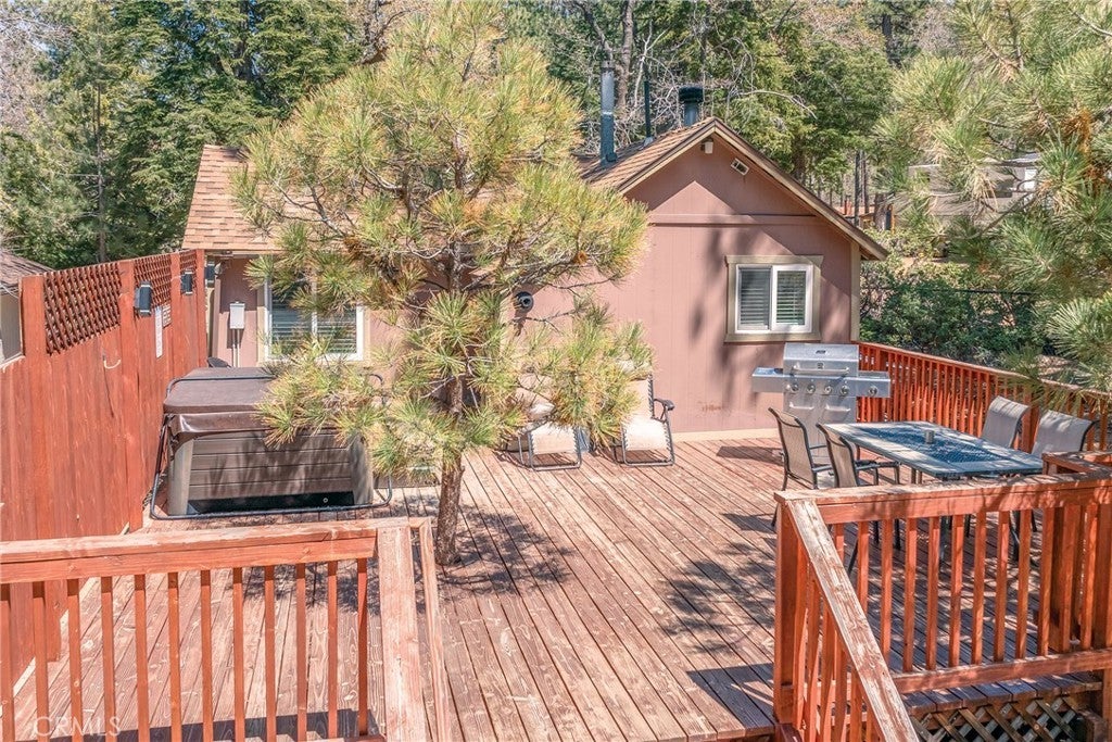 Welcome to your inviting mountain escape! Whether you're looking for a relaxing getaway or a high-performing investment opportunity, this beautifully updated 1-bedroom,1-bathroom cabin sits on a spectacular, fully-fenced 9,650 sq ft lot amid mature plants & trees delivering a sense of quiet beauty. With over $71,000 in gross revenue for 2024 and over $70,00 gross revenue for 2025, this owner-managed short-term rental has an impressive track record of success! Even better, the current owner is offering valuable mentorship during the transition, along with trusted contacts for cleaning, maintenance and insider knowledge to help you hit the ground running. Greeted with an open-concept living area where a stunning stone fireplace creates the ideal cozy centerpiece and soaring ceilings and abundant natural light add to the spacious, airy feel. The kitchen features modern updates including stainless steel appliances and has a seamless flow into the living space—great for whipping up a meal or relaxing after a day of adventure. Enjoy your morning coffee on the inviting composite front deck, surrounded by the natural beauty of pine, manzanita and flowering lilac plants that grace the front yard with color and charm. The generously sized bedroom boasts high ceilings, a pretty wood accent wall and plenty of light, while the bathroom offers a luxurious, spa-like experience with a custom-tiled shower and modern vanity. A tankless water heater and inside washer/dryer provide added convenience for guests and owners alike. Outside, enjoy the expansive fenced backyard with a large rear deck, relaxing spa, BBQ, and outdoor dining area—great for time spent gathering with friends, letting the pets roam and soaking in the mountain serenity this fantastic location delivers. Situated in a peaceful treed location just minutes from local mountain resorts, the National Forest, Big Bear Lake and the Village’s vibrant shops, restaurants and entertainment. Whether you’re a first-time investor or seasoned host, this turnkey property is your opportunity to own a piece of Big Bear’s magic—with the tools & resources for continued success as a thriving short term rental!