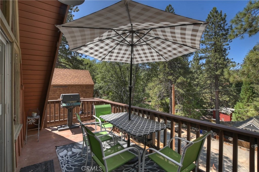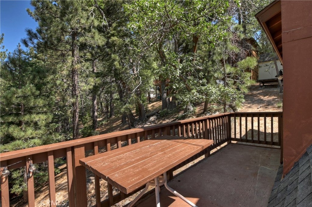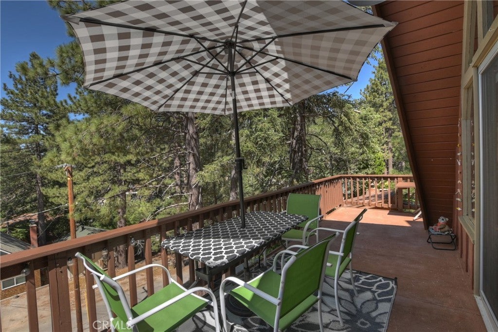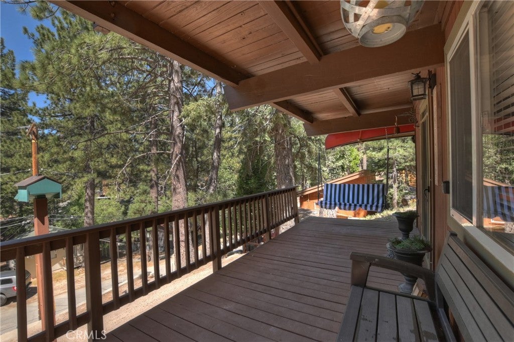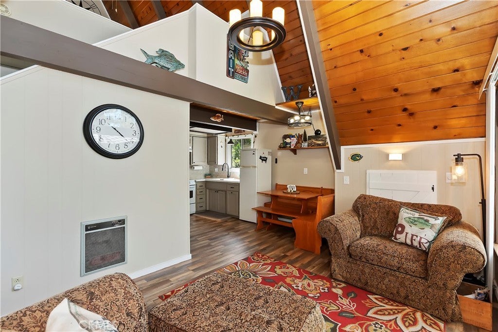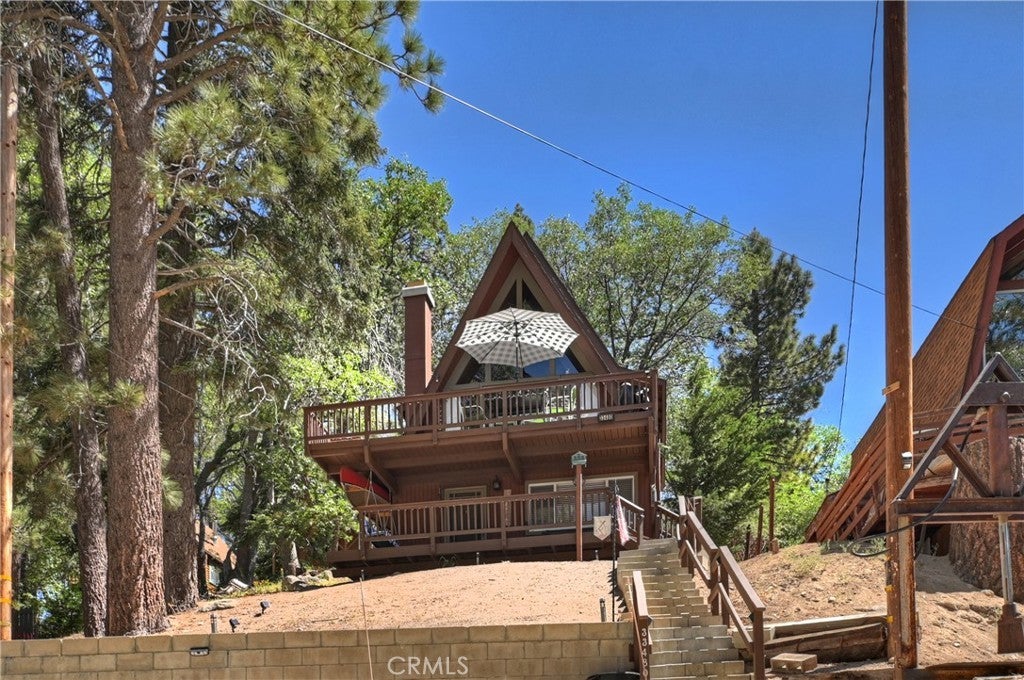 Come join the quiet, peaceful community of Green Valley Lake. Own your own piece of the mountain wilderness in this updated 2 bedroom 1 bath cabin. Enter into the cozy family room with comfortable sofas, a pellet stove and flat screen TV to enjoy an afternoon movie or games with the family. Upstairs is another space for enjoying the view of surrounding trees and access to the attached deck. This sitting area adjoins the open kitchen with a built-in corner booth for enjoying meals. The primary bedroom and bath are also off of the kitchen area. Upstairs is another loft bedroom for family or friends that stay over. Parking for 3 cars. Comes fully furnished per seller inventory. A great space at a great price. Don't miss it!