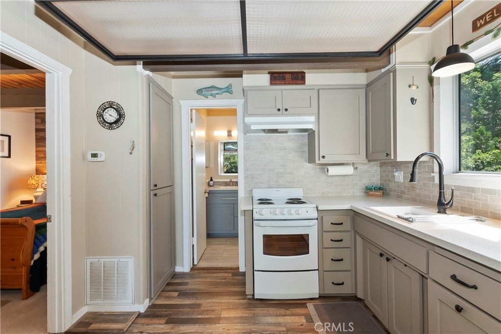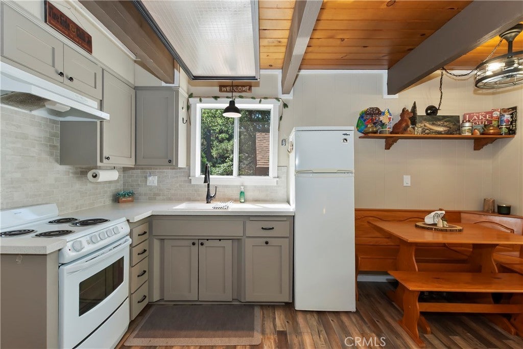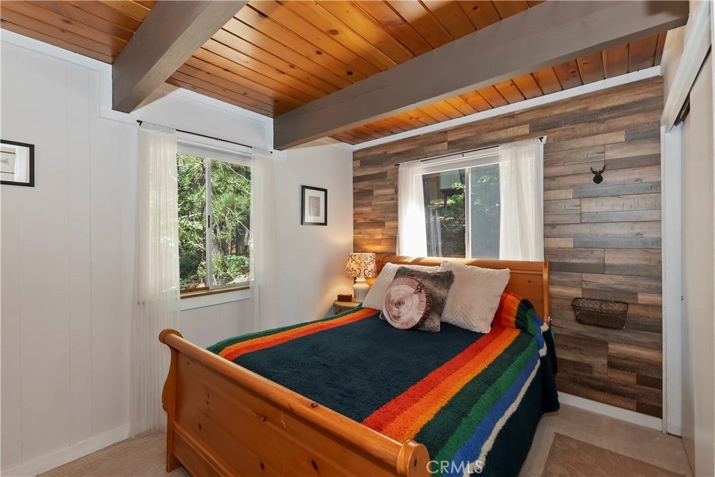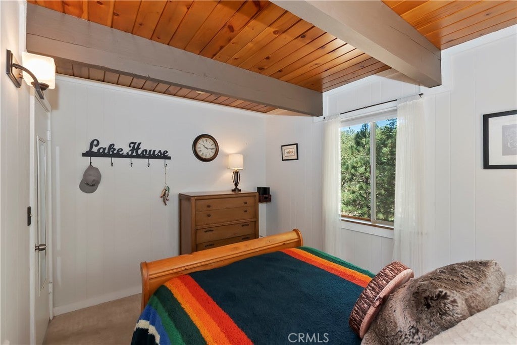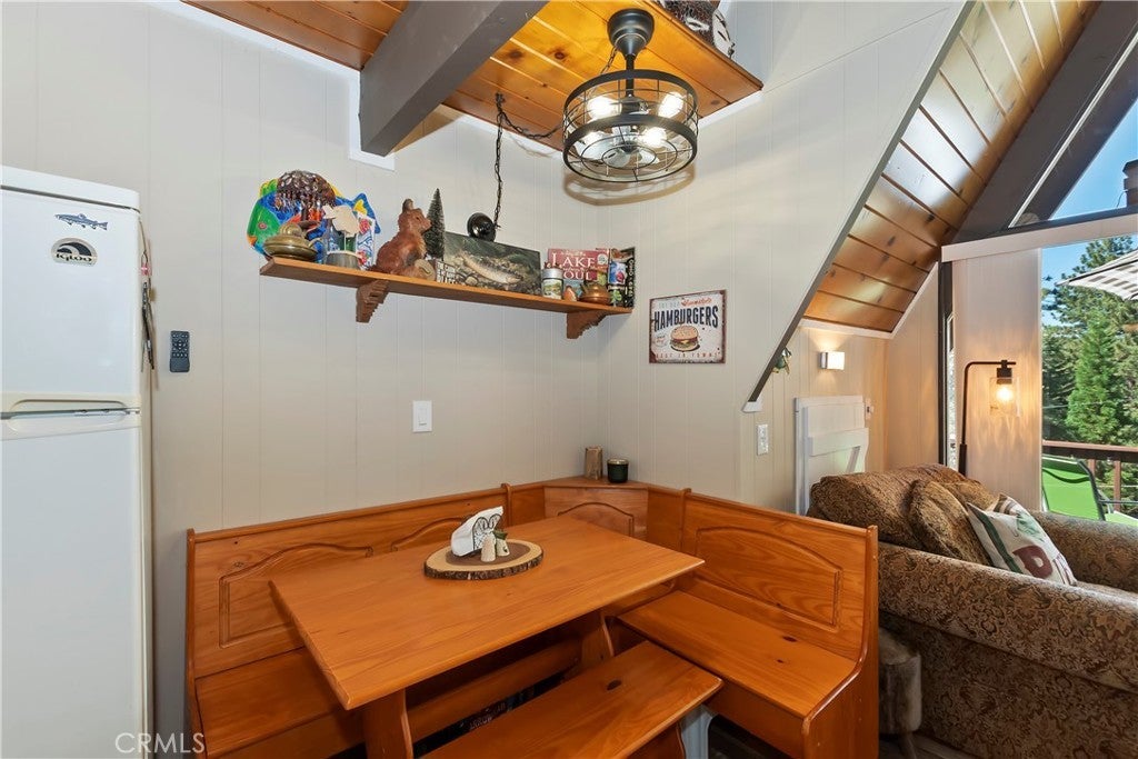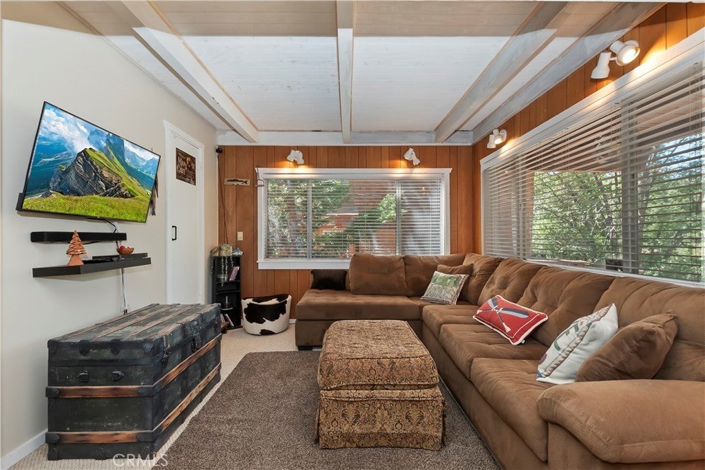 Come join the quiet, peaceful community of Green Valley Lake. Own your own piece of the mountain wilderness in this updated 2 bedroom 1 bath cabin. Enter into the cozy family room with comfortable sofas, a pellet stove and flat screen TV to enjoy an afternoon movie or games with the family. Upstairs is another space for enjoying the view of surrounding trees and access to the attached deck. This sitting area adjoins the open kitchen with a built-in corner booth for enjoying meals. The primary bedroom and bath are also off of the kitchen area. Upstairs is another loft bedroom for family or friends that stay over. Parking for 3 cars. Comes fully furnished per seller inventory. A great space at a great price. Don't miss it!
