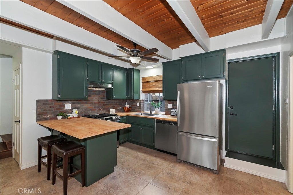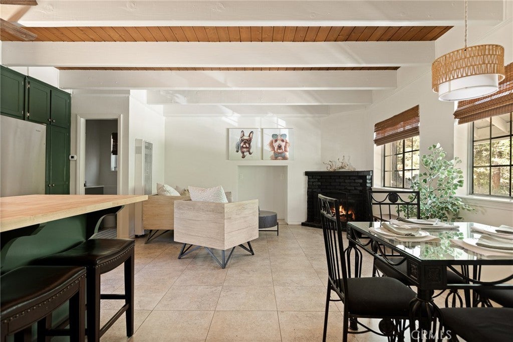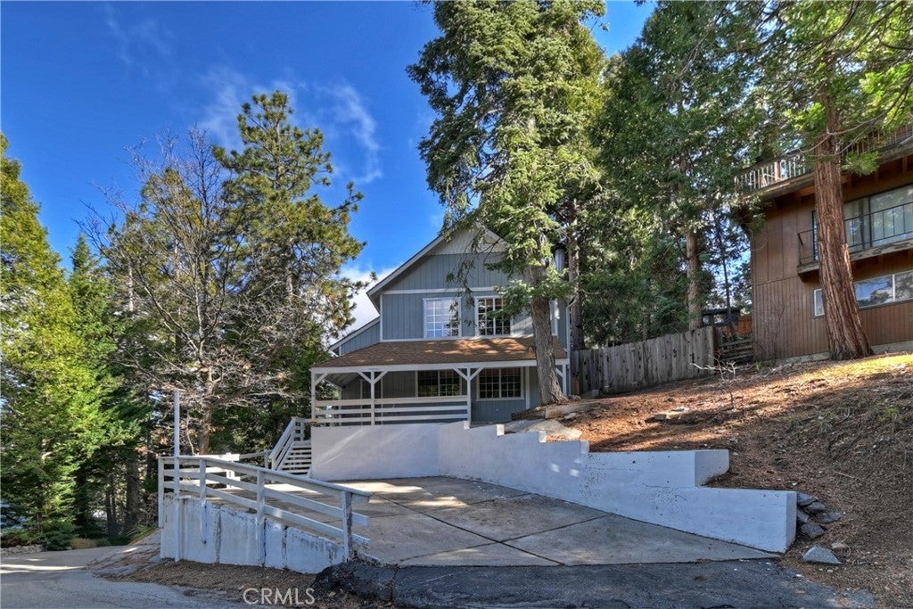 This is the CUTEST CABIN EVER!!!! YOU WILL LOVE the Just Remodeled Kitchen with Forest Green Cabinetry, Brick Backsplash and Butcher Block Countertops! Breakfast Bar and Separate Dining Area too! So Cute!!! Stylish Living Room and Dining with Beamed Ceilings and Cozy Corner Fireplace! Upstairs are 2 Bedrooms with Oversized Closets and a Full Bath! Laundry Hookups in Hallway Closet for Convenience! Some Newer Windows, Brand New Heaters and all New Luxury Vinyl Planking on the Stairs, Bedrooms and Bath Upstairs! Bathrooms Got a Redo too with New Vanities, Faucets, Toilets, Lighting, & Mirrors! Nice Long EASY Driveway Can Hold 3+ Cars... the Adorable Covered Porch to Sit Outside on & Enjoy the Fresh Mountain Air is AMAZING!!! There is a Fenced BackYard too with Awesome Covered Shed for Storage! 5 Minute Drive to Blue Jay and 10 To Lake Arrowhead or Crestline! DIRECT ACCESS TO BACKYARD NOW!!