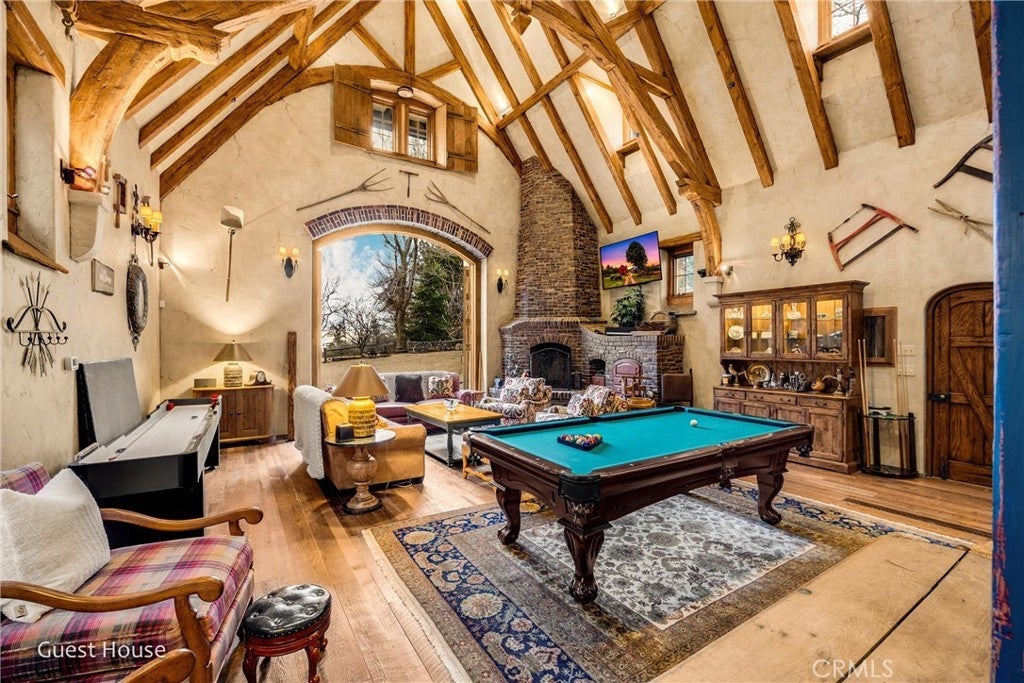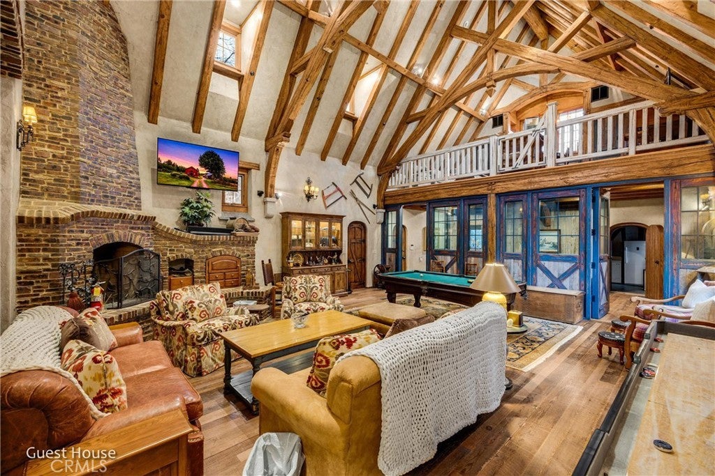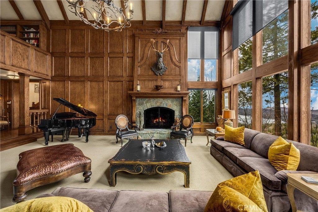 The Epitome of Elegance, Class, and Style! Cedar Ridge Masterpiece at the Lake! Perched atop the highest point of the exclusive, gated Cedar Ridge Estates, this grand estate is the ultimate private and secluded compound—featuring both a main residence and a guest home with professional recording studio capabilities. Boasting breathtaking lake views and located just minutes from your own single-slip dock, this is the pinnacle of luxury resort living. Expertly crafted by renowned builder Ron Dolman, this masterpiece showcases a level of detail and character rarely seen. Spanning approximately 18.5 acres across three separate parcels, the property offers exceptional potential for future investment or development. The main residence encompasses approximately 7,488 square feet of refined living space, including five en-suite bedrooms and a whimsical, storybook-style children’s bunk room. In total, the estate offers seven full and three-quarter bathrooms. Step into the grand, five-star great room featuring soaring ceilings, a dramatic floor-to-ceiling fireplace, and walls of glass that frame sweeping views of the forest and lake. The spacious formal dining room flows seamlessly into the open gourmet kitchen, outfitted with top-of-the-line appliances. A warm, wood-accented den with a stunning stone fireplace and wet bar provides an inviting space for intimate gatherings. Also on the main level, discover a gentleman’s office with exquisite millwork and another commanding fireplace. For weekend relaxation, enjoy the dedicated poker room, sauna, or private gym. Granite pathways wind through the property, leading to the separate 3,000 sq. ft. guest house—complete with barn doors that open to a large outdoor staging area perfect for entertaining under the stars. The guest home features a kitchenette, wine cellar, game room, and a sound room ideal for music or media production. Additional amenities include the seller’s private single-slip dock in gated Orchard Bay available for $500K, and a like-new tri-toon boat Neg. Professionally curated furnishings and accessories are available for negotiation. This estate is truly one-of-a-kind, with an unmatched level of craftsmanship, setting, and opportunity. You’ll never experience another home quite like this.