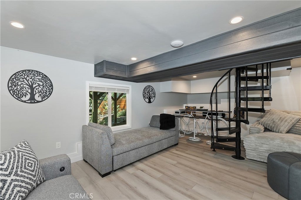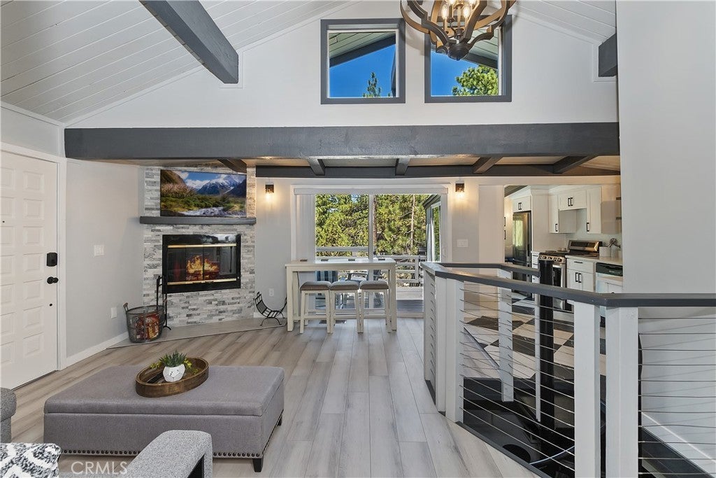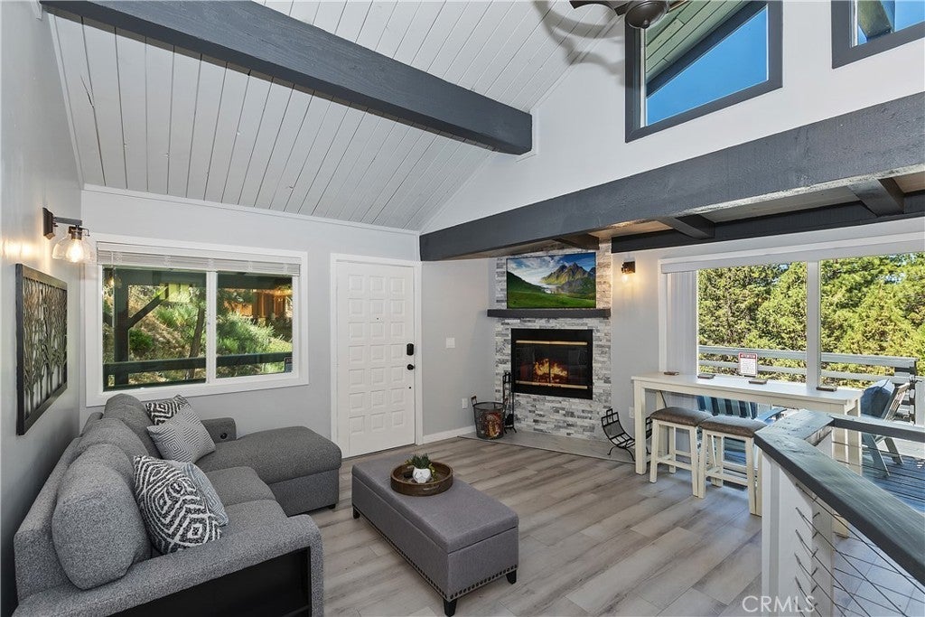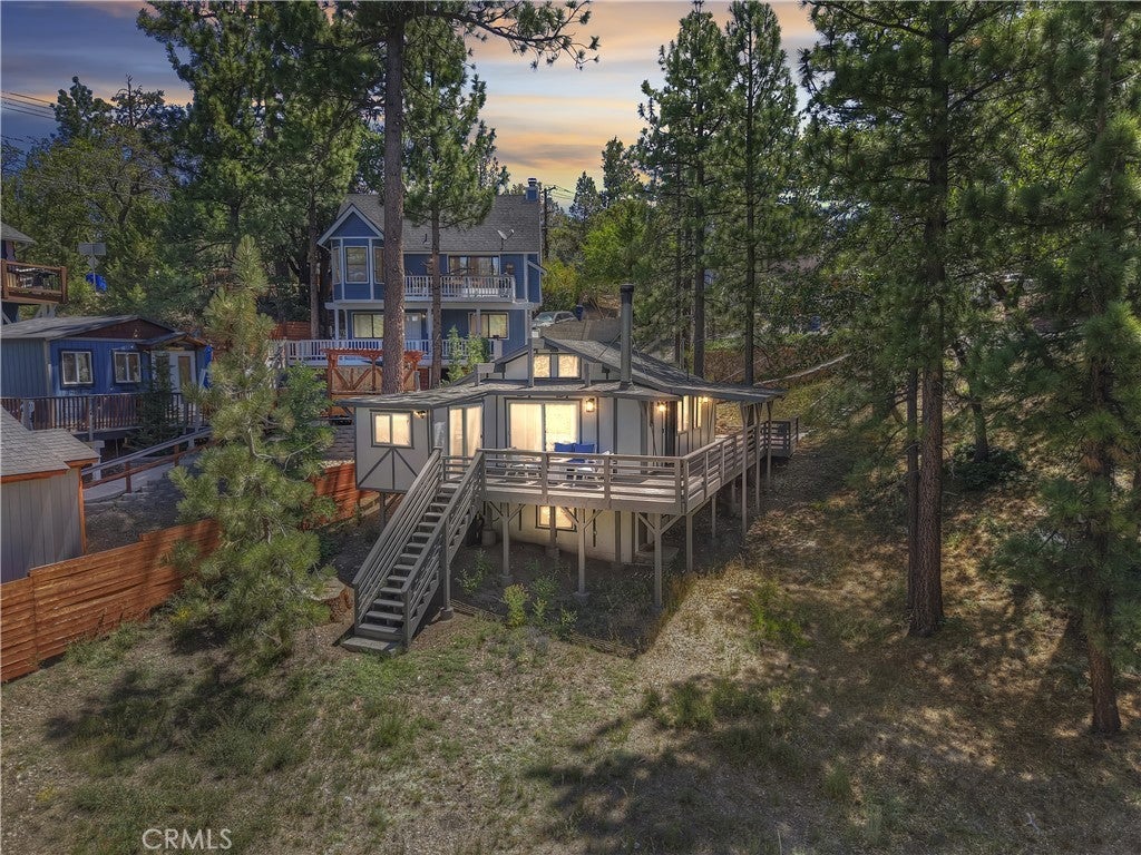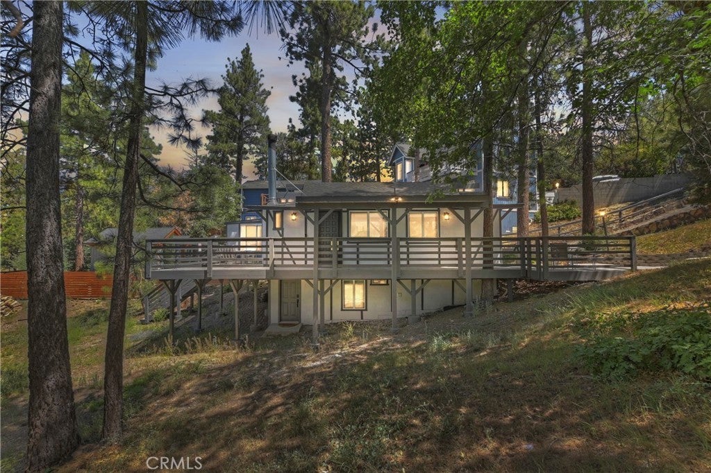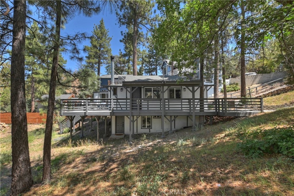 Welcome to your beautifully remodeled mountain getaway, ideally located in the heart of Lower Moonridge ~ One of Big Bear’s most sought-after neighborhoods ~ Nestled on a generous, treed lot, this inviting home offers the perfect blend of modern upgrades, rustic charm, and unbeatable proximity to year-round adventure ~ Step inside and experience a thoughtfully renovated interior where style meets comfort ~ From the updated flooring to the sleek finishes, every inch of this home has been carefully designed for both full-time living and vacation enjoyment ~ Enjoy morning coffee or evening gatherings on the expansive wraparound deck that invites you to soak in the fresh alpine air, surrounded by towering pines ~ The spacious lot offers ample parking perfect for friends, family, or future rental guests ~ Offering two cozy bedrooms plus a versatile bonus room, which could be used as a home office, a third sleeping area, or the game room of your dreams ~ Whether you’re seeking a peaceful personal retreat or a savvy investment opportunity, this flexible layout adapts to your lifestyle ~ Located just minutes from Bear Mountain Ski and Snowboard Resorts, the Alpine Zoo, and Big Bear’s 9-hole golf course, adventure is always just around the corner ~ With year-round activities at your fingertips this is mountain living at its finest ~ Don’t miss your chance to own a piece of Big Bear paradise, this turnkey gem is ready to enjoy from day one ~ Come experience the magic of Moonridge, your mountain dream starts here.