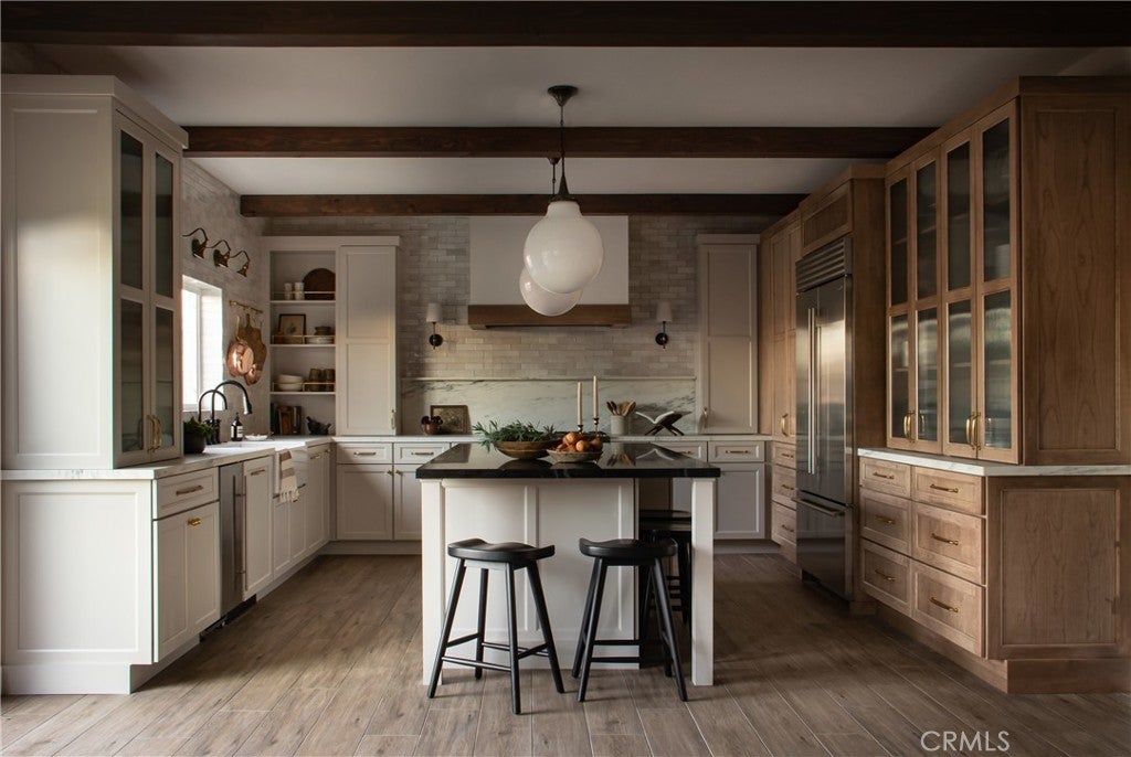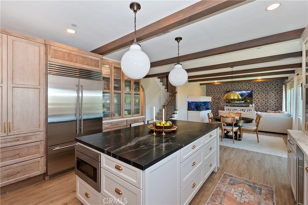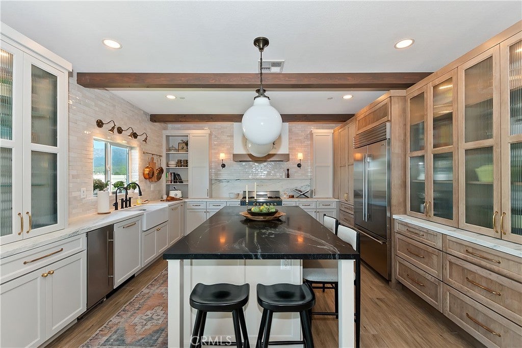 REDUCED!!! Come see what sets this home apart. The great room includes a custom archway, exposed beams, and expansive windows that fill the space with natural light, creating a warm, open feel, while wainscoting and a handcrafted stair railing add unique character. The kitchen, redesigned with Pepper and Olive Interiors, is the heart of the home. It features premium Medallion cabinets and a full suite of luxury appliances, including a Sub-Zero refrigerator, ILVE range, Scotsman pellet ice machine, and Miele dishwasher. Counter-to-ceiling Moroccan tile pairs with marble countertops and backsplash for a stunning visual effect. The expansive 8-foot granite island offers generous space to prep meals, serve drinks, and gather with friends and family, inviting conversation while you entertain. At the far end, a hidden bar with mosaic tile and pocket doors adds elegant, tucked-away storage that blends seamlessly into the cabinetry. The home includes a private Additional Dwelling Unit (ADU) with its own front and backyard access. Complete with a bedroom, bath, living area, kitchenette, and laundry hook-ups, it's ideal for guests, multigenerational living, or potential rental income. Outside, the low-maintenance backyard surrounds a custom-designed elevated patio made of pavers alongside a three-tiered fountain. Perched just above the Morongo Golf Club at Tukwet Canyon, enjoy sunrise to sunset 180-degree mountain views and take in the lush greenery of the valley below. HOA amenities include high-speed internet, a community gym, swimming pools, and neighborhood parks. Conveniently located near schools and everyday shopping.