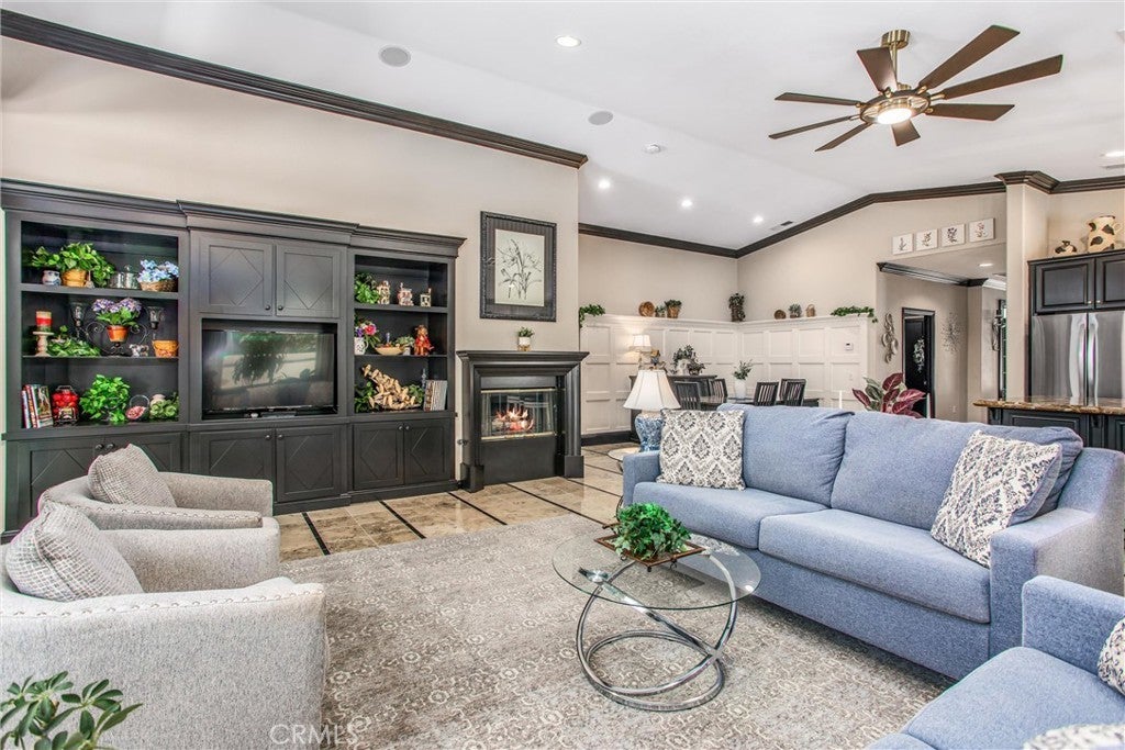 Stunning Former Heritage III Model Home – Steps from the Four Seasons Lodge! Beautifully upgraded former model home located a short walk from the Four Seasons Lodge clubhouse. This bright, open floor plan with vaulted ceilings has too many builder upgrades to list. Some features are: frosted glass door with sidelights, limestone flooring, extensive marble tile in primary bathroom, built-in entertainment center, 2 gas fireplaces, plantation shutters, crown molding, agate stone island counter top, glass kitchen cabinet doors, numerous pull out cabinet drawers (including entertainment center and primary bath), surround sound speaker system (including ceiling speakers in bedrooms), mirrored bedroom closet doors and epoxy garage floor. Updated kitchen items include: LG appliances, quartz perimeter counter and backsplash, granite sink, Delta touch faucet, garbage disposal. The ENTIRE interior and exterior of the home has been recently repainted. Some of the items replaced within the past 24 months are: new laminate wood flooring in both bedrooms and den, high efficiency A/C condensing unit and gas furnace, garage hot water tank, both bathroom toilets, 3 bathroom sink faucets. Also, the laundry room has a new sink and faucet. All lights (including ceiling cans) have been replaced with LED or diode LED fixtures. Within the last year the front and back yards have been professionally landscaped. The ENTIRE drip irrigation system has been replaced new: timer, valves, piping, emitters and backflow preventor (PBV valve). Marvel at your backyard fruit trees, colorful shrubs, plants and flowers from the alumawood covered stamped concrete patio. Four Seasons residents enjoy 3 beautiful clubhouses each with state of art fitness centers and 3 heated swimming pools (one is indoor) and 3 inground spas. The main Lodge facility includes: a grand ballroom, Bistro, 50 seat movie theater, library room, billiards room, game room, craft room, aerobics room and a full service beauty salon. Outdoor Lodge amenities include: a music amphitheater, 8 pickle ball courts, 2 paddle ball courts, 10 shuffleboard courts, 2 bocce ball courts, a basketball court and barbeque area. The Summit and Courts clubhouses also includes: 4 tennis courts, 9 hole putting green, 2 bocce ball courts and horse shoe pits. Four Seasons also features a dog park and 6 miles of walking trails. DON'T MISS THIS ULTIMATE TURNKEY PROPERTY.