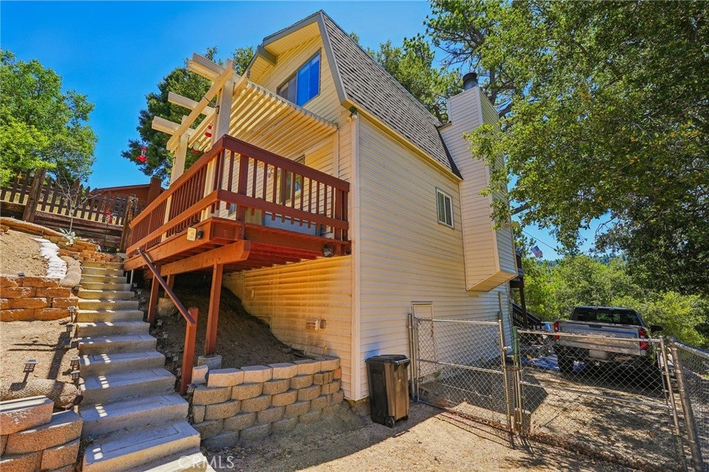 Welcome to 463 Delle Dr in Crestline—a mountain home with the perfect balance of comfort, charm, and real-life usability. Just minutes from Lake Gregory, this 2-bedroom, 1.5-bath property features an open-concept living area with tongue-and-groove wood ceilings, a classic rock fireplace, and abundant natural light thanks to its sunny southern exposure. Step out onto the oversized entertaining deck and take in sweeping ridge and mountain views—ideal for hosting friends, morning coffee, or a quiet evening with a glass of something good. The fenced backyard offers a rare combo of space and versatility—plenty of room for gardening, lounging in a hammock, or letting the dog run free while you debate whether to build that studio or ADU someday. Whether you're working remotely surrounded by trees, or escaping the city for weekend getaways, this home makes it easy to unwind and stay connected. Located in a peaceful, wooded setting, the home also puts you just a short drive from Crestline’s town center shops in one direction, and the award-winning Sycamore Ranch Vineyard & Winery in the other. A recently expanded driveway provides generous, mostly level parking, and the home’s low-maintenance exterior, washer/dryer hookups, and tile countertops make everyday life refreshingly simple. Full-time residence, creative retreat, or weekend basecamp—463 Delle Dr fits the lifestyle you’ve actually been looking for.