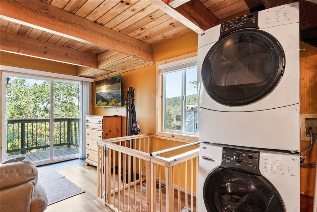 Ceiling Fan(s), Living Room Deck Attached, Stone Counters, Beamed Ceilings