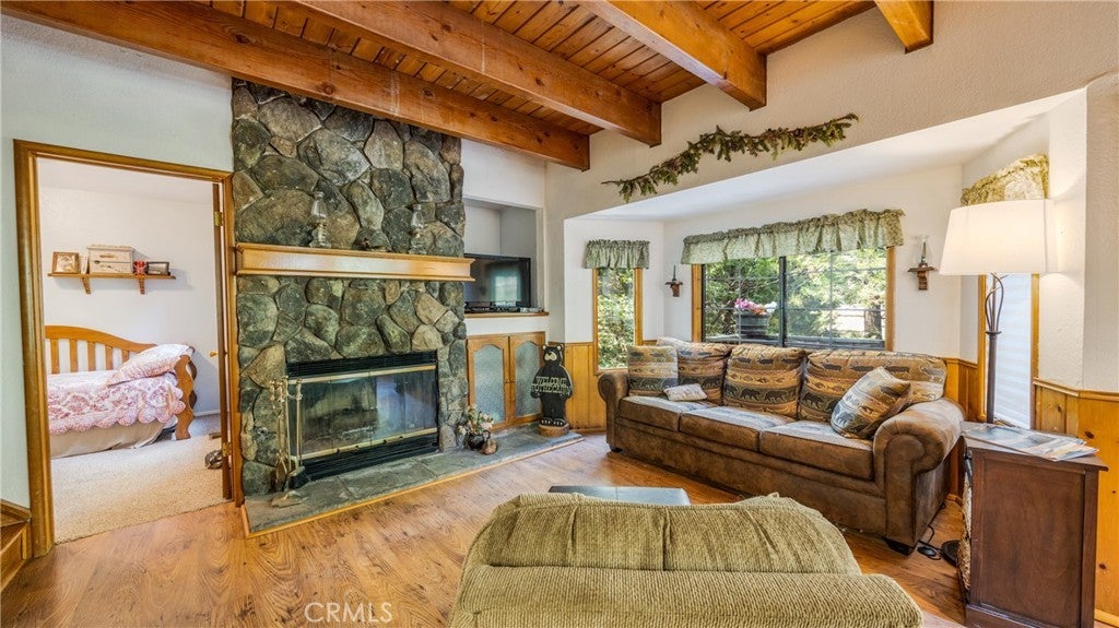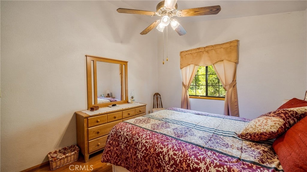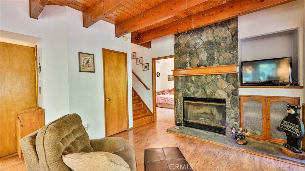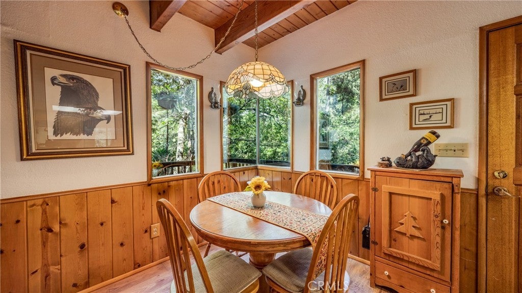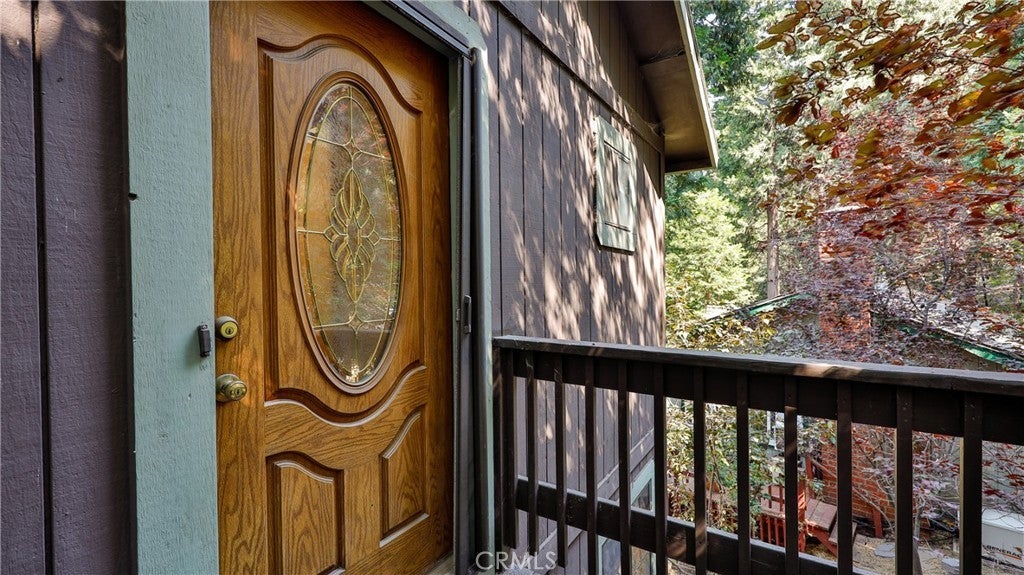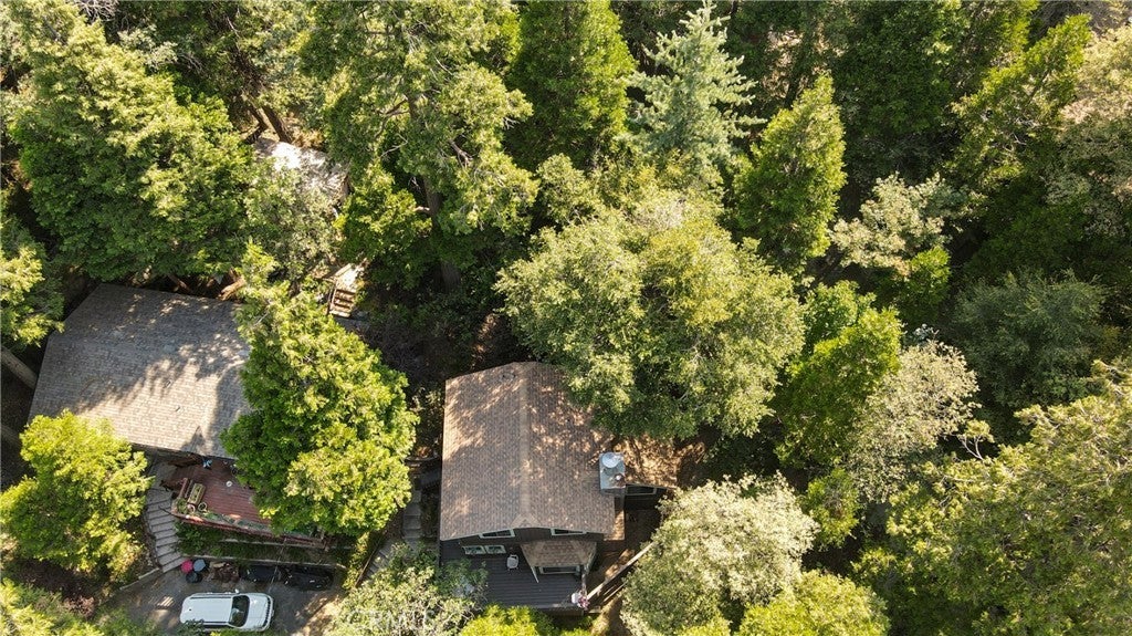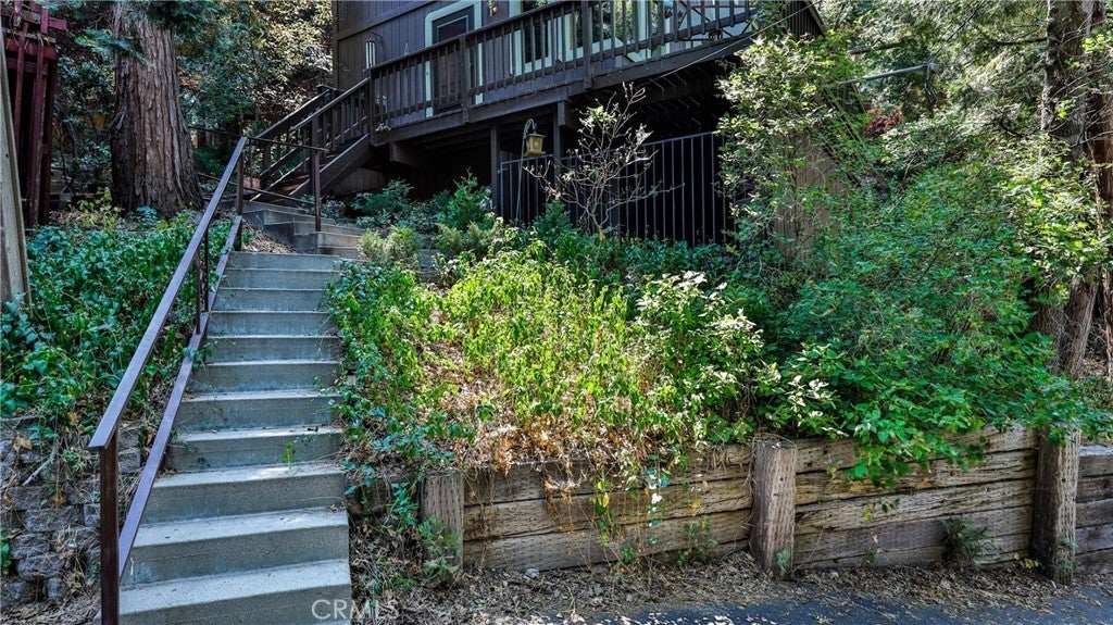 If you're seeking that perfect treehouse feel, this Cozy Cabin is an excellent match. Upon arrival, you'll drive up a gently sloped driveway that leads to a well-built set of cement stairs, offering easy access to this charming 3-bedroom, 1.5-bath property. The main level features a functional kitchen with ample cabinetry and plenty of prep space, making it a great fit for everyday cooking or weekend entertaining. Adjacent to the kitchen, the dining area includes a large set of windows that offer stunning views of the surrounding trees. The living room boasts open-beamed wood ceilings and a cozy fireplace, perfect for enjoying those colder winter evenings. Also on this level is a small bedroom, providing added convenience and flexibility. Head upstairs via a wide, solid wood staircase to find two additional bedrooms and a full bathroom, with one of the bedrooms offering direct access to the bath. Step out the back door to a spacious deck that overlooks a terraced yard. The outdoor area includes a horseshoe pit and a fenced section, perfect for pets.