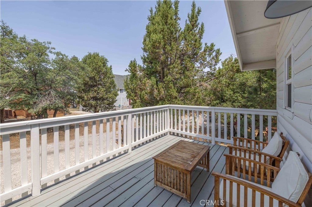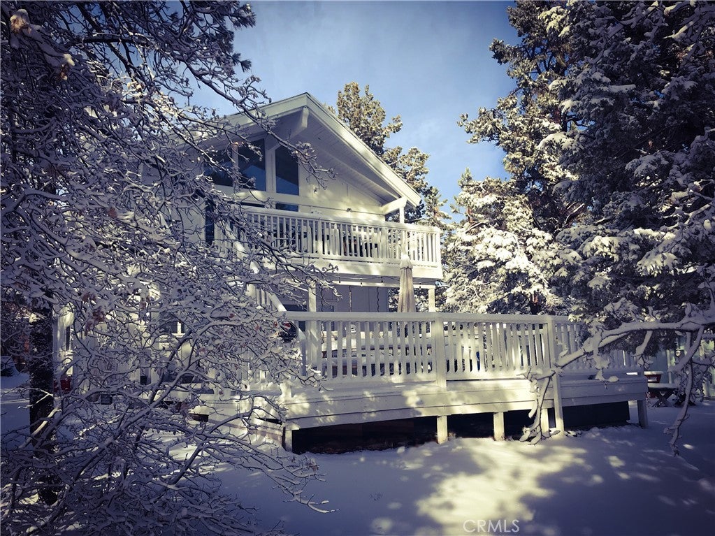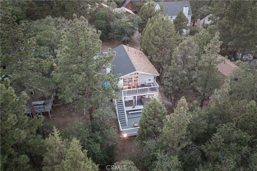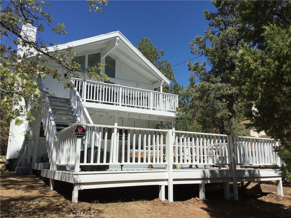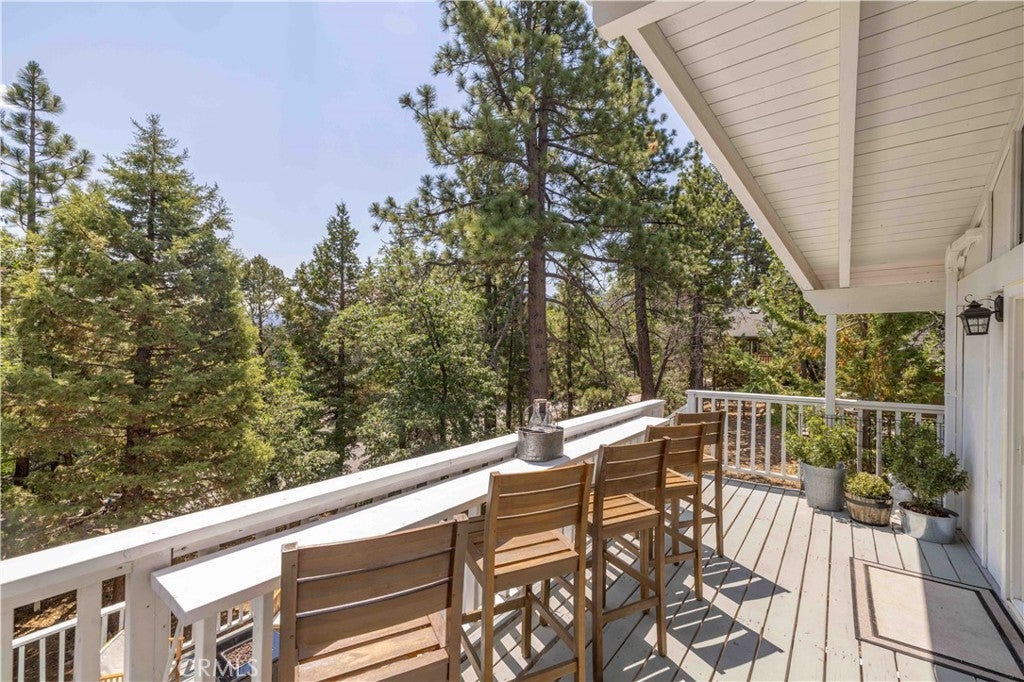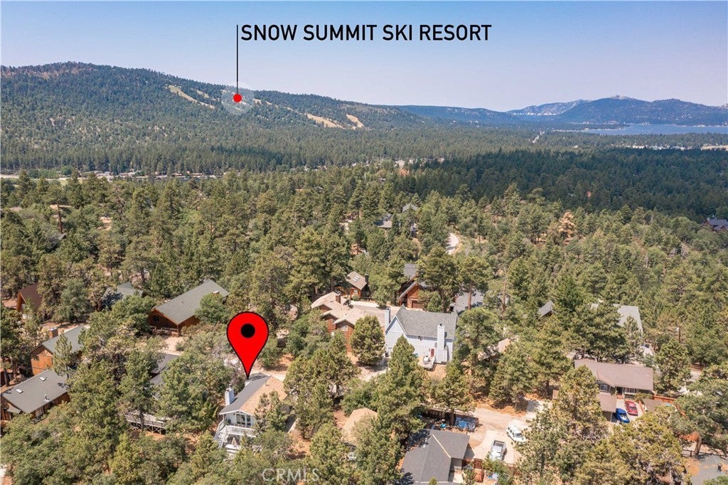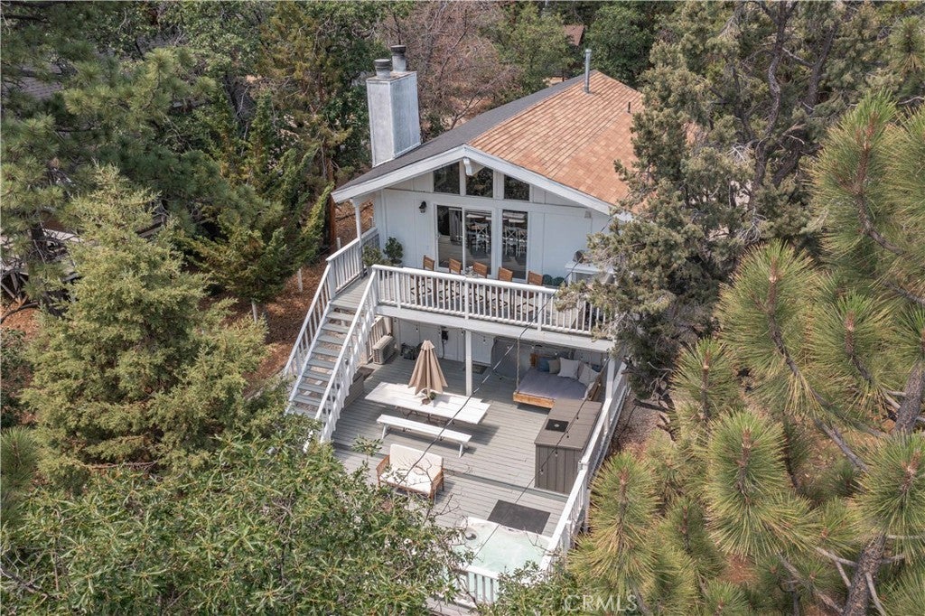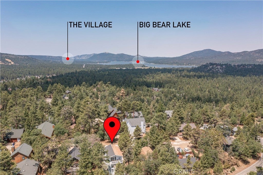 This bright and airy Moonridge home is perched above Big Bear in a quiet, well-treed neighborhood. The tasteful decor and neutral color palette provide a serene air of tranquility to this mountain getaway. The main floor of this reverse floorplan home is wide-open, with vaulted ceilings, dark wood floors, stone fireplace, mini-split air conditioner, fully-appointed kitchen, and lots of space for dining and entertaining and taking in the views from the two decks off each side of the home at this level. Downstairs, three cozy bedrooms, two full baths, heated laminate floors, and access to the large first floor deck with sunken spa provide easy access to comfort, outdoor dining, and social spaces. This home has been operated as a vacation rental, and is outfitted for groups and families, but would also make a great full-time residence or part-time home. This property is located near the Bear Mountain side of the resort, and just a short drive to dining, activities, events, as well as the Lake and Village.