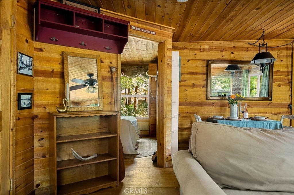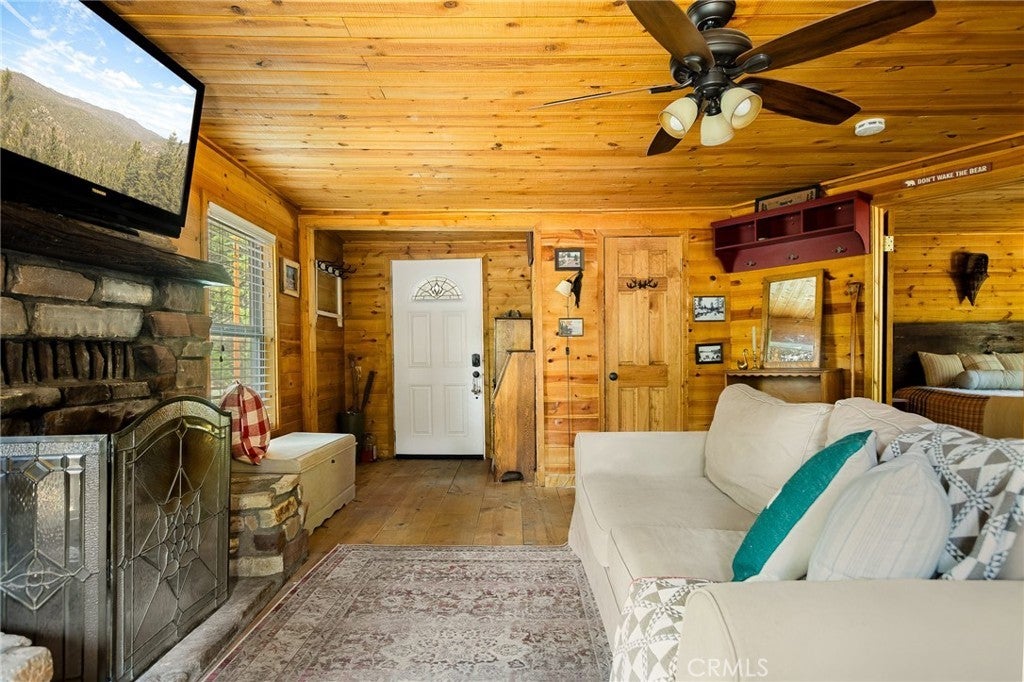 Just a stones throw from Green Valley Lake and local shops, this storybook cabin has not only stood the test of time—it’s emerged stronger, cozier, and more charming than ever. Lovingly reimagined, with upgraded plumbing and electrical, newer kitchen, bathroom and exterior paint plus warm tongue-and-groove woodwork from floor to ceiling. In 2023, this magical cabin received a brand-new roof and a powerful whole-house generator (available at an additional cost), ensuring it stays comfortable no matter what weather drifts in. The original stone fireplace anchors the living room with timeless charm and a crackling welcome. Double-paned windows, a tankless water heater, and inside washer/dryer setup add comfort and practicality, while the upgraded panel is ready to power future dreams: EV charger? Hot tub? You're ready! Out front, there’s a hidden gem: a fully insulated shed perfect for guests, storage or creative projects. Beneath the deck, keep your kayaks and snow gear out of the way for the off-season, but always within reach. Located on a peaceful street beside a vacant double lot (with a friendly potential seller!), this cabin is 100% move-in ready—just waiting for the next chapter in it's mountain tale.