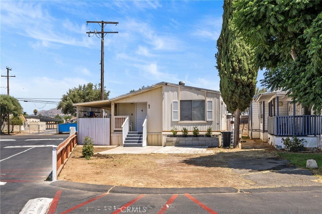 Charming 2-Bed, 1-Bath Manufactured Home on Corner Lot – Move-In Ready! Welcome to this beautifully maintained 2-bedroom, 1-bathroom manufactured home located in a well-kept, all age, park community. This spacious home features new flooring throughout, a new roof installed in 2024, and fresh interior paint, reflecting true pride of ownership. Enjoy the covered side patio—with private washer and dryer hookups for added convenience and extra storage. Situated on a large corner lot, the property boasts a fenced yard, offering both privacy and extra space for gardening, storage, or pets. Additional community amenities include a sparkling pool and an on-site laundry room. With its modern upgrades and prime location within the park, this home is a fantastic opportunity you won’t want to miss!