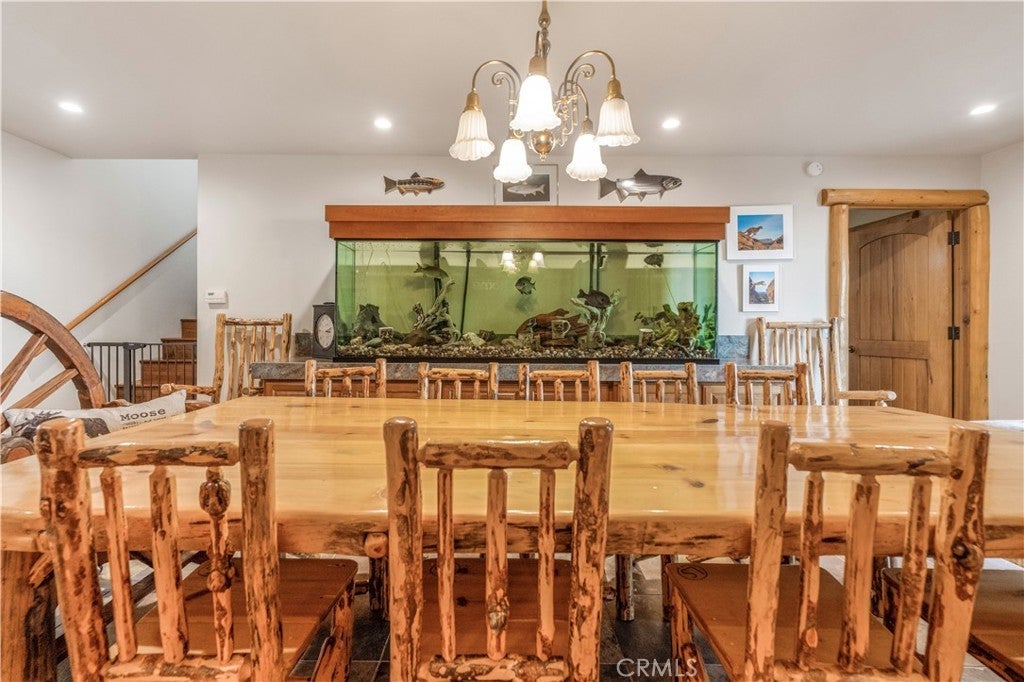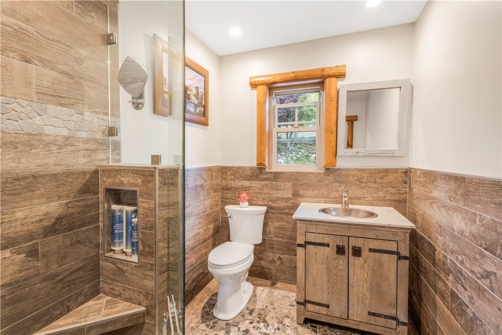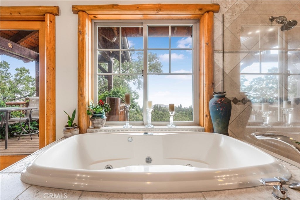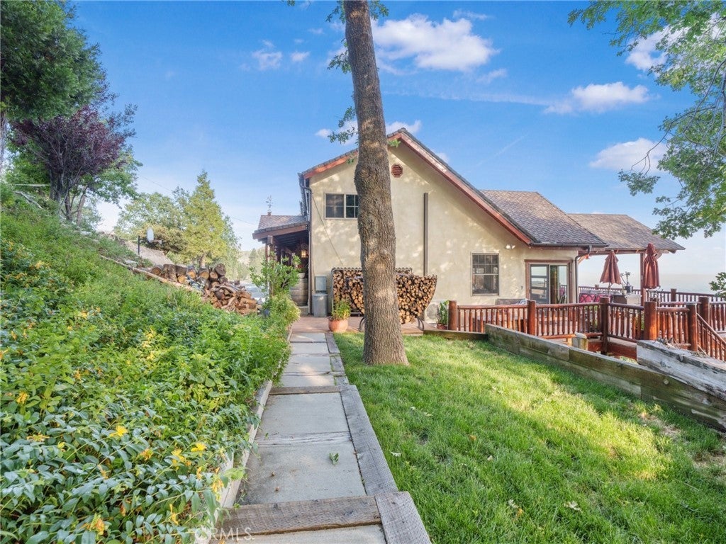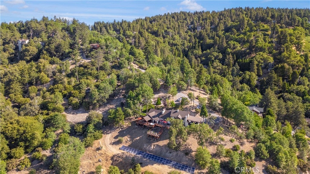 At the end of a private drive where the air turns crisp & the forest stands still, Knoll View Ranch stretches across approx. 7 secluded acres of pristine alpine landscape. This rare legacy estate is a masterwork of natural materials & timeless design, offering a lifestyle defined by beauty, peace, & permanence. Wrapped in hand-laid slate stone with a Presidential roof & copper detailing, the home's architecture is as enduring as the land it rests upon. A full house generator provides added reliability and peace of mind year-round. Over 3,000 sq ft of Trex decking seamlessly connects the indoors to the outdoors, framing panoramic ridgeline views that transform with each season mornings filled with soft birdsong, evenings drenched in golden light drifting through the pines. Inside, craftsmanship is evident in every detail. Rich hardwood floors maple, hickory & white oak flow throughout. Solid cherry cabinetry, alder doors, tongue-and-groove ceilings, & hand-finished touches add warmth & timeless character. The chef's kitchen combines elegance with function, appointed with slab granite counters, Sub-Zero refrigeration, & custom cabinetry designed to last for generations. Just steps away, the great room showcases a dramatic floor-to-ceiling river rock fireplace, creating a space as inviting as it is impressive. A luminous bonus living room with walls of windows offers a sunlit retreat for reading, gathering, or simply soaking in the mountain views. The primary suite occupies its own private wing, complete with a secluded deck framing panoramic vistas for the perfect wellness escape. Beyond the primary, this home features an ensuite main level bedroom plus an additional three spacious bedrooms & two more baths five bedrooms in total along with lounges & adaptable bonus rooms perfect for multigenerational living, guest accommodations, or work-from-home needs. With too much customization to even list, this is truly a property you must experience in person. Outdoors, the estate offers expansive indoor/outdoor organic vegetable growing spaces, garden zones, a private motorcycle garage, ample flat land, & abundant parking combining practicality with a tranquil setting. Though it feels a world apart, this sanctuary is just minutes from Lake Arrowhead, Snow Valley, & Hwy 330, placing year-round recreation within easy reach. Future potential includes plans for an additional dwelling unit, pickleball court, & basketball court, available at an additional cost.