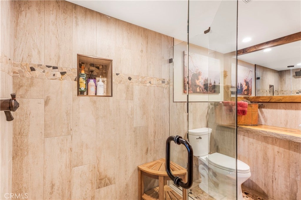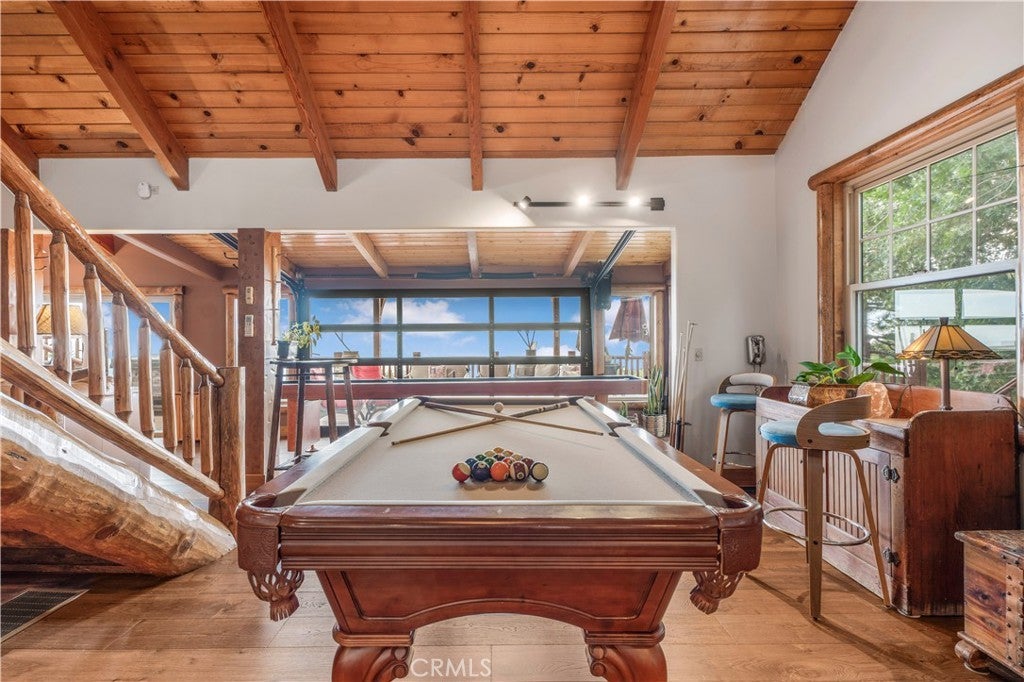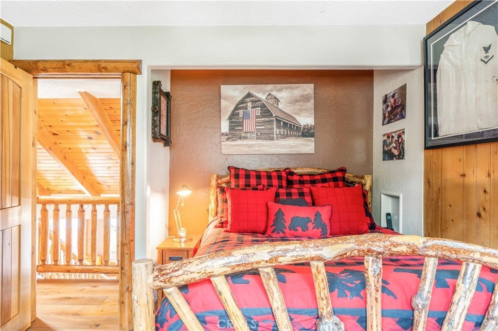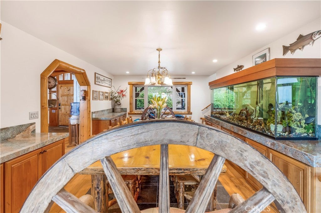 At the end of a private drive where the air turns crisp & the forest stands still, Knoll View Ranch stretches across approx. 7 secluded acres of pristine alpine landscape. This rare legacy estate is a masterwork of natural materials & timeless design, offering a lifestyle defined by beauty, peace, & permanence. Wrapped in hand-laid slate stone with a Presidential roof & copper detailing, the home's architecture is as enduring as the land it rests upon. A full house generator provides added reliability and peace of mind year-round. Over 3,000 sq ft of Trex decking seamlessly connects the indoors to the outdoors, framing panoramic ridgeline views that transform with each season mornings filled with soft birdsong, evenings drenched in golden light drifting through the pines. Inside, craftsmanship is evident in every detail. Rich hardwood floors maple, hickory & white oak flow throughout. Solid cherry cabinetry, alder doors, tongue-and-groove ceilings, & hand-finished touches add warmth & timeless character. The chef's kitchen combines elegance with function, appointed with slab granite counters, Sub-Zero refrigeration, & custom cabinetry designed to last for generations. Just steps away, the great room showcases a dramatic floor-to-ceiling river rock fireplace, creating a space as inviting as it is impressive. A luminous bonus living room with walls of windows offers a sunlit retreat for reading, gathering, or simply soaking in the mountain views. The primary suite occupies its own private wing, complete with a secluded deck framing panoramic vistas for the perfect wellness escape. Beyond the primary, this home features an ensuite main level bedroom plus an additional three spacious bedrooms & two more baths five bedrooms in total along with lounges & adaptable bonus rooms perfect for multigenerational living, guest accommodations, or work-from-home needs. With too much customization to even list, this is truly a property you must experience in person. Outdoors, the estate offers expansive indoor/outdoor organic vegetable growing spaces, garden zones, a private motorcycle garage, ample flat land, & abundant parking combining practicality with a tranquil setting. Though it feels a world apart, this sanctuary is just minutes from Lake Arrowhead, Snow Valley, & Hwy 330, placing year-round recreation within easy reach. Future potential includes plans for an additional dwelling unit, pickleball court, & basketball court, available at an additional cost.