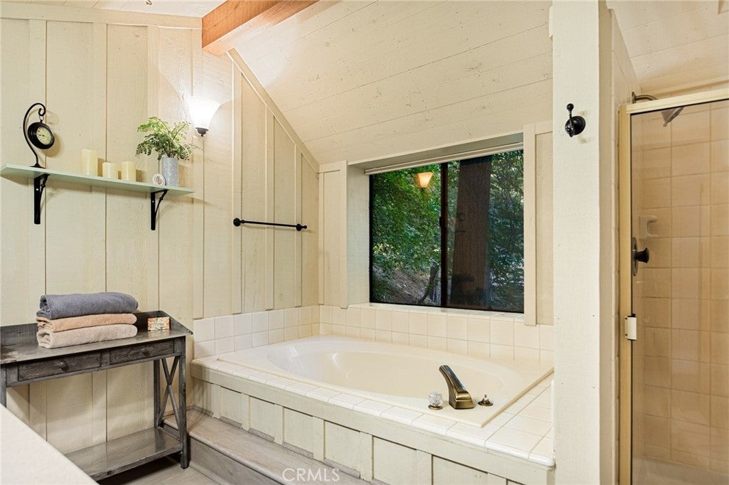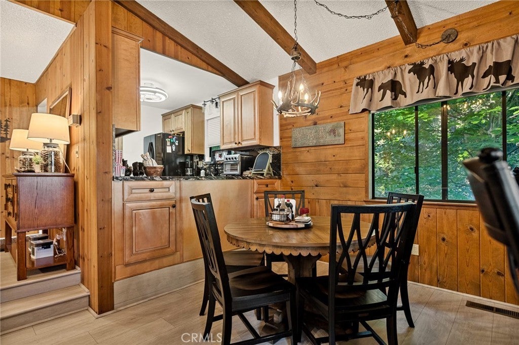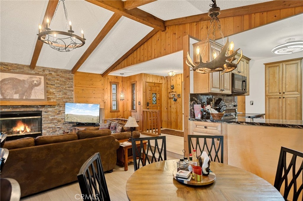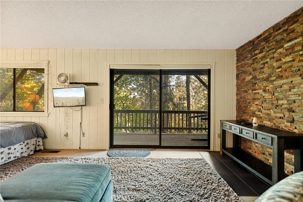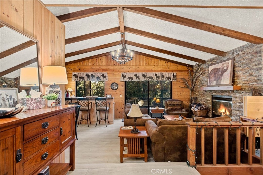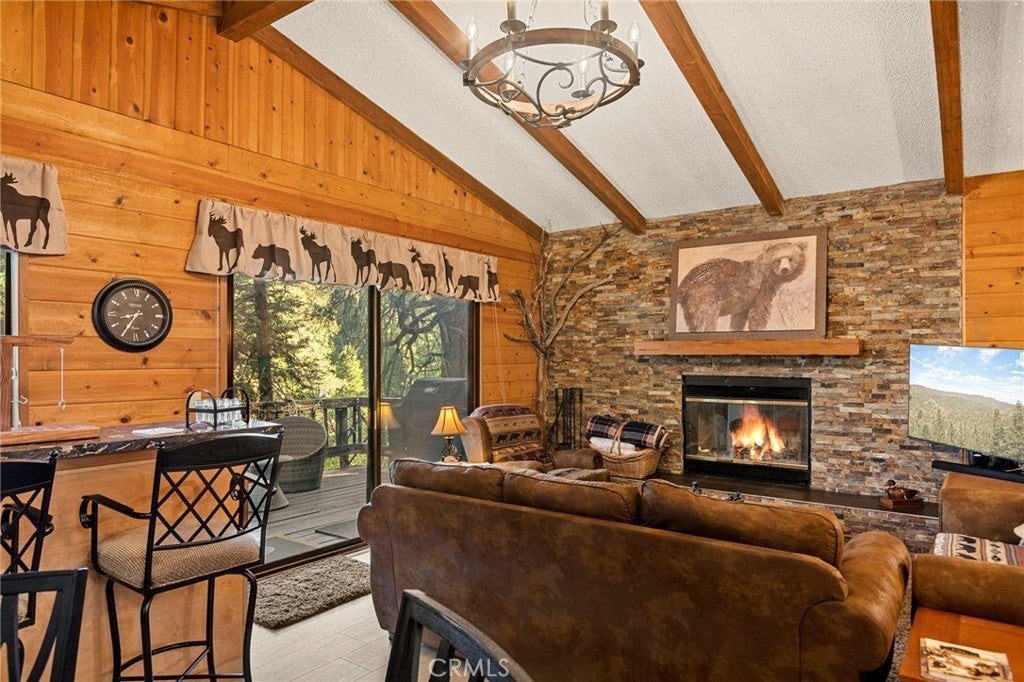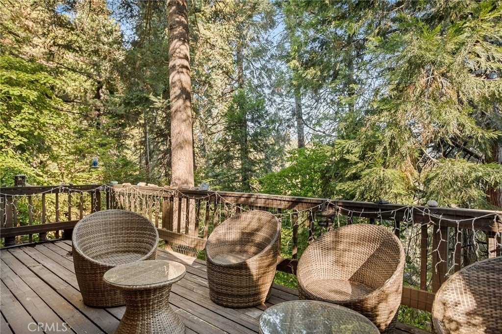 PRICED TO SELL!!!! This is One of those Homes that You Just have to See in Person!! It's Not Your Average Cabin... IT IS A WOW HOUSE FOR SURE!!! If You are Looking for a Modern yet Rustic Cabin to Escape to, THIS IS IT!!! OH SO CLASSY!!!! Easy Access with Level Covered Parking, Cozy Living Room with Wood-Burning Fireplace, Beamed Ceilings and Killer Tree Views from the Deck! YOU ARE SURROUNDED BY DOGWOODS, PINE & CEDARS... It's Like a Tree House! Bar in the Corner too! Kitchen is Updated with Newer Wood Cabinetry, Granite Countertops & Newer Appliances. Master Bedroom is on the Main Level... Downstairs is a 2nd Bedroom w/2 Queen Beds Open to Game Room/Den Space for Entertaining. In the Back is a Smaller Really Fun Kids Room (3rd Bedroom) and Oversized Bathroom with Soaking Tub and Separate Shower. Just a Quick 5 Minute Drive to the Lake Arrowhead Village or Spend the Day at Skypark, Just 2 Minutes Away... Plenty of Hiking in the Area or a Quick 20 Minute Drive to Snow Valley Ski Resort! So Much to Do!! Come & See this Luxurious Cabin! Comes with Tesla Charger on Parking Deck and LOT NEXT DOOR IS AVAILABLE TO BUYER FOR ADDITIONAL $10k!! PERFECT Space for a Yard!!! NO HOA!! This Home is Serviced by Arrowhead Villas MUTUAL SERVICES Association that Provides Water, Trash Service and Snow Plowing at a Lower Rate than Most Areas for Just $280/Quarter, Saving You Money!