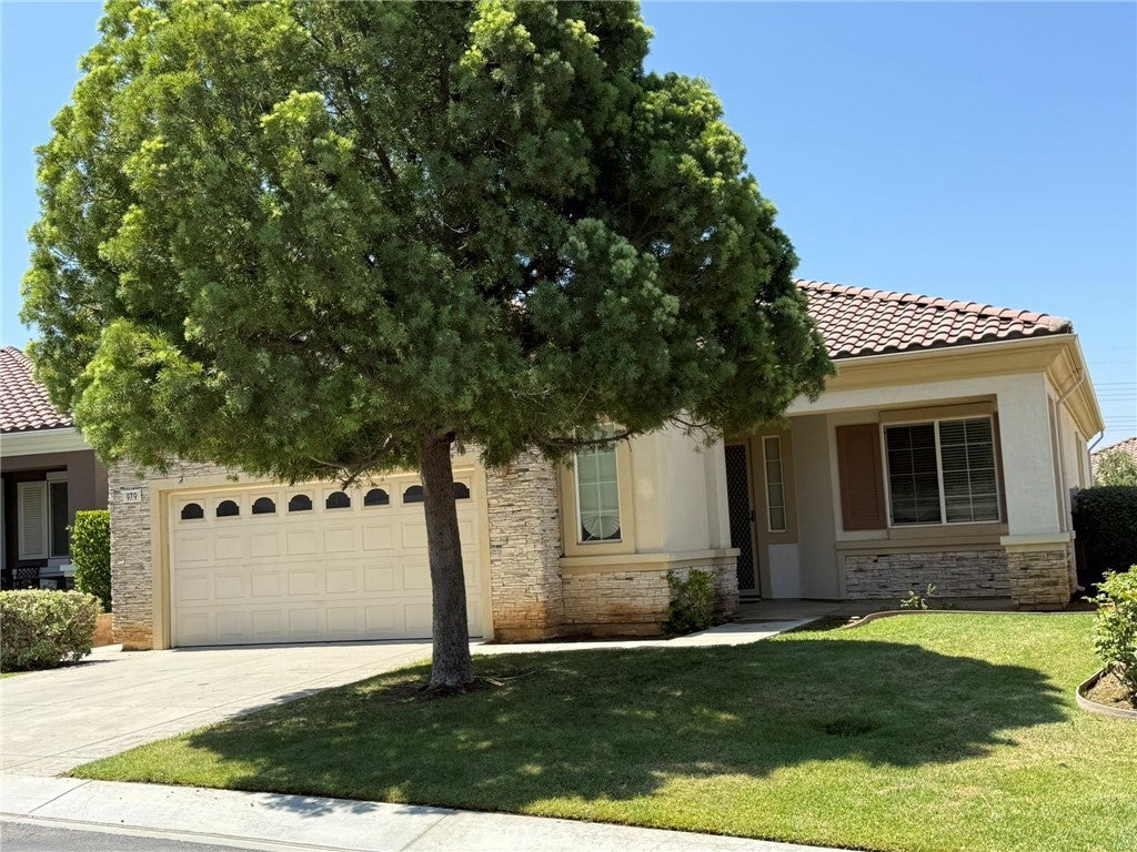 Ready to downsize? Imagine resort living every day! Beautiful 2 bedroom 2 bathroom plus den home in the desirable 55+ gated Solera Community. Tile and carpet flooring, kitchen is open to the family room with fire place. Primary bedroom has an en suite bathroom with dual sinks, separate soaking tub and walk-in shower, and spacious walk-in closet. Additional room perfect for an office or den. Indoor laundry room, backyard with covered patio, two-car garage. Enjoy a carefree retirement lifestyle with many HOA amenities, including a pool, spa, gym/fitness center, clubhouse, indoor walking track, tennis courts, pool tables and more! Close to Cabazon Premium Outlets, Palm Springs, shopping, and dining.