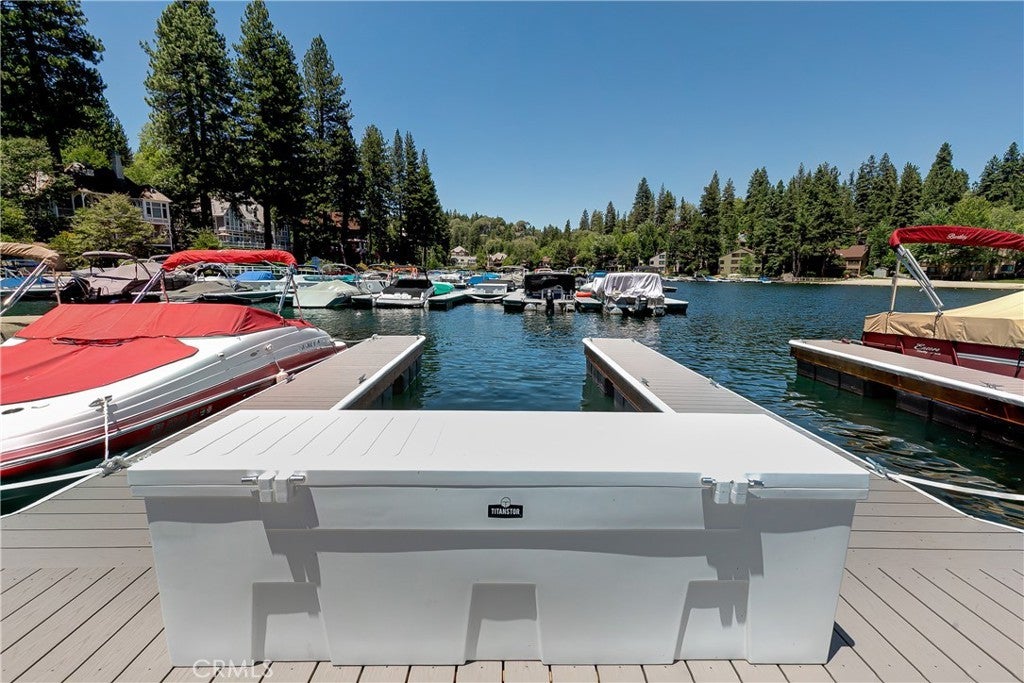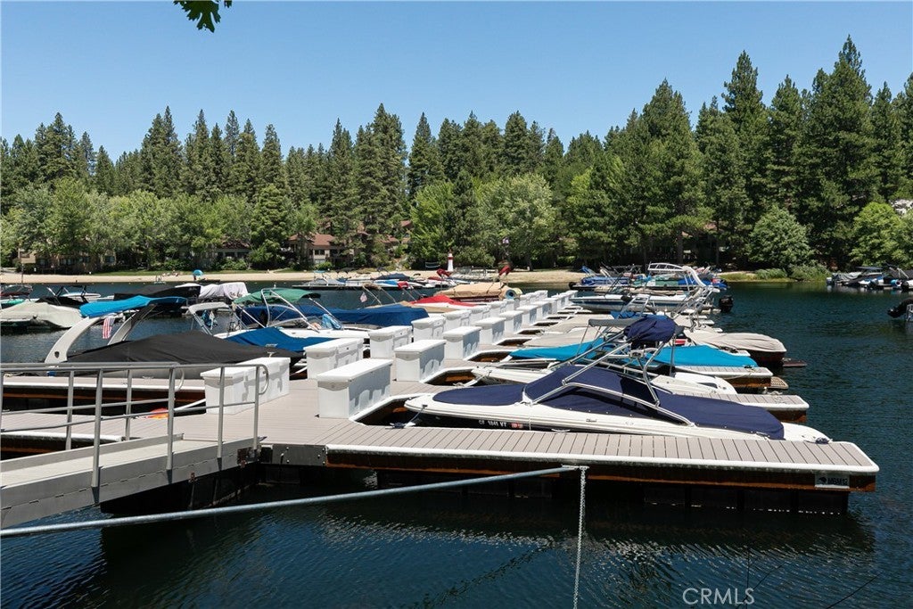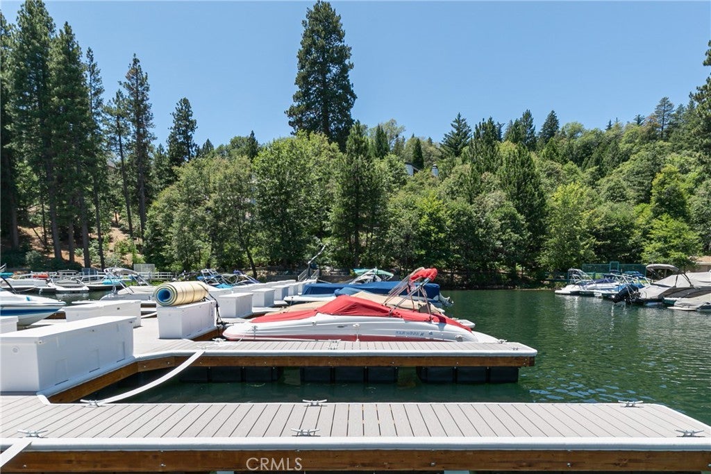 Your Own Brand-New Dock Slip in Meadow Bay – Lake Arrowhead. Here’s your rare opportunity to own a completely NEW, not rebuilt, dock slip in the highly sought-after calm waters of Meadow Bay—one of Lake Arrowhead’s most protected and desirable dock locations. Positioned toward the end of the multiple for easier access, this slip offers deep water, exceptional shelter, and incredible convenience—just a short stroll to nearby restrooms. The dock is gated for added privacy and security, and includes access to a picnic area exclusively to this multiple. Crafted by Kiwi Docks, this dock was custom-designed from the ground up to exceed modern standards of stability, safety, and style. The exterior frame is constructed of architectural-grade Alaskan Yellow Cedar, pressure-treated for durability and sealed with a rich oil-based stain. It is beautiful! The structure is reinforced with heavy-duty steel angle brackets and through-bolted hardware for lasting performance. Underfoot, you’ll find Premium WearDeck composite decking with heat-reflective technology, providing a cooler, more comfortable surface that stays strong through sun and seasons. The dock includes galvanized steel cleats, white foam-filled firehose-style dock bumpers, and a brand-new dock box for your storage needs. With a 20-year structural warranty in place, this is dock ownership at its finest—ready for seasons of low-maintenance enjoyment. You can take advantage of everything Lake Arrowhead has to offer: Boating, fishing, watersports, and a short boat ride to the Village for dining, shopping, and summer concerts. Don't miss out—this turnkey slip is priced to sell this season. Start living your lake lifestyle today!