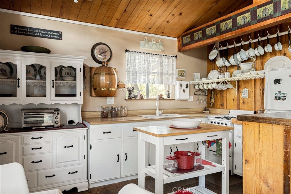 Welcome to your mountain retreat in the heart of Arrowbear! This delightful 2-bedroom, 1-bath cabin blends rustic charm with shabby chic flair, creating a cozy and inviting escape just minutes from Arrowbear Lake and the local park. The house sits on 2 lots which total 4775 sq ft. Step inside to discover a warm, wood-accented interior filled with character—from the quaint "Titan cabin" layout to the lovingly decorated bear-themed touches found throughout the home. The shabby chic kitchen adds a splash of personality and comfort, perfect for enjoying mornings in the mountains. Relax on the spacious front deck off the main floor, ideal for sipping coffee or soaking up the fresh alpine air. The property also offers off-street parking and a private driveway for added convenience. Whether you're looking for a weekend getaway or a full-time mountain haven, this charming Arrowbear cabin offers the perfect mix of comfort, character, and location.