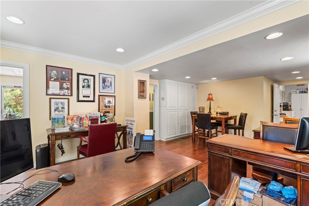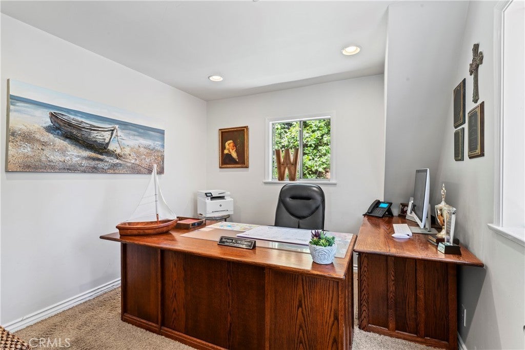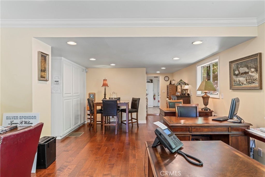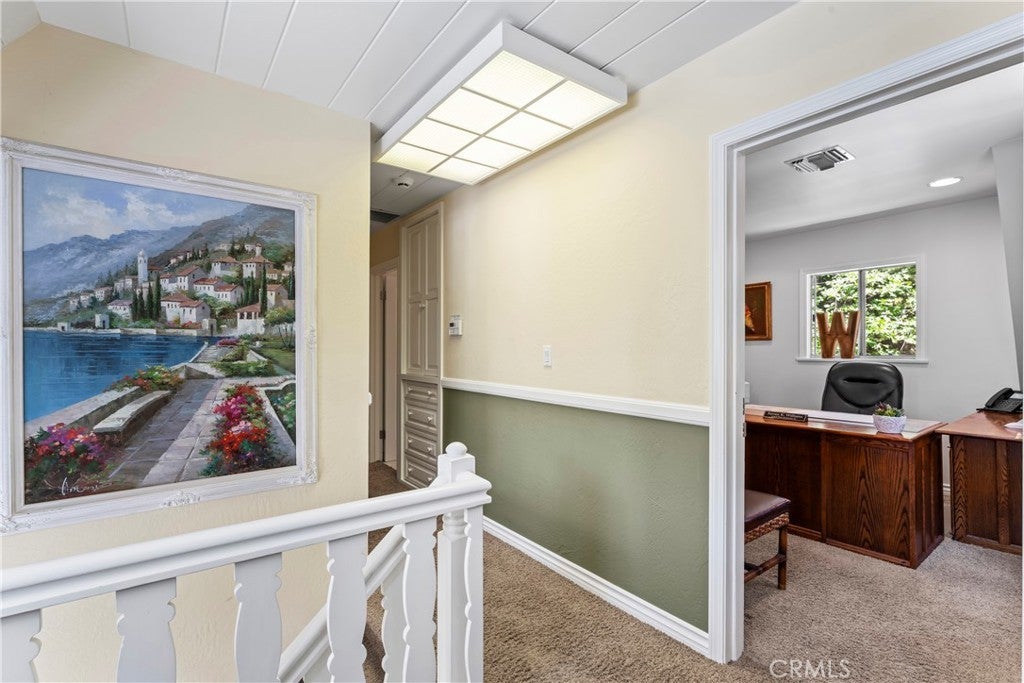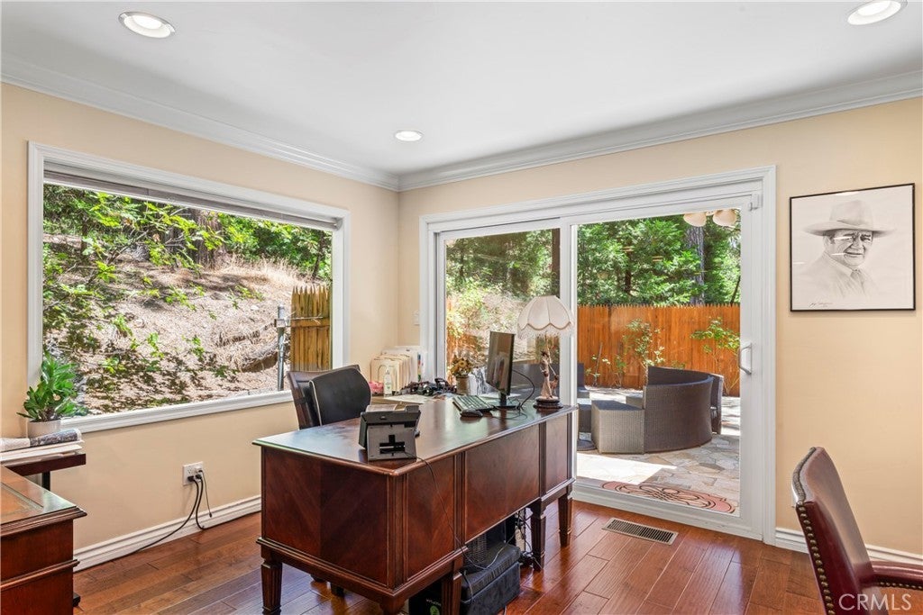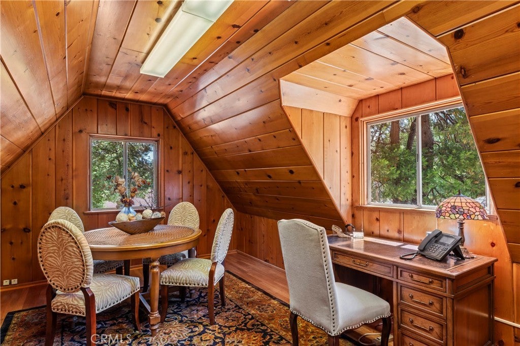 Iconic Office Building in the Heart of Blue Jay Village 27180 State Highway 189 offers a rare opportunity to own a standout commercial property in one of the most visible and desirable locations on the mountain. Positioned at the gateway to Lake Arrowhead and currently home to a thriving real estate firm, this meticulously maintained office building combines charm, function, and unbeatable curb appeal — including a professionally installed $50,000 waterfall and pond that greets clients with a lasting impression. Sitting on a spacious ½ acre parcel, the property includes excellent parking in the rear lot, an attached garage for additional storage or operational flexibility, and premium signage visibility along a high-traffic corridor. The main level features a welcoming entry, a separate client greeting room with a cozy fireplace, a spacious conference room (or executive office), two additional private offices, an updated kitchen with built-in cabinets, sink and refrigerator, and a beautifully remodeled full bathroom. A private enclosed stone patio offers a peaceful outdoor space — ideal for breaks, small meetings, or just enjoying the mountain air. Upstairs, you’ll find a second large conference room, three more private offices, and a modern half bath — creating a flexible layout for professional use, collaborative workspaces, or a multi-tenant setup. With generous square footage, stylish finishes, and a layout adaptable to many business types — from professional services to creative studios or boutique retail — this property is ready for its next chapter.