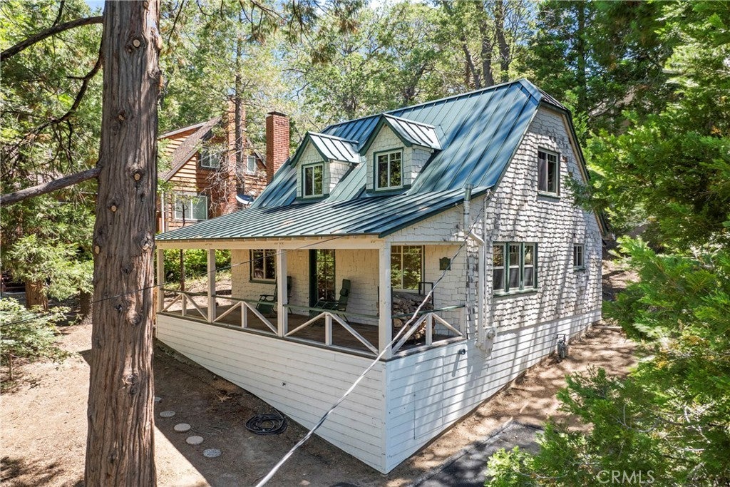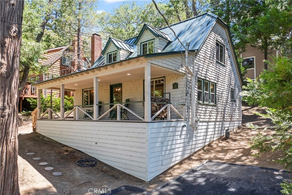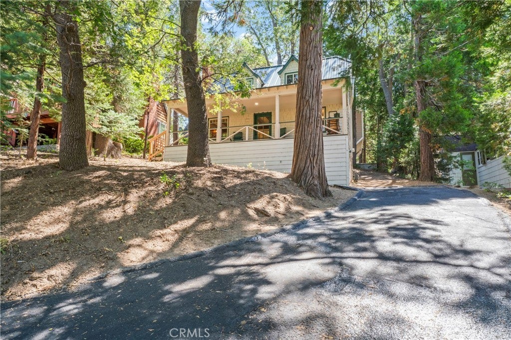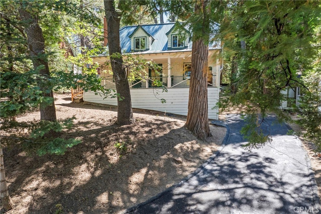 1,084 Sqft Classic Vintage Lake Arrowhead Cottage with Lake Rights and is nestled in the heart of the Palisades Neighborhood just minutes to the Lake! This Charming Residence with Dual Pane Windows throughout and Fire Retardant Standing Seam Metal Roof beckons your attention with the Expansive Front Porch Covered Entry into the Open Floor Plan featuring the Original Clear Fir Harwood Flooring, Beamed Living Room Ceiling with Granite Fireplace along with Log Lighter Fire Starter, Living Room is highlighted with Raw Edge Rocky Mountain Blue Juniper Baseboard and Window Trim, Butcher Block Kitchen Counter with Classic O’Keefe & Merritt Stove, remodeled ¾ Bath and Main Floor Bedroom. Upper-Level Features 3 Small Cozy Bedrooms and ½ Bath. Ideally these 3 Upstairs Bedrooms could easily be transformed into One Large Bedroom encompassing an Open Office or TV Lounge Area. Seller has graced the home with upgraded Bathrooms, in addition to some Plumbing and Electrical along with a New Water Main from the Street to the House. Put your creative thoughts in gear and make this Charmer your own!