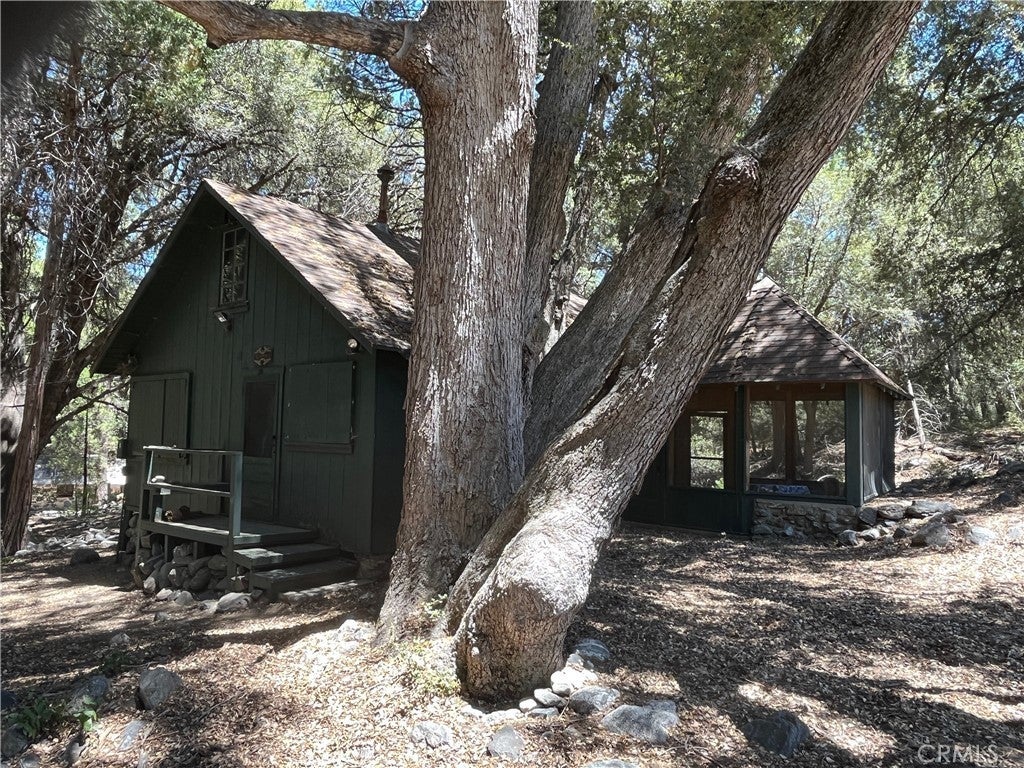 Escape to your very own well-maintained cabin nestled in the serene forests of Southern California. This charming retreat features two bedrooms and a cozy bathroom. (All downstairs) One of the downstairs bedrooms is equipped with bunk beds, perfect for family gatherings or hosting friends. Head upstairs to discover a huge finished room that spans the length of the cabin, offering versatile space for additional sleeping, play, or relaxation. The living room is inviting and features a comfortable layout, complete with a cozy breakfast/dining nook in the corner, creating a warm atmosphere for meals with loved ones. The spartan kitchen includes a sink, refrigerator, and microwave, providing the essentials to whip up meals after a day of adventure. Imagine transforming it into the kitchen of your dreams! Experience outdoor living at its finest with river access just across the county road, where you can actually catch trout for supper. Plenty of activities await, including hiking, fishing, mountain biking, off- roading, and simply unwinding in the beauty of nature. (Cabin is nestled amongst old growth California live oak trees). Conveniently located between Redlands and Big Bear, you’ll have easy access to nightlife and amenities whenever you wish to venture out after a week of mountain serenity. Certain restrictions will apply. Agents can find the Forest Service Use Permit in the Supplements section. Buyers can get one by asking. These cabins cannot be financed. Therefore, they are CASH purchases only. Start thinking about your own cabin in the woods today!