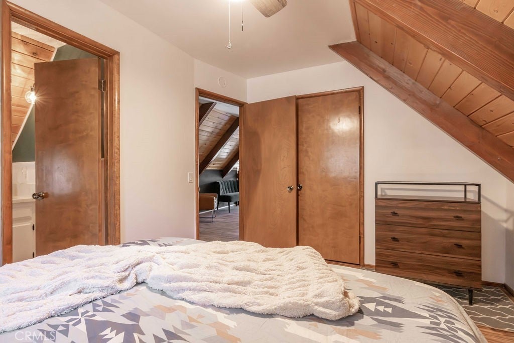 GORGEOUS CUSTOM CHALET + ADU IN WHISPERING FOREST, AT A SWEET PRICE! The Walk and Drive Score on this one is EXCELLENT! Within 0.3 miles (8 minute walk) from the National Forest at the end of the street, 1.7 miles from the lake, and approximately 1 mile from year-round fun at the Convention Center (Oktoberfest, Wyatt's, Farmer's Market), trailhead to the new paved pedal path and boardwalk through the Stanfield Marsh Wildlife and Waterfowl Preserve, Big Bear Snow Play and Raceway (go-carts), and dining––the location of this cabin is so great, and short-term rental guests rave about it too! Situated on a large corner lot surrounded by mature trees and shrubs, with plenty of parking space including a wraparound driveway and a 2-car garage. Above the garage is a spacious ADU with an updated kitchenette, dining area, bedroom and bathroom. In the main cabin, the great room boasts a wall of windows, vaulted wood and beam ceilings, a super cool mid-century modern wood burning stove surrounded by an extra long brick hearth offering additional seating. Game night or mealtime, from the living room to the kitchen and open dining, enjoy the convenience of getting to stay connected with your loved ones! Or enjoy a break and retreat to the upstairs loft with its library-like shelving, or to the master suite! Downstairs on the main level, there is another spacious bedroom with a lovely "reading nook", and a huge bathroom. Outside there is plenty of space to lounge, including a relaxing and private hot tub to enjoy peaceful mornings or evening stargazing! Whether you're seeking your own slice of paradise for a personal retreat, a short-term rental investment, or a full-time residence, this property offers incredible flexibility. Live in one unit while renting out the other for supplemental income, or maximize its potential as a full rental. This is a home you simply must see- schedule your showing today!