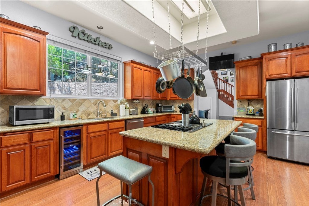 Spacious Lake Arrowhead Retreat with Lake Rights Welcome to this generously sized Lake Arrowhead home offering 4 bedrooms, 4 bathrooms, and a 2-car attached garage, ideally located just a short stroll from the lake, shopping, market, and post office. Well-maintained with thoughtful upgrades by Ivan Florez, this home provides comfort, convenience, and modern functionality throughout. Inside, you'll find composite laminate flooring, ceiling fans in every room, and two master suites—each with walk-in closets and luxurious Jacuzzi tubs. The large kitchen is a chef’s dream, featuring a center island, abundant cabinetry, wine cooler, double oven, and a walk-in pantry. A spacious den can easily serve as a 5th bedroom, office, or bonus space. Additional features include a full home generator, two air conditioning units (upstairs and downstairs), and a generous laundry room with built-in sink and cabinets. The attached 2-car garage is equipped with custom storage racks for added organization. Furniture is negotiable per inventory list, making this home move-in ready or easily customizable to your taste. Enjoy Lake Rights and take in the mountain lifestyle with the added bonus of walking distance to key amenities and the lake itself.