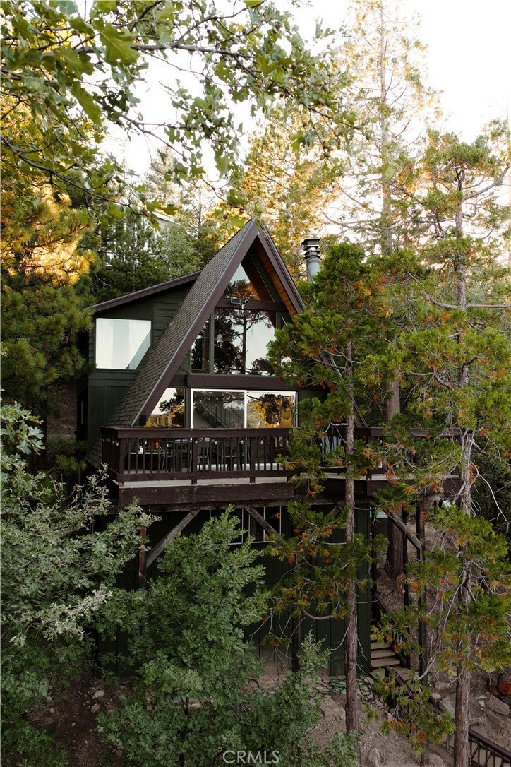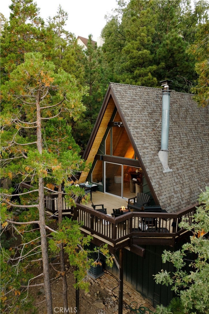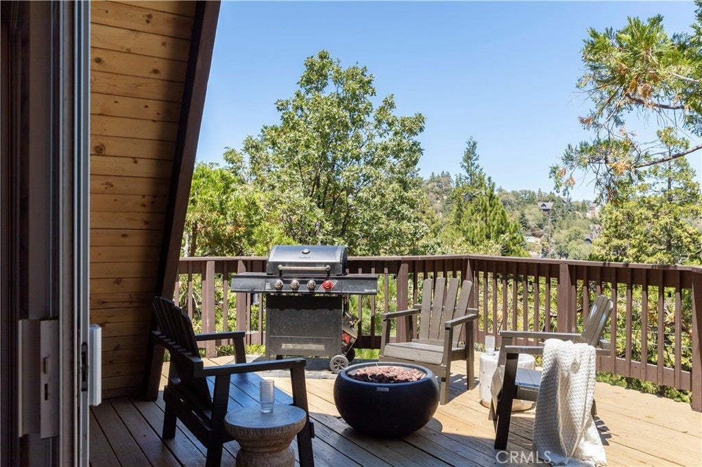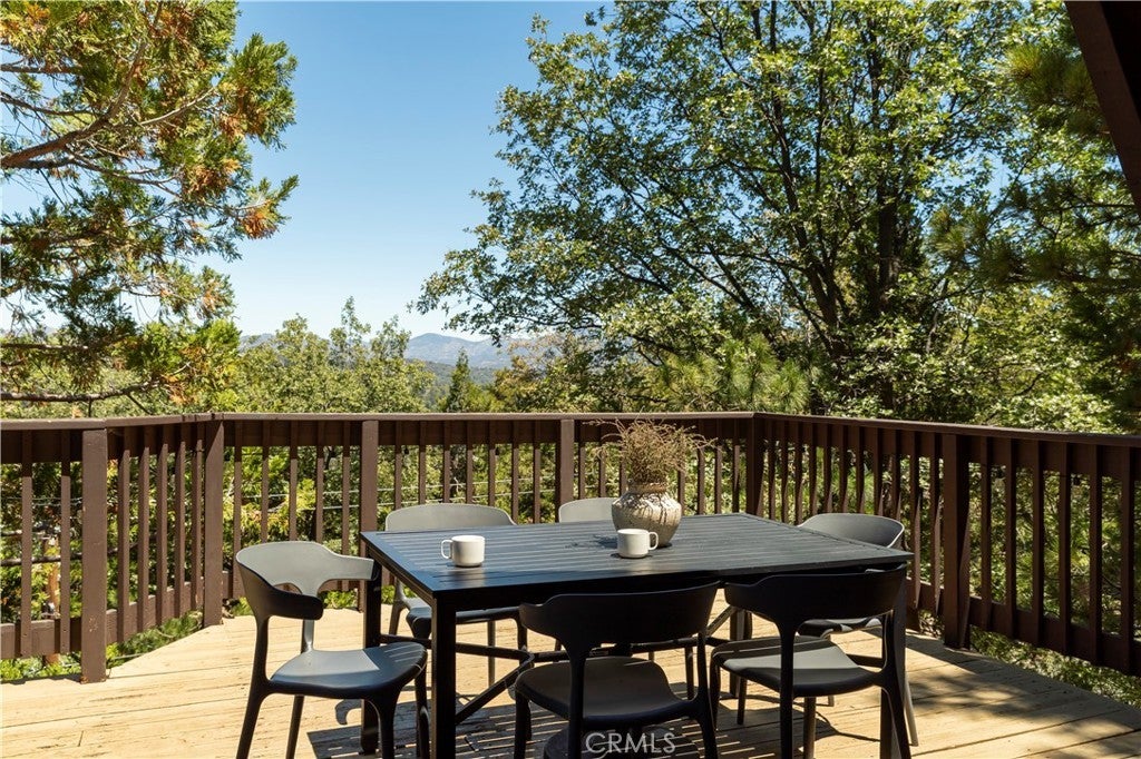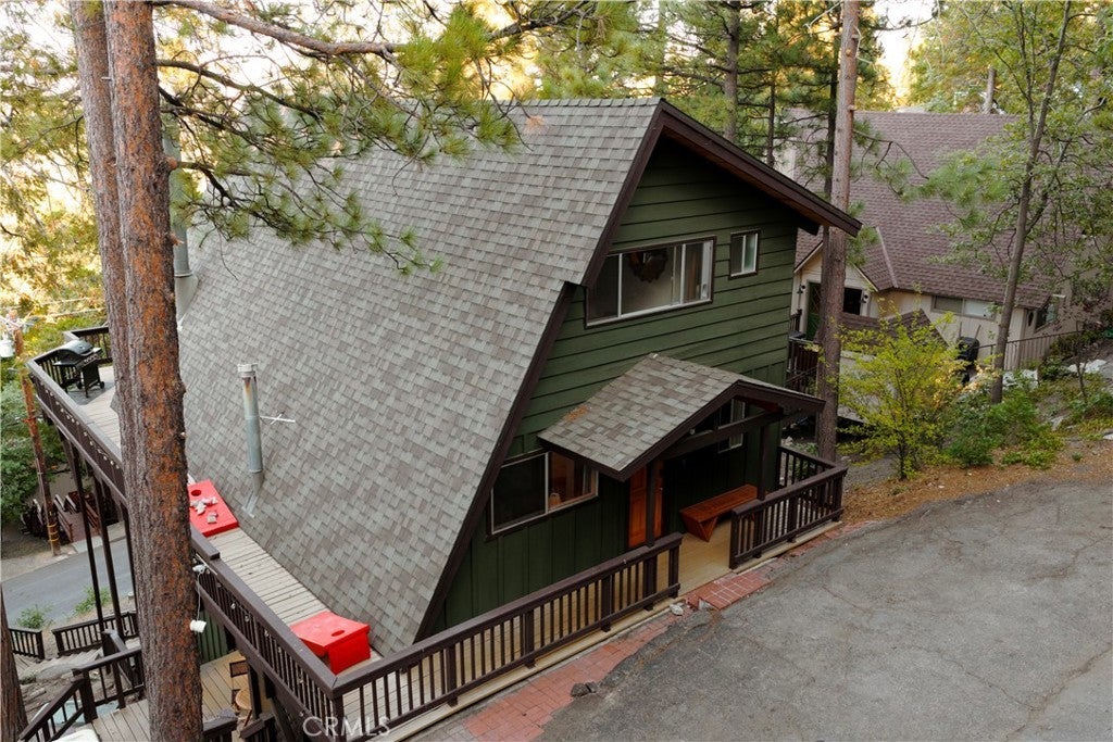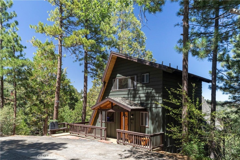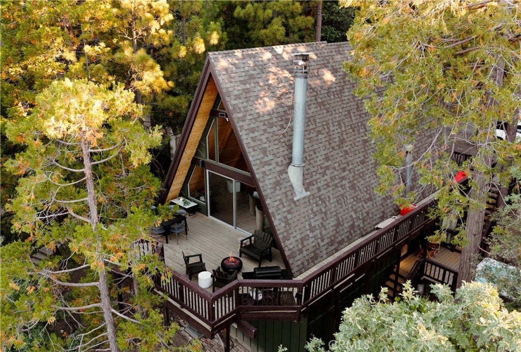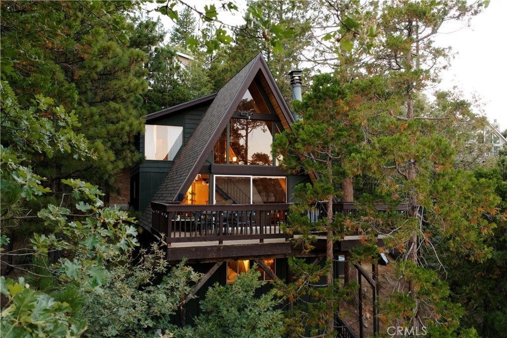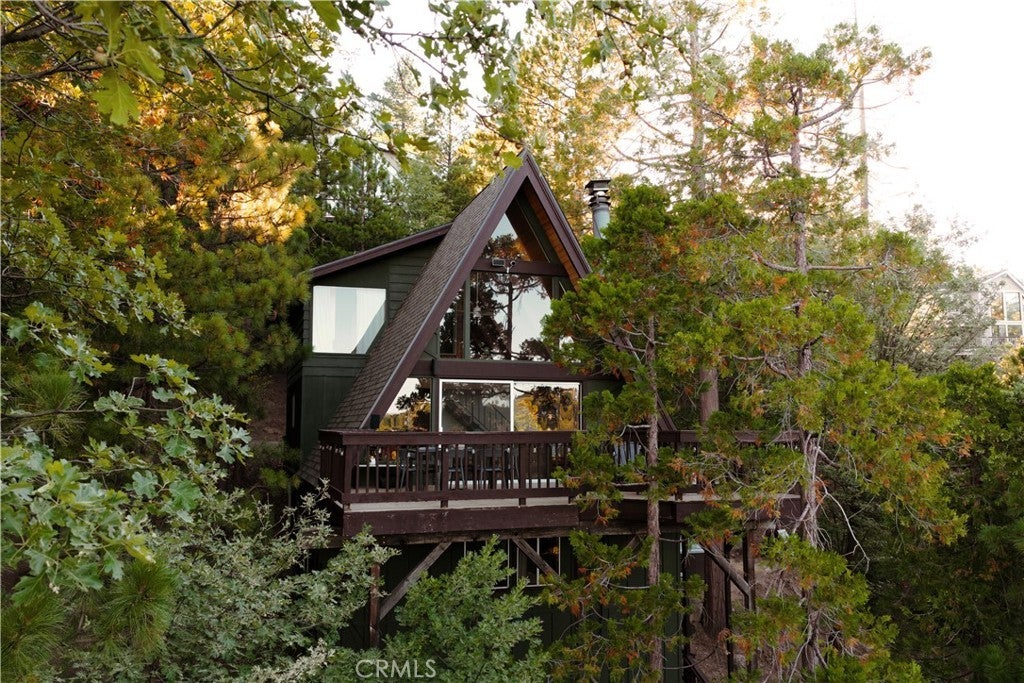 The A-Frame everyone’s been looking for... With panoramic views, a wall of glass, and a fresh interior update, 842 Nadelhorn checks all the boxes for a true mountain escape. Set above Lake Arrowhead and surrounded by towering pines, this three level home was thoughtfully remodeled in 2023 with clean finishes and a layout that makes the most of the setting. On the main level, you’ll find cathedral ceilings, a cozy wood burning fireplace, and open living that flows out to a wraparound deck, perfect for grilling, lounging, or enjoying the treetop and peekaboo lake views. The kitchen was refreshed with new cabinetry, tile, appliances, and plumbing. A bedroom and full bath on this level make for easy, no stairs access. Upstairs is a private loft style ensuite with a tucked away desk area and some of the best ridgeline views in the house. The lower level adds even more space, with a second living area, a bunk room with arcade games, another bedroom, full bath, laundry, and a seperate entrance that leads to a private side yard and hot tub, the ideal spot to unwind under the stars. The design blends warm earthy tones with a touch of mid century modern, perfectly suited to its mountain setting. Whether you’re cozying up by the fire or heading out to explore, this home blends comfort and style in all the right ways. Currently a successful short term rental with Airbnb’s “Designer” status, with lake rights included and just minutes from the Village, trails, and more, this is the A-Frame you don’t want to miss.