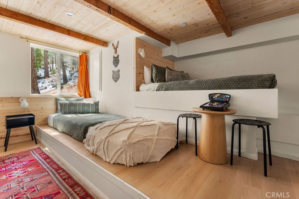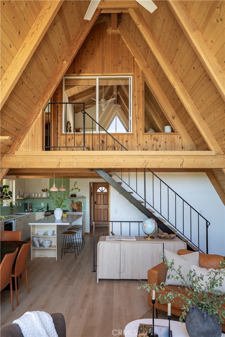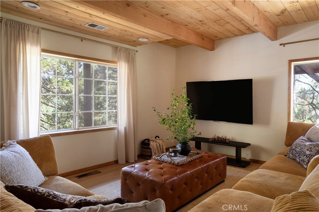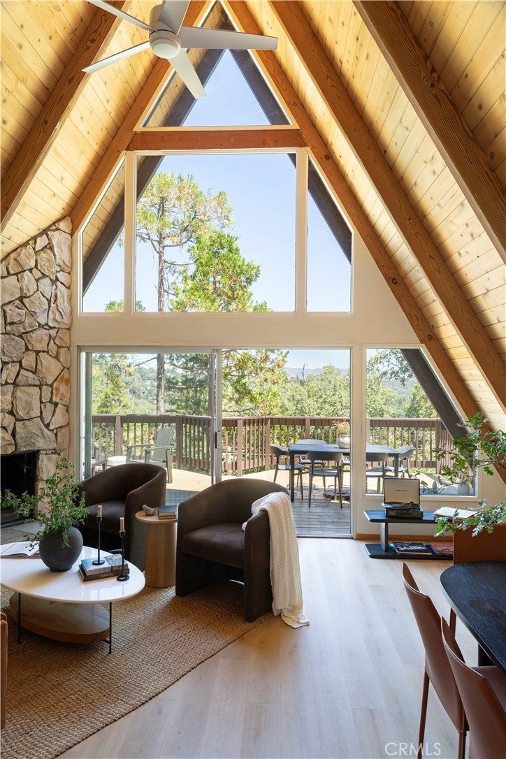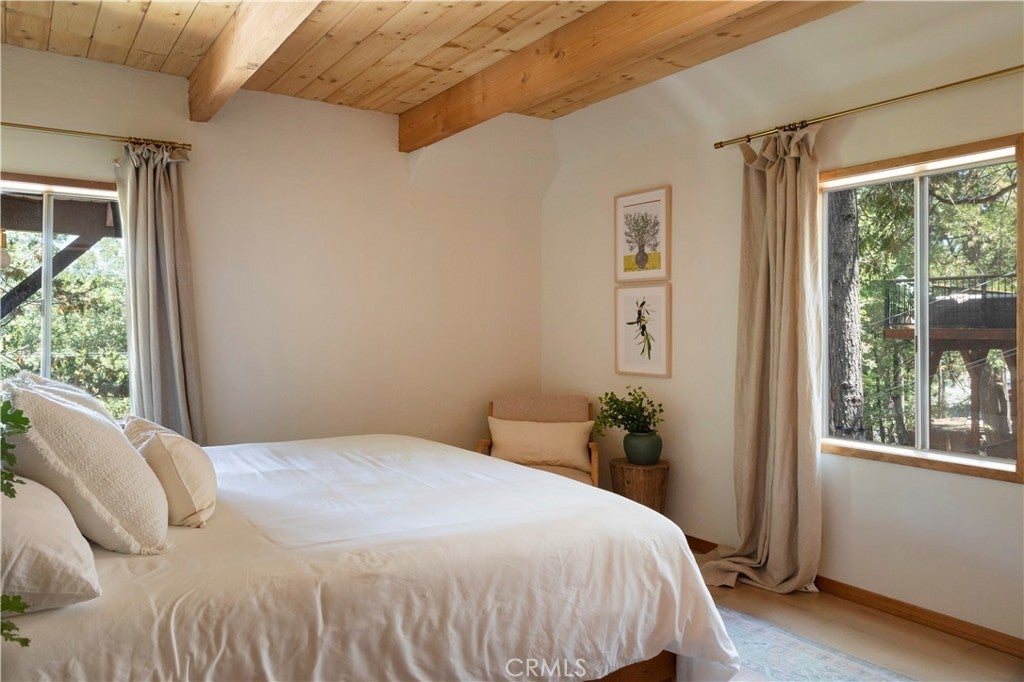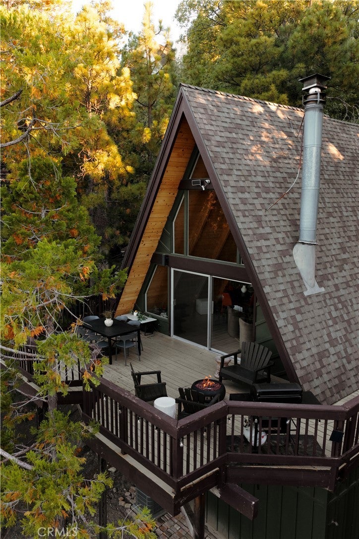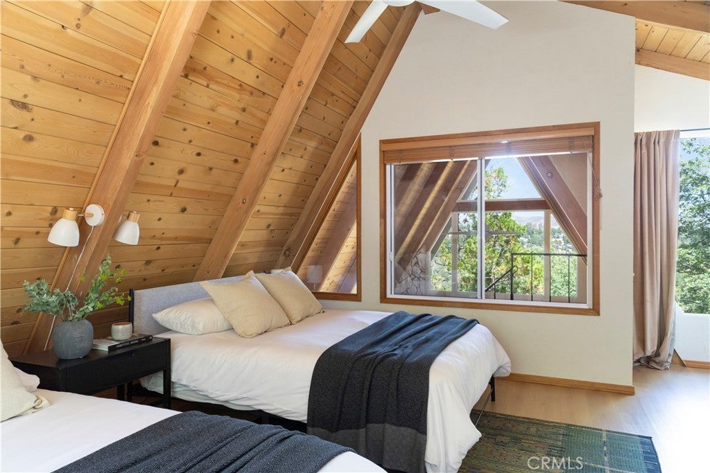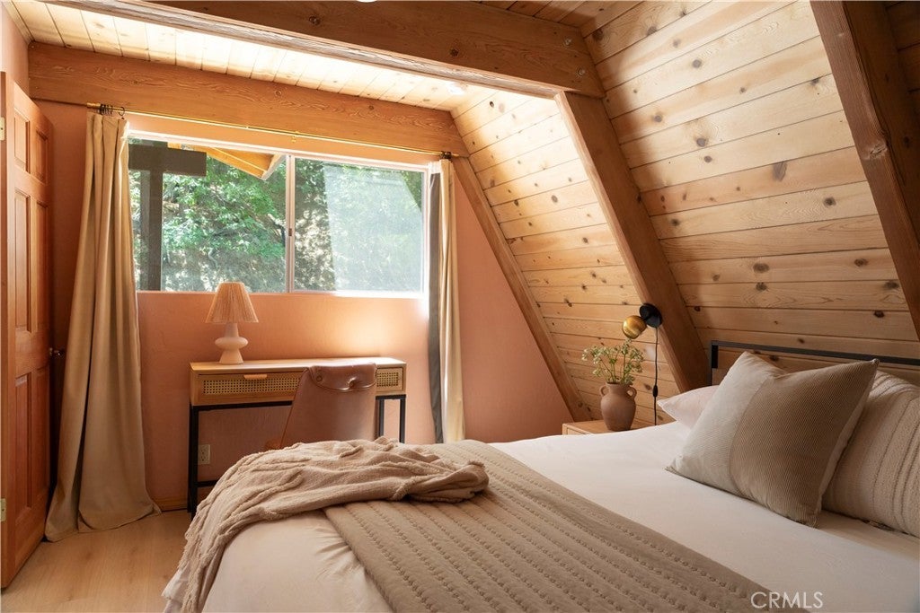 The A-Frame everyone’s been looking for... With panoramic views, a wall of glass, and a fresh interior update, 842 Nadelhorn checks all the boxes for a true mountain escape. Set above Lake Arrowhead and surrounded by towering pines, this three level home was thoughtfully remodeled in 2023 with clean finishes and a layout that makes the most of the setting. On the main level, you’ll find cathedral ceilings, a cozy wood burning fireplace, and open living that flows out to a wraparound deck, perfect for grilling, lounging, or enjoying the treetop and peekaboo lake views. The kitchen was refreshed with new cabinetry, tile, appliances, and plumbing. A bedroom and full bath on this level make for easy, no stairs access. Upstairs is a private loft style ensuite with a tucked away desk area and some of the best ridgeline views in the house. The lower level adds even more space, with a second living area, a bunk room with arcade games, another bedroom, full bath, laundry, and a seperate entrance that leads to a private side yard and hot tub, the ideal spot to unwind under the stars. The design blends warm earthy tones with a touch of mid century modern, perfectly suited to its mountain setting. Whether you’re cozying up by the fire or heading out to explore, this home blends comfort and style in all the right ways. Currently a successful short term rental with Airbnb’s “Designer” status, with lake rights included and just minutes from the Village, trails, and more, this is the A-Frame you don’t want to miss.